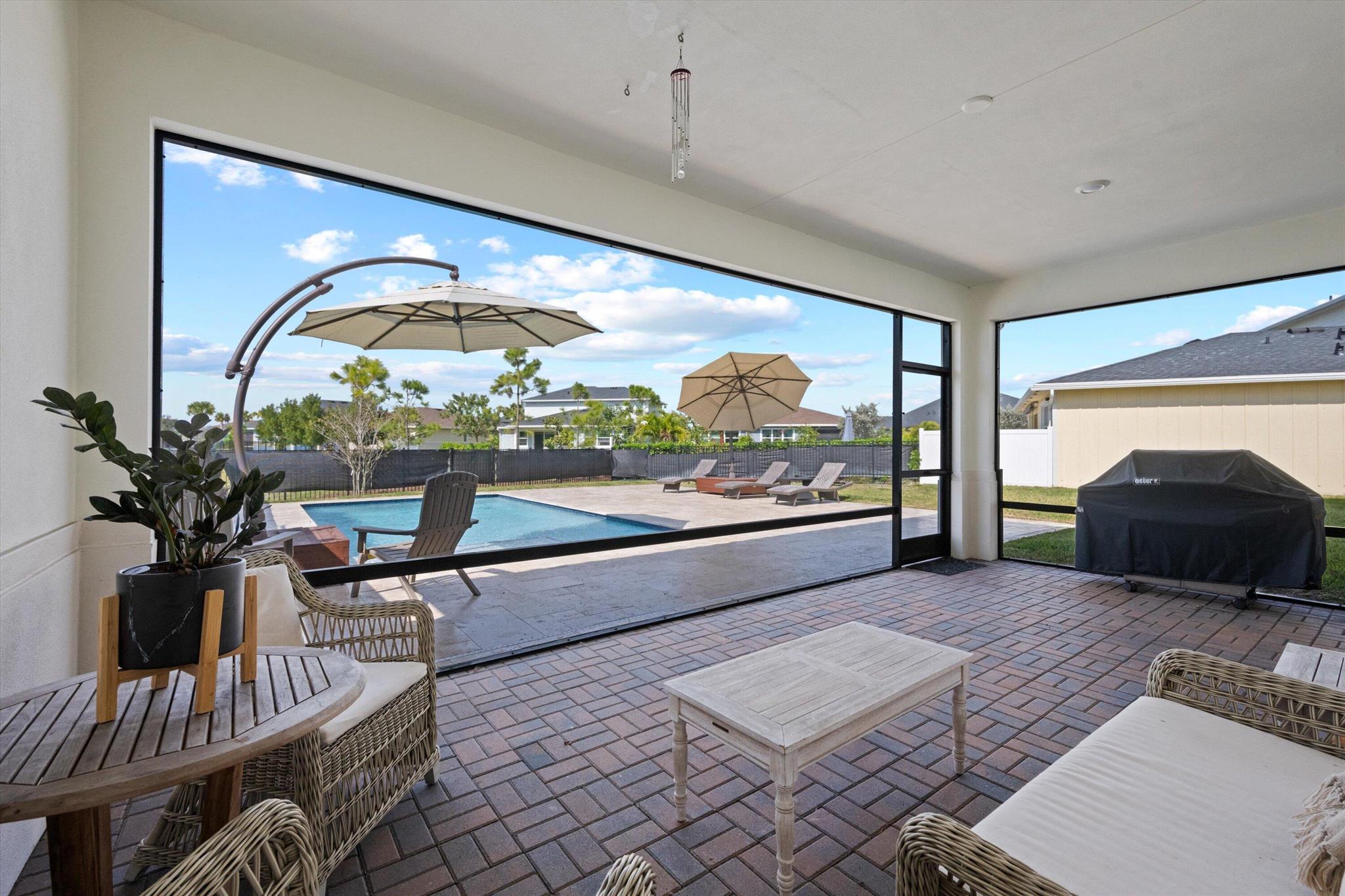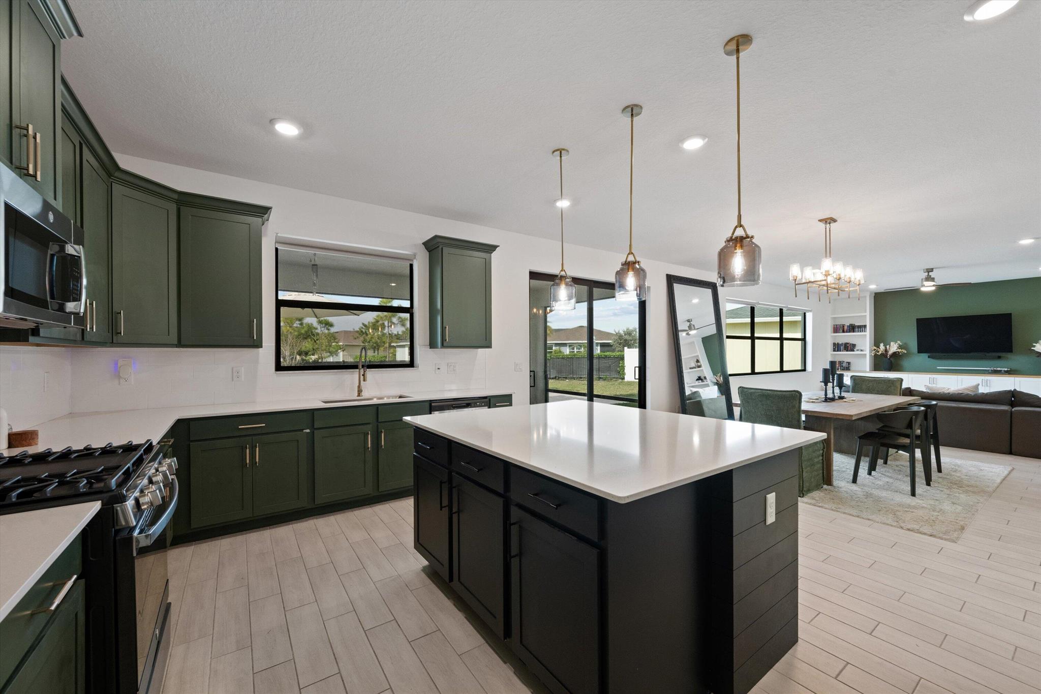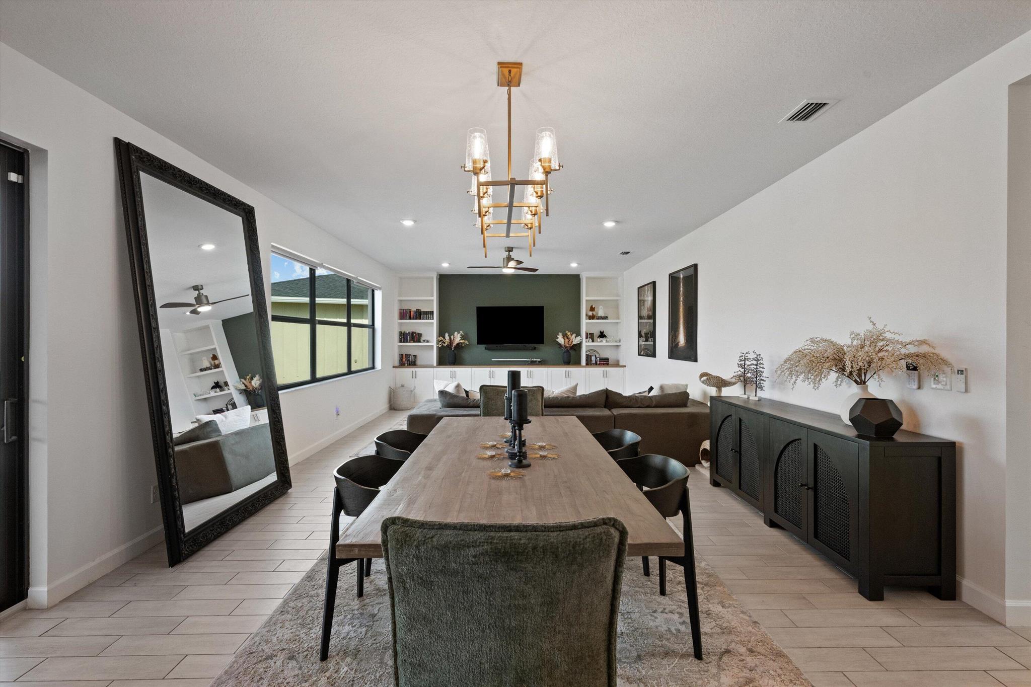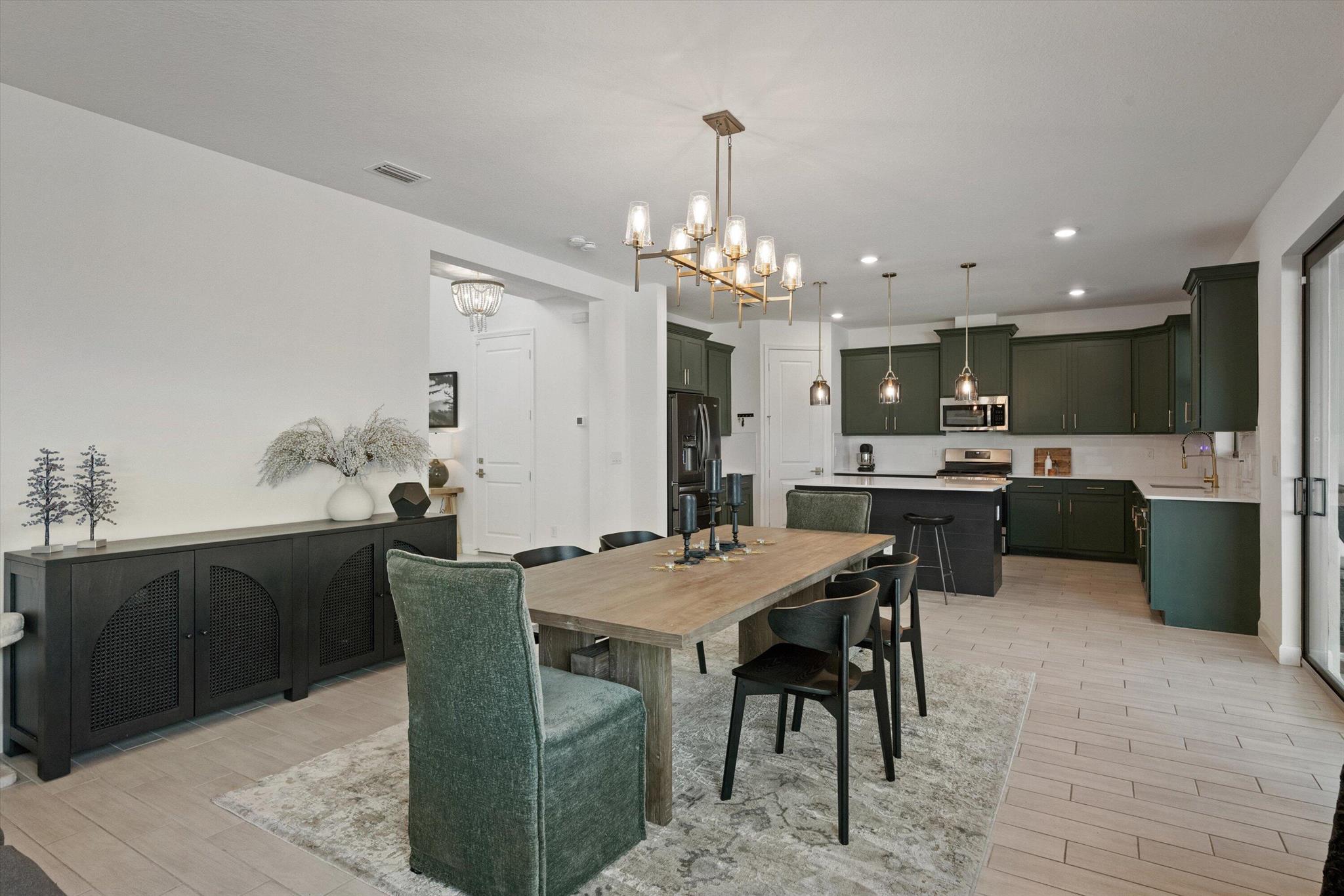Welcome to this stunning 4-bed, 3-bath Spanish-style home, featuring a highly sought-after floor plan, set on an expansive lot. On the ground floor, you'll find an inviting open-concept living, dining, and kitchen area--perfect for entertaining. A 4th bedroom and full bath, along with stylish wood-tile flooring, complete the main level. The 2nd level offers a spacious primary suite, along with 2 additional bedrooms, bath and laundry room. This home boasts an array of upgrades, including a heated pool with a generous deck for outdoor relaxation, screened in lanai, fenced yard, and a total of 3 garage bays. Additional highlights include impact windows and doors, custom built-in shelving in the living area, new vanity mirrors, light fixtures, ceiling fans