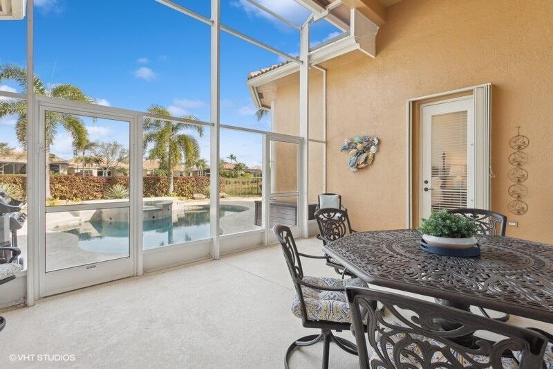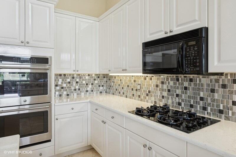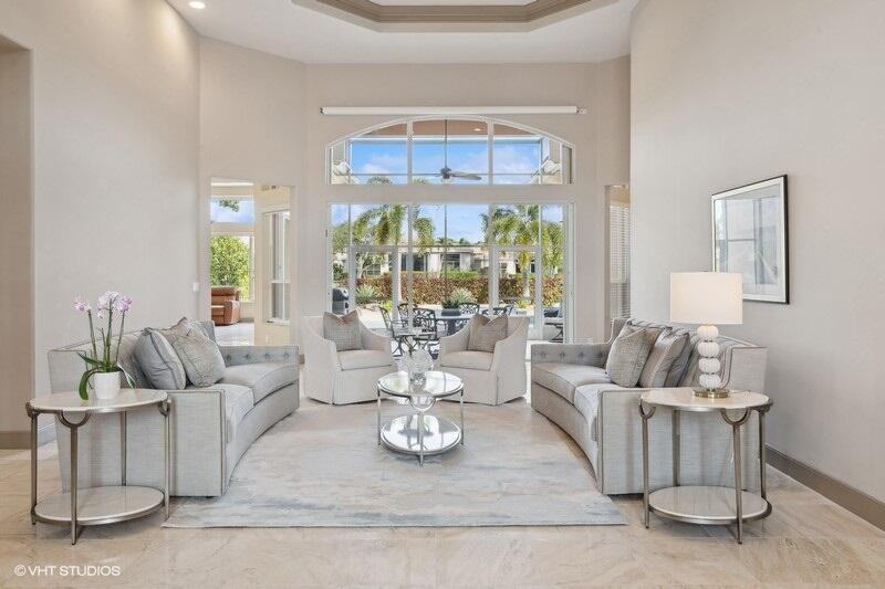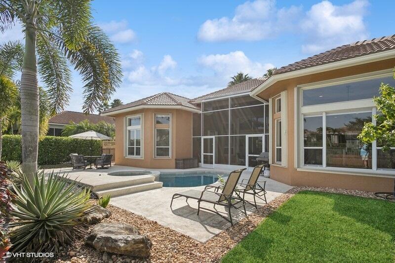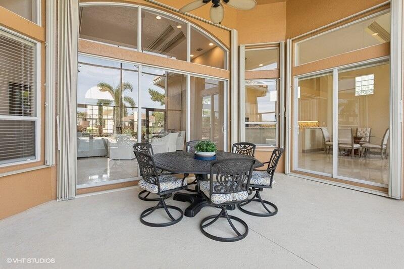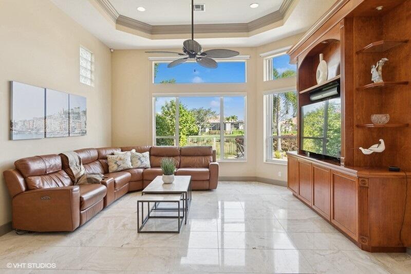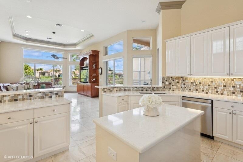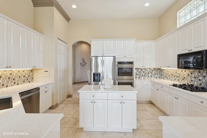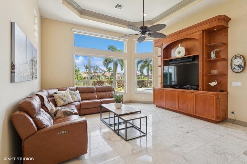 THIS 3BR PLUS DEN 3BA HOME UPGRADES INCLUDE A 2024 ROOF WITH TRANSFERABLE WARRANTY AND HURRICANE PROTECTION WITH ACCORDION SHUTTERS. STEP INSIDE TO DISCOVER HIGH CEILINGS, MARBLE FLOORS, BRIGHT NATURAL LIGHT STREAMING THRU LARGE WINDOWS AND SPACIOUS LIVING AND DINING AREAS. KITCHEN HAS BEEN UPDATED WITH WHITE QUARTZ COUNTERS, TILE BACKSPLASH AND S/S APPLIANCES INCLUDING DOUBLE OVENS(EXCLUDES MICROWAVE/COOKTOP). THE LARGE PRIMARY SUITE FEATURES TWO WALK-IN CLOSETS WITH CUSTOM BUILT INS AND THE PRIMARY BATHROOM HAS BEEN UPDATED WITH WHITE QUARTZ COUNTERS, WHITE CABINETRY, STEP-IN SHOWER AND DUAL SINKS. THE OFFICE/DEN FEATURES A HAND-CRAFTED STYLISH WOOD BUILT-IN. UPGRADES INCLUDE REMOTE-CONTROLLED SHADES, A TANK-LESS GAS WATER HEATER, 2015 AC'S, LANDSCAPING WATER COMES FROM THE LAKE.