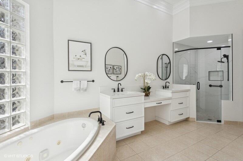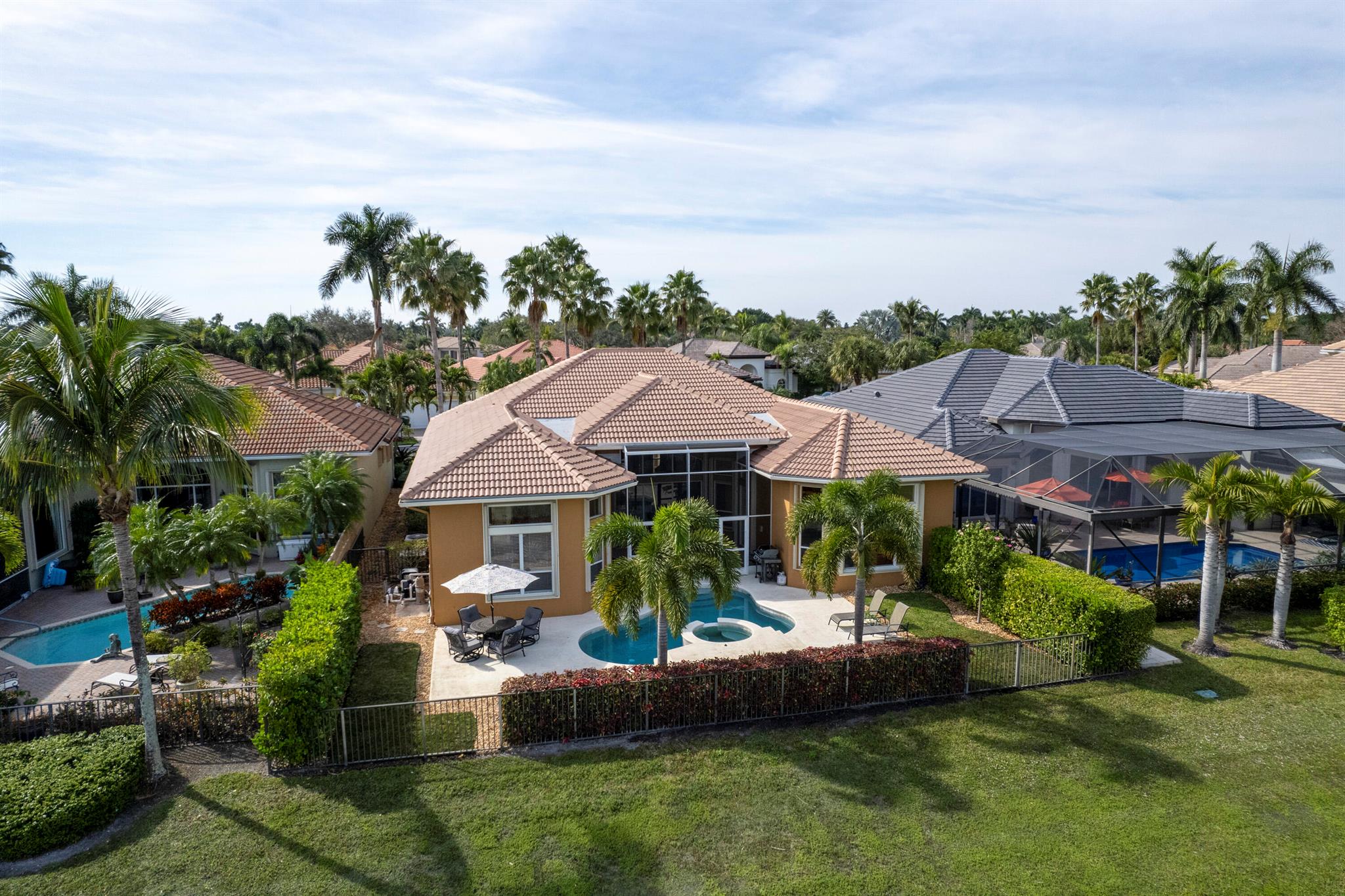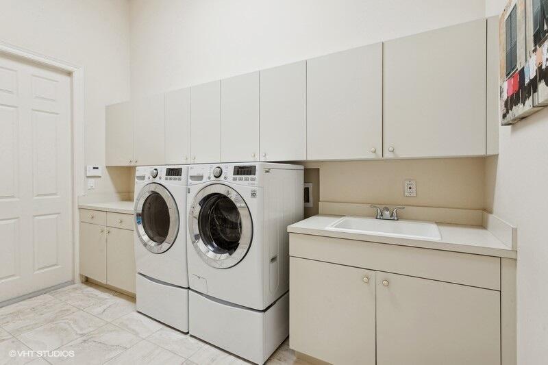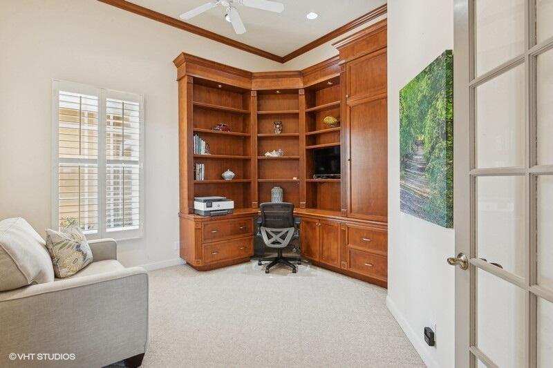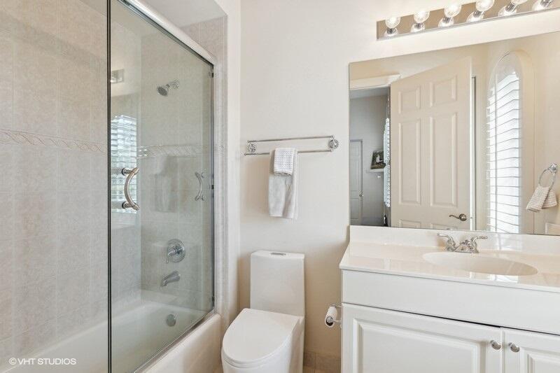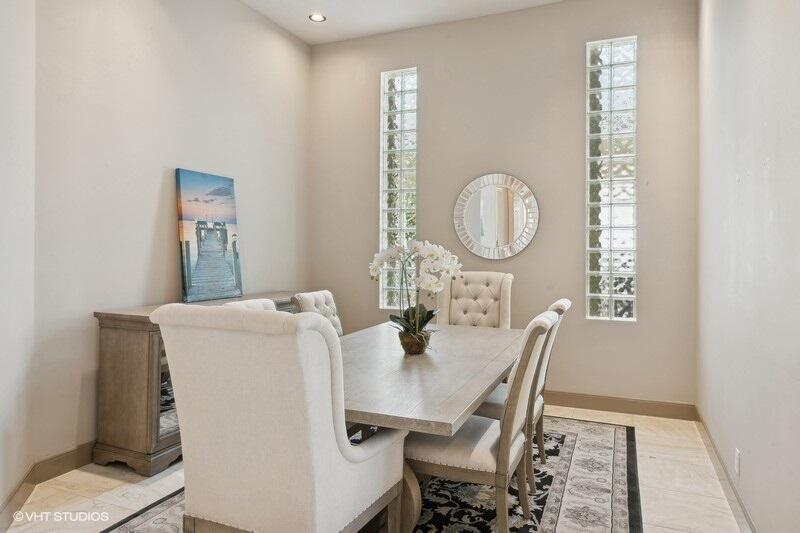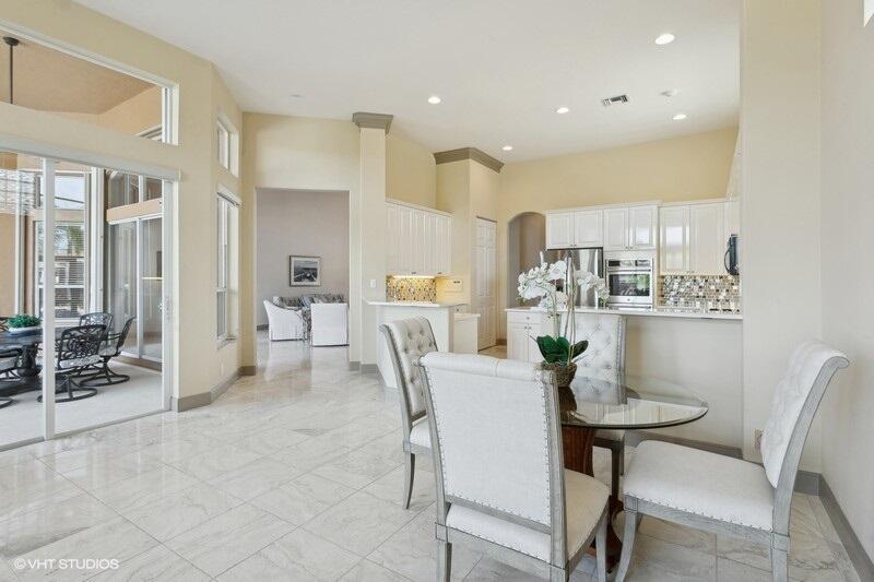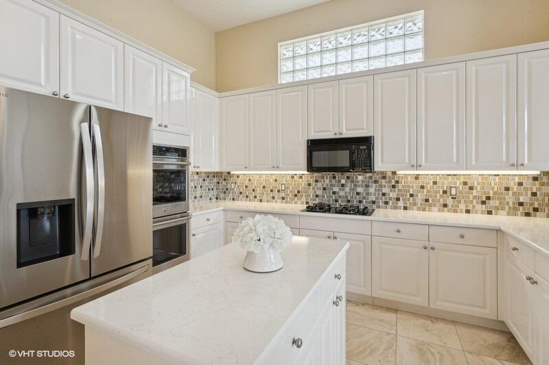 THIS 3BR PLUS DEN 3BA HOME UPGRADES INCLUDE A 2024 ROOF WITH TRANSFERABLE WARRANTY AND HURRICANE PROTECTION WITH ACCORDION SHUTTERS. STEP INSIDE TO DISCOVER HIGH CEILINGS, MARBLE FLOORS, BRIGHT NATURAL LIGHT STREAMING THRU LARGE WINDOWS AND SPACIOUS LIVING AND DINING AREAS. KITCHEN HAS BEEN UPDATED WITH WHITE QUARTZ COUNTERS, TILE BACKSPLASH AND S/S APPLIANCES INCLUDING DOUBLE OVENS(EXCLUDES MICROWAVE/COOKTOP). THE LARGE PRIMARY SUITE FEATURES TWO WALK-IN CLOSETS WITH CUSTOM BUILT INS AND THE PRIMARY BATHROOM HAS BEEN UPDATED WITH WHITE QUARTZ COUNTERS, WHITE CABINETRY, STEP-IN SHOWER AND DUAL SINKS. THE OFFICE/DEN FEATURES A HAND-CRAFTED STYLISH WOOD BUILT-IN. UPGRADES INCLUDE REMOTE-CONTROLLED SHADES, A TANK-LESS GAS WATER HEATER, 2015 AC'S, LANDSCAPING WATER COMES FROM THE LAKE.