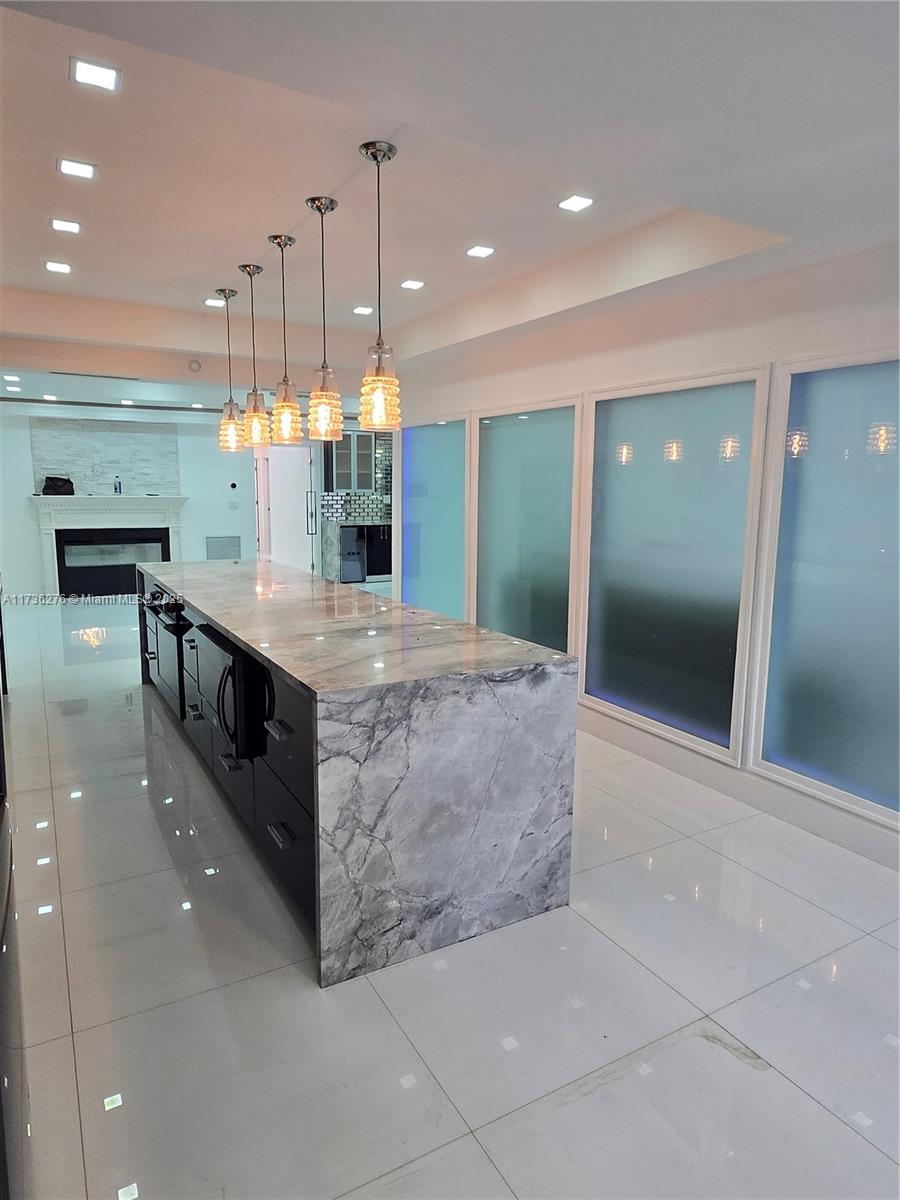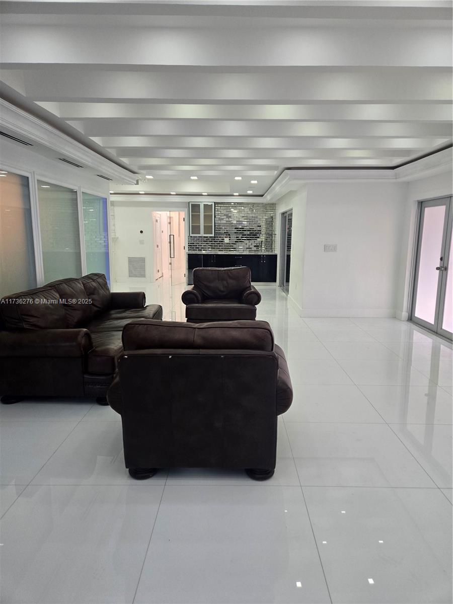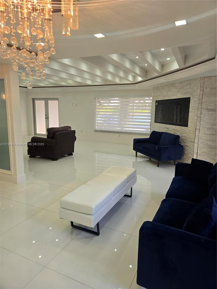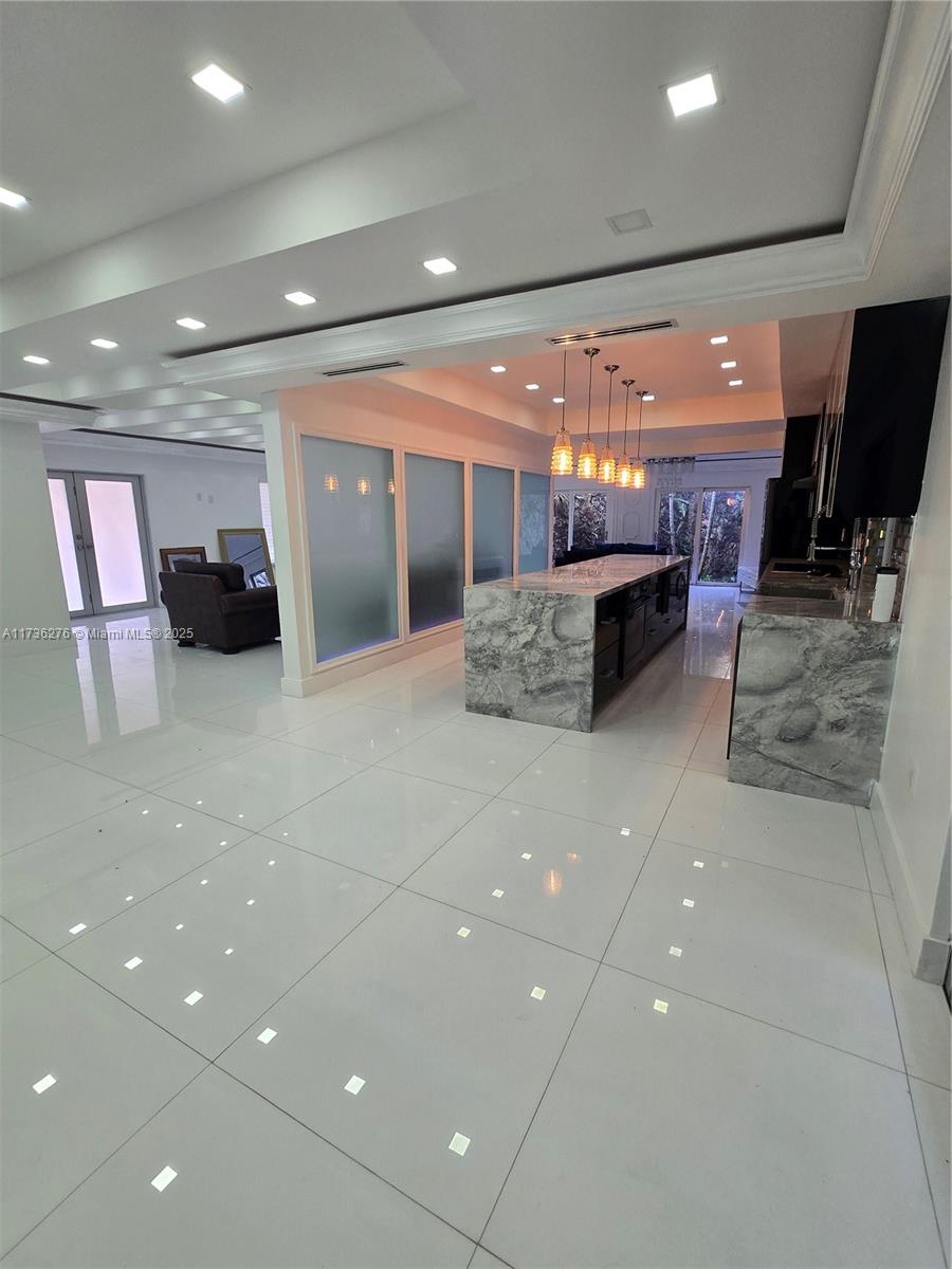 SHORTSALE NOT APPROVED. EXISTING CODE VIOLATIONS. BUYER TO CURE. Welcome to your secluded suburban Oasis. This beautiful designer's home has been carefully updated with exquisite taste and incredible attention to detail. Once you step inside, you will be awed by the porcelain floors and coffered ceilings. The chef-inspired kitchen will leave you speechless. It features a gorgeous kitchen island with a granite mitered waterfall edge, state-of-the-art appliances, high-quality modern kitchen cabinets, and a stainless-steel farmhouse sink. The home has a large split entrance living and dining area. The main bedroom has a beautiful view of the backyard area and its own covered patio. The ensuite bath has a jetted Roman tub, a standup shower, and a large walk-in closet.
