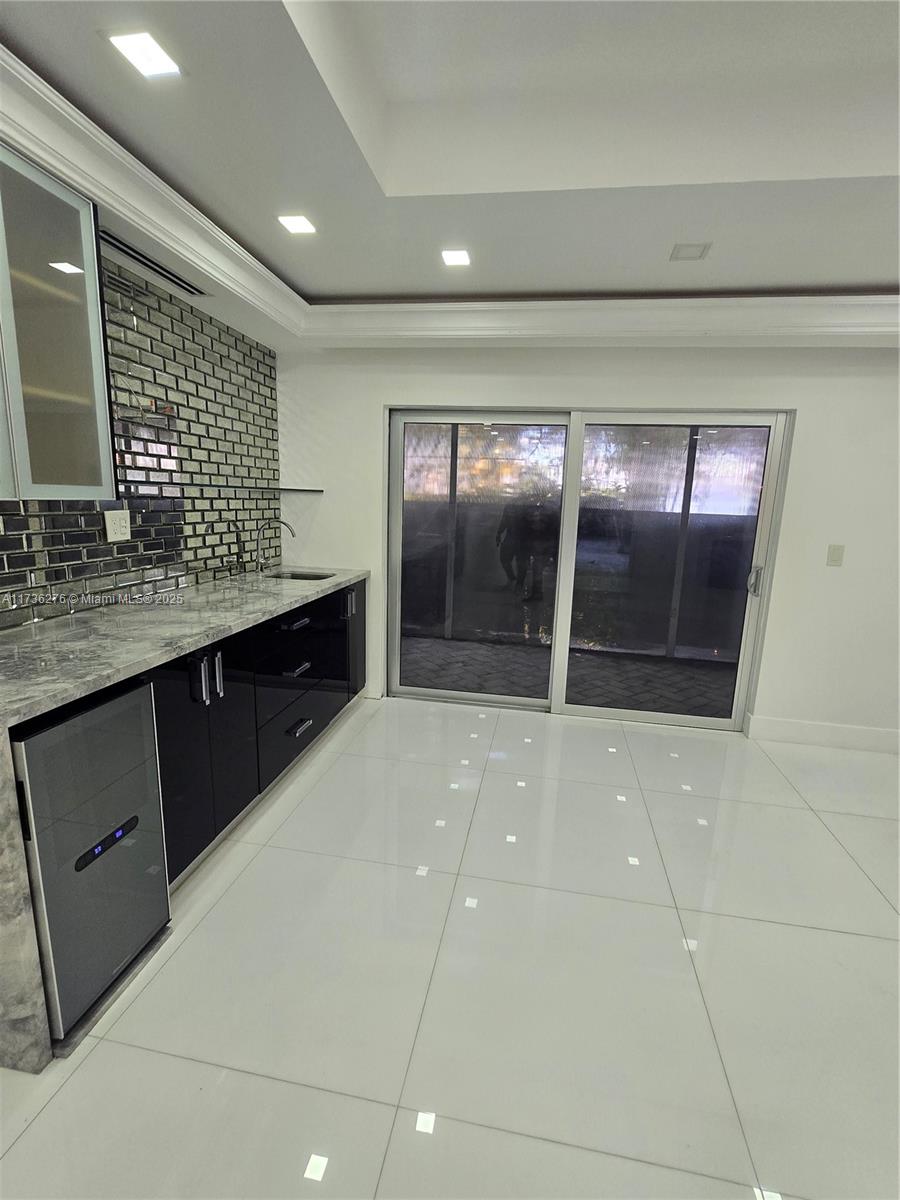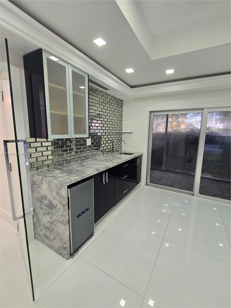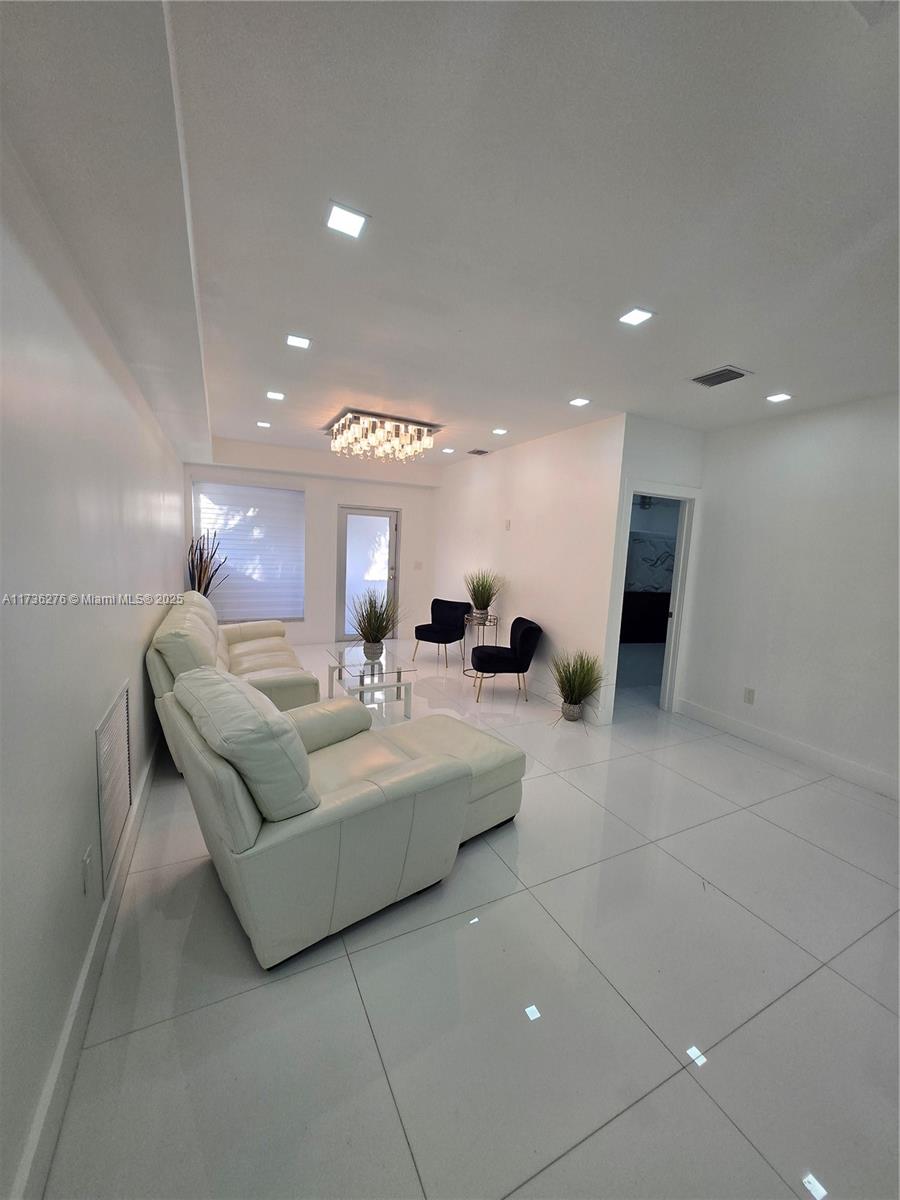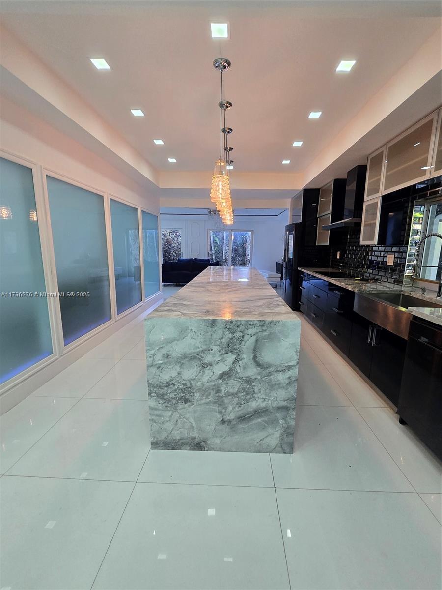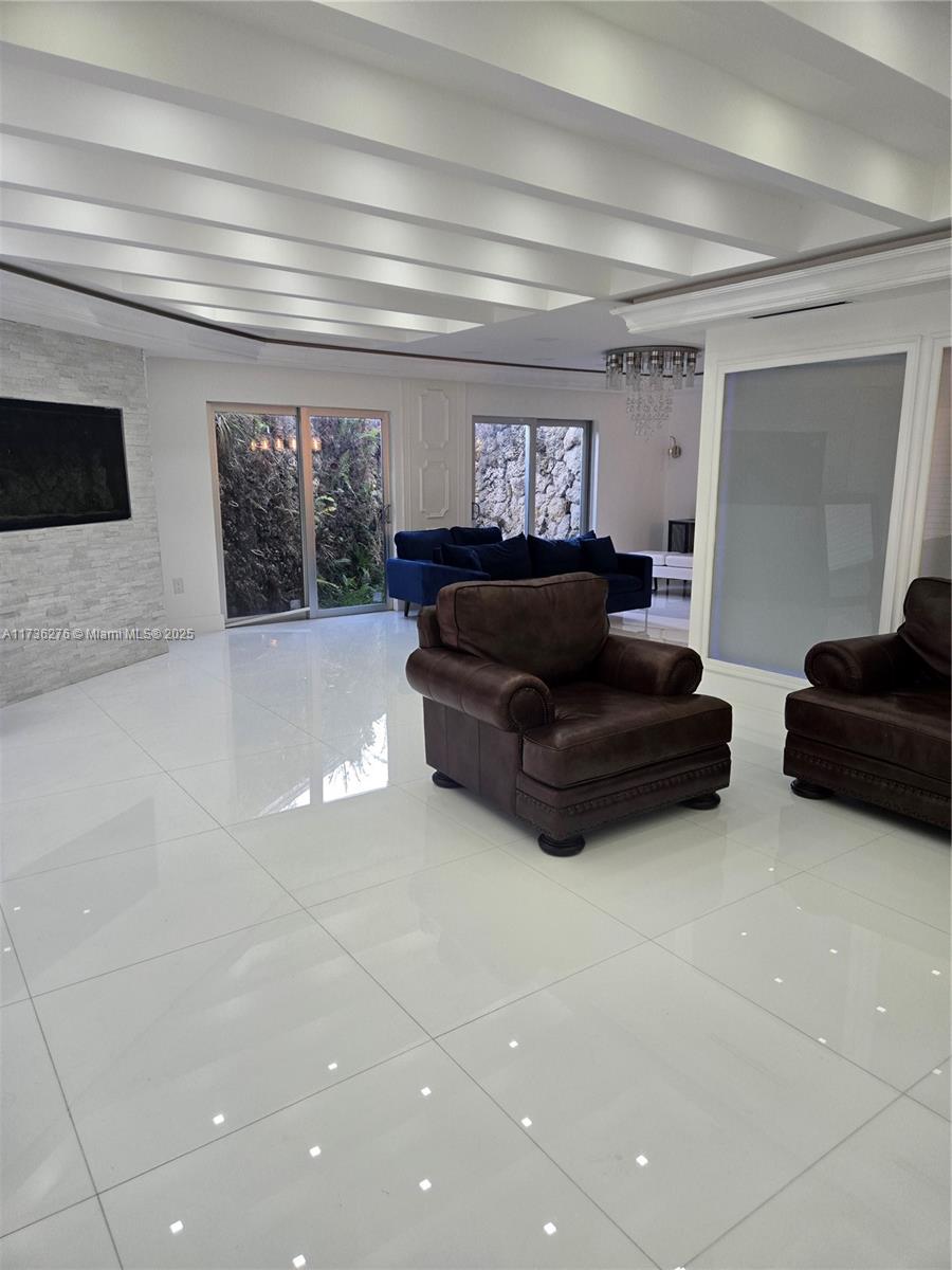 SHORTSALE NOT APPROVED. EXISTING CODE VIOLATIONS. BUYER TO CURE. Welcome to your secluded suburban Oasis. This beautiful designer's home has been carefully updated with exquisite taste and incredible attention to detail. Once you step inside, you will be awed by the porcelain floors and coffered ceilings. The chef-inspired kitchen will leave you speechless. It features a gorgeous kitchen island with a granite mitered waterfall edge, state-of-the-art appliances, high-quality modern kitchen cabinets, and a stainless-steel farmhouse sink. The home has a large split entrance living and dining area. The main bedroom has a beautiful view of the backyard area and its own covered patio. The ensuite bath has a jetted Roman tub, a standup shower, and a large walk-in closet.
