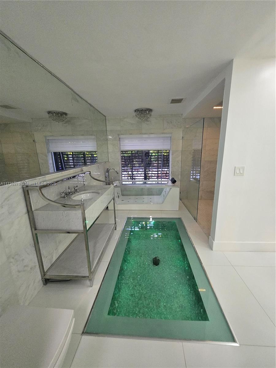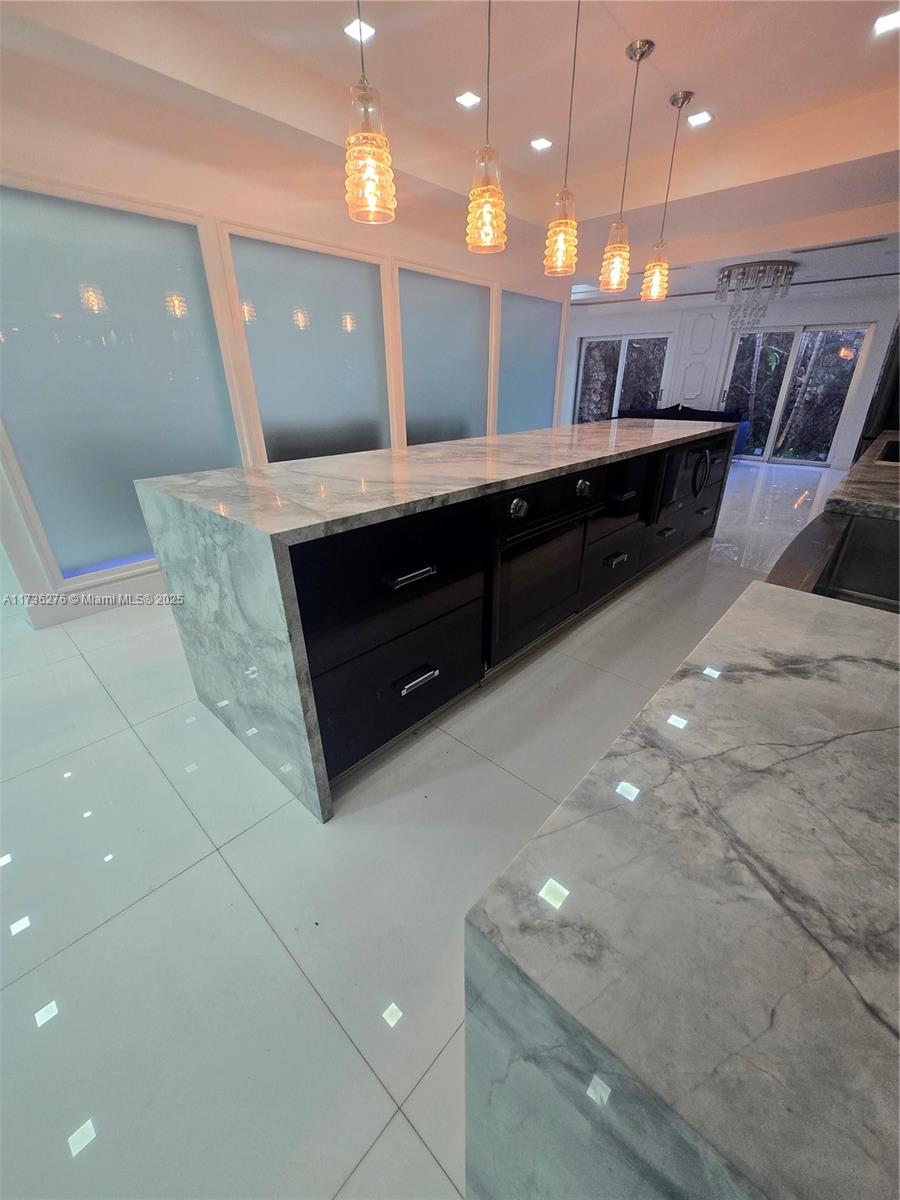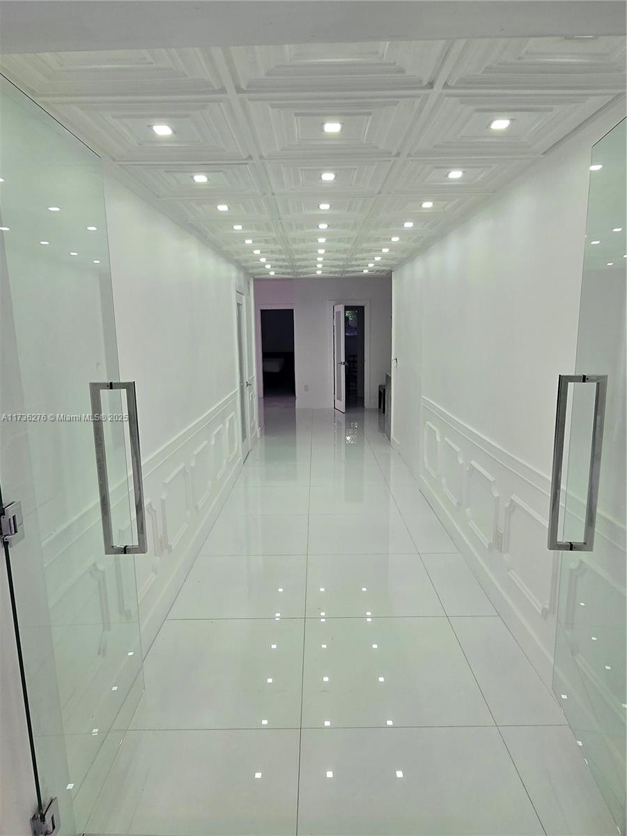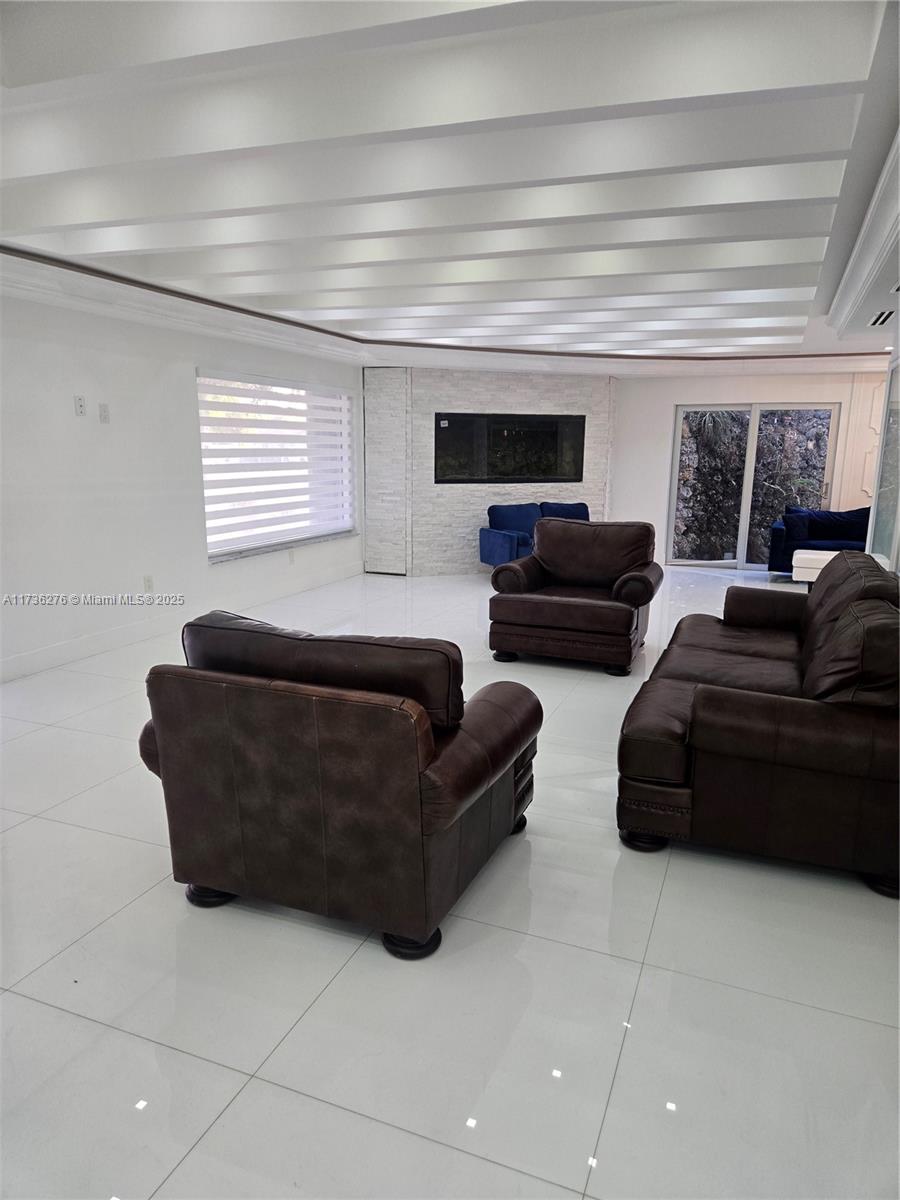 SHORTSALE NOT APPROVED. EXISTING CODE VIOLATIONS. BUYER TO CURE. Welcome to your secluded suburban Oasis. This beautiful designer's home has been carefully updated with exquisite taste and incredible attention to detail. Once you step inside, you will be awed by the porcelain floors and coffered ceilings. The chef-inspired kitchen will leave you speechless. It features a gorgeous kitchen island with a granite mitered waterfall edge, state-of-the-art appliances, high-quality modern kitchen cabinets, and a stainless-steel farmhouse sink. The home has a large split entrance living and dining area. The main bedroom has a beautiful view of the backyard area and its own covered patio. The ensuite bath has a jetted Roman tub, a standup shower, and a large walk-in closet.