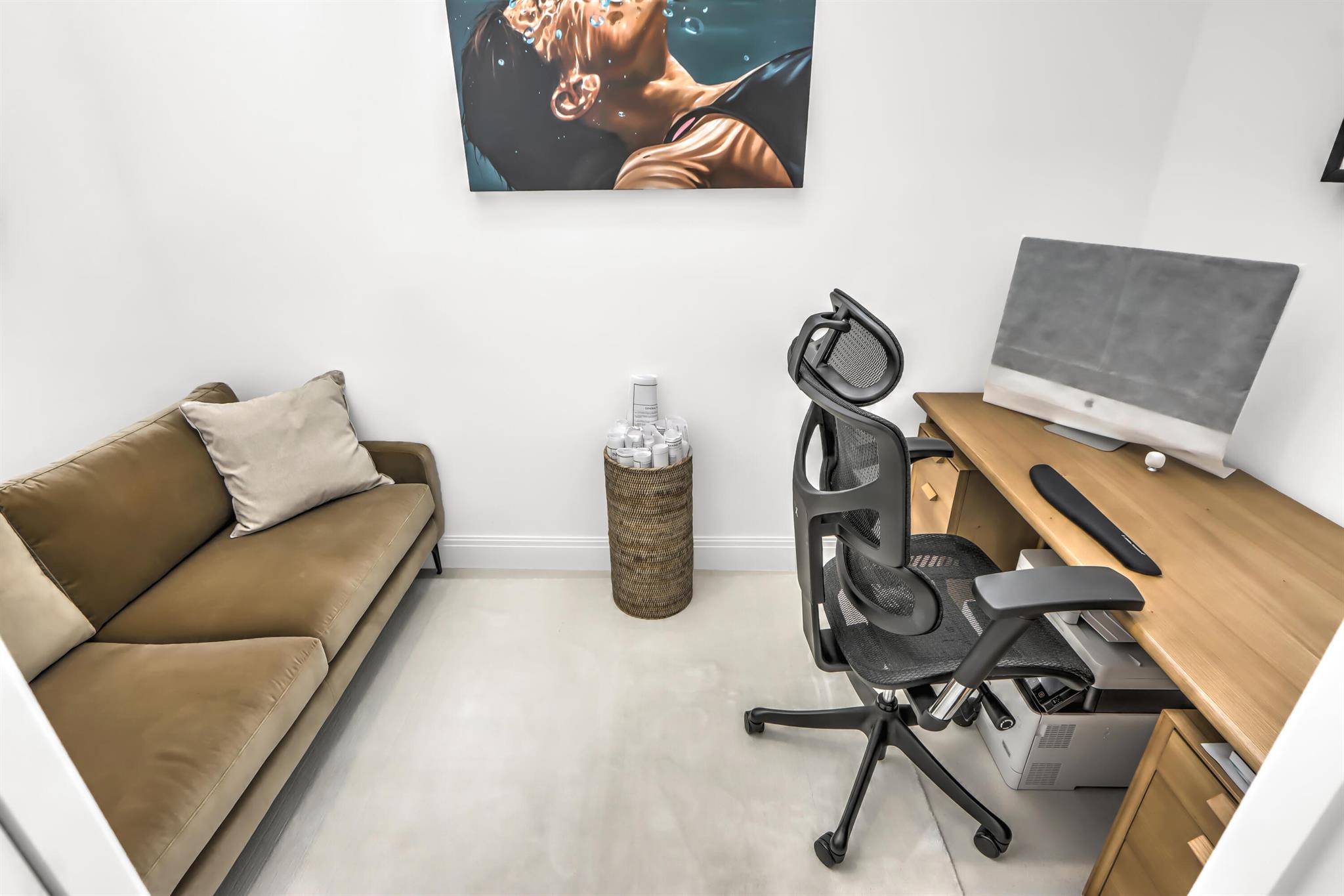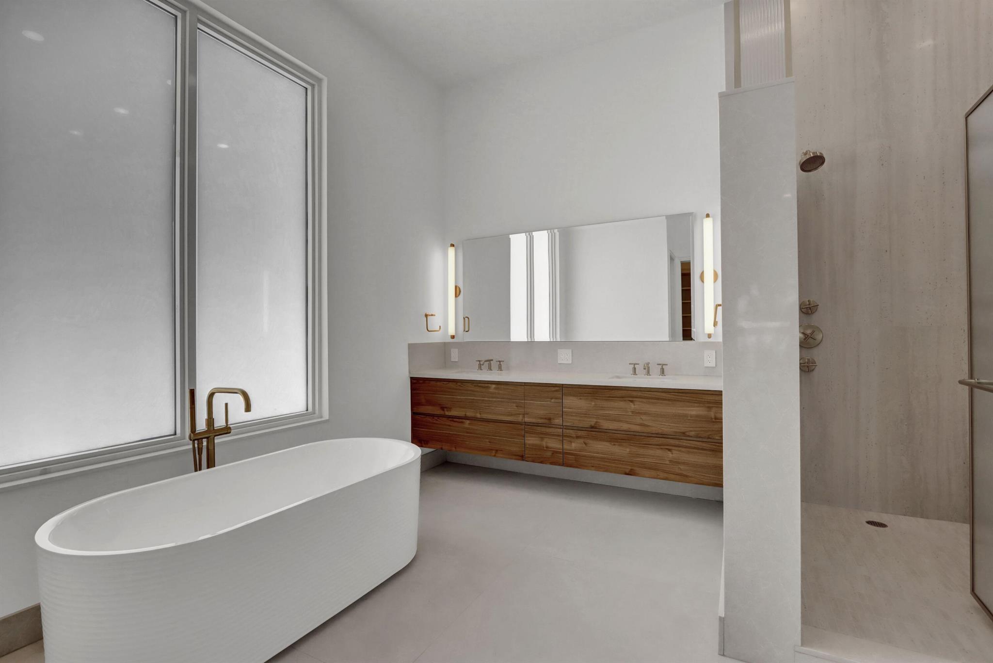 Spectacular interior remodel offering exquisite design and the finest workmanship,this sun-filled one-story home of 3 bedrooms plus an office & 3 baths of contemporary flair has been reconfigured down to the block walls and reframed. Features include volume ceilings with LED high-hats & 8' doors; 4'X4' porcelain tile floors;gourmet island kitchen with taupe 42'' cabinetry, quartz countertops, stainless steel appliances, water filtration system; primary bathroom offering an oversized shower with 2 heads & a free-standing tub; remodeled secondary bathrooms; flat wall finish throughout;custom closet design; gold-tone high-end hardware including hinges;impact windows & doors;epoxy garage floor,exterior lighting & private outdoor space with a pavered patio,grassy area & room for a pool.