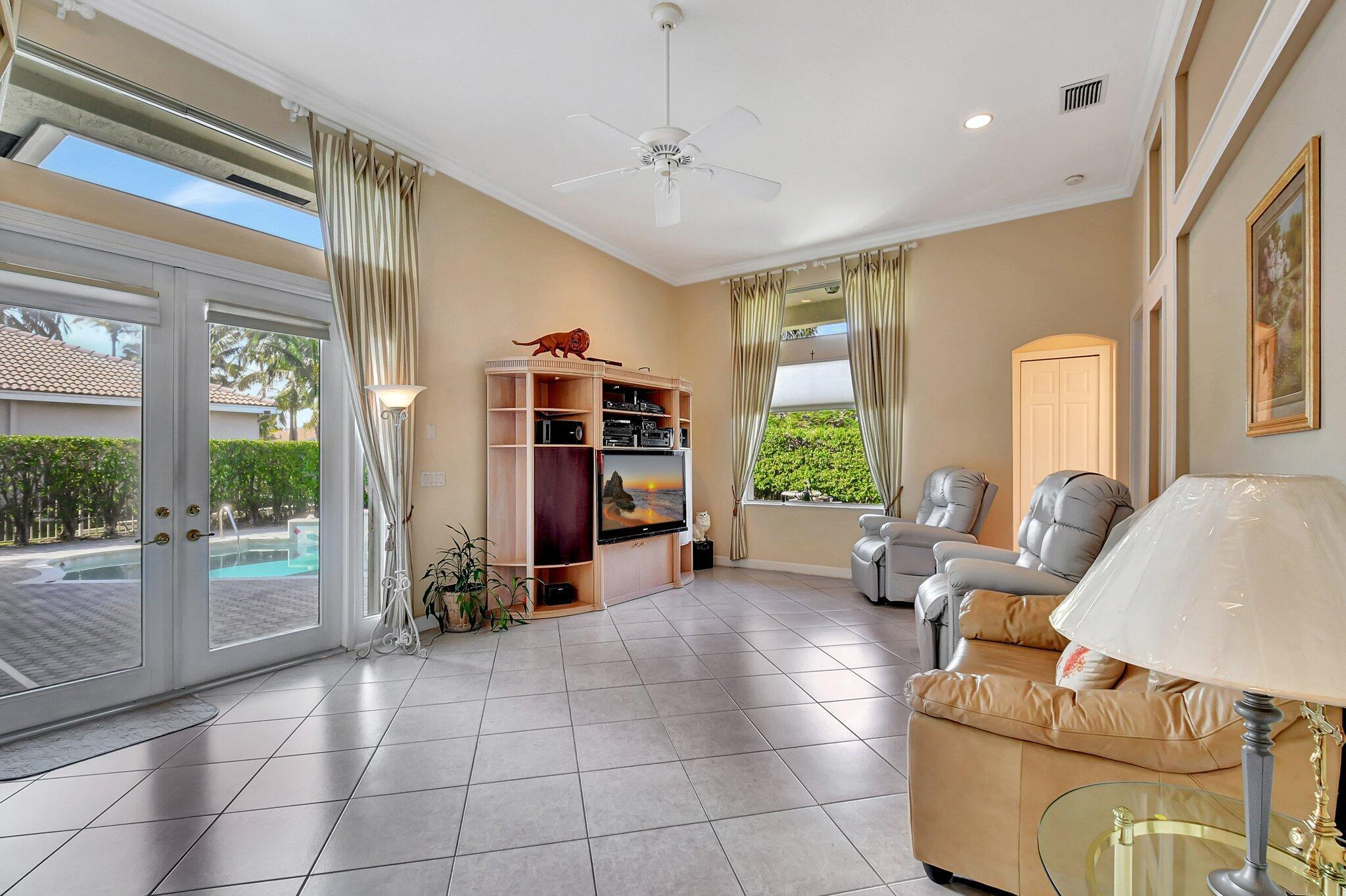 This lovely custom-designed 1 story residence in the gated Avalon community of Boca Raton features 4 bedrooms, den, family room, 3.1 bathrooms, 3-car garage & pool. It boasts an open concept w/abundant natural light, volume & coffered ceilings, French doors & views of the pool & patio. Large kitchen w/breakfast nook, SS appliances & plenty of cabinets. Master Suite includes a sitting room, pool access, walk-in closet, full bathroom w/dual sinks, separate shower, tub & bidet. Other bedrooms have walk-in closets. Outdoor space is ideal for enjoyment & entertainment. Accordion shutters. Community offers 24-hour manned guard gate, low HOA fees, club house, playground & close to A rated schools, Houses of Worship, dining, shopping, beach, major highways & more. Property is indeed a must see!