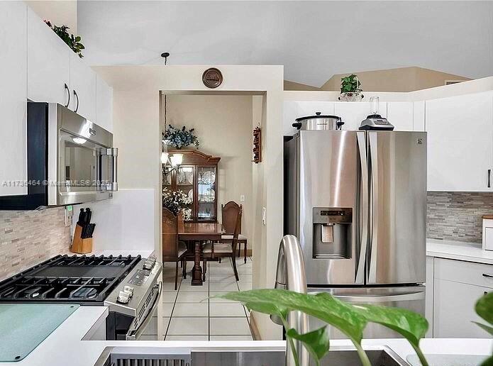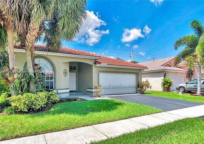 Sporting a suite for a live-in babysitter or healthcare provider this beautiful home is at The Gables in Weston. This home features an open, split floor plan. Knockdown ceilings throughout the house, BRAND NEW Roof 2019 and rain gutters, New A/C February 2020. 3 bedrooms, 1 office, 2 charming bathrooms, 2 car garages, nice neutral tile floors throughout the main living space and laminate wood mahogany-look flooring in all 3 bedrooms. Huge master (in-law/guest) suite with walk-in closet, master bath separate tub/shower. Gas stove. Upgraded stainless steel appliances. Volume ceilings, large family room. Laundry room with newer washer and dryer. Close to restaurants, shopping, three airports, and just half of an hour from the finest beaches.
