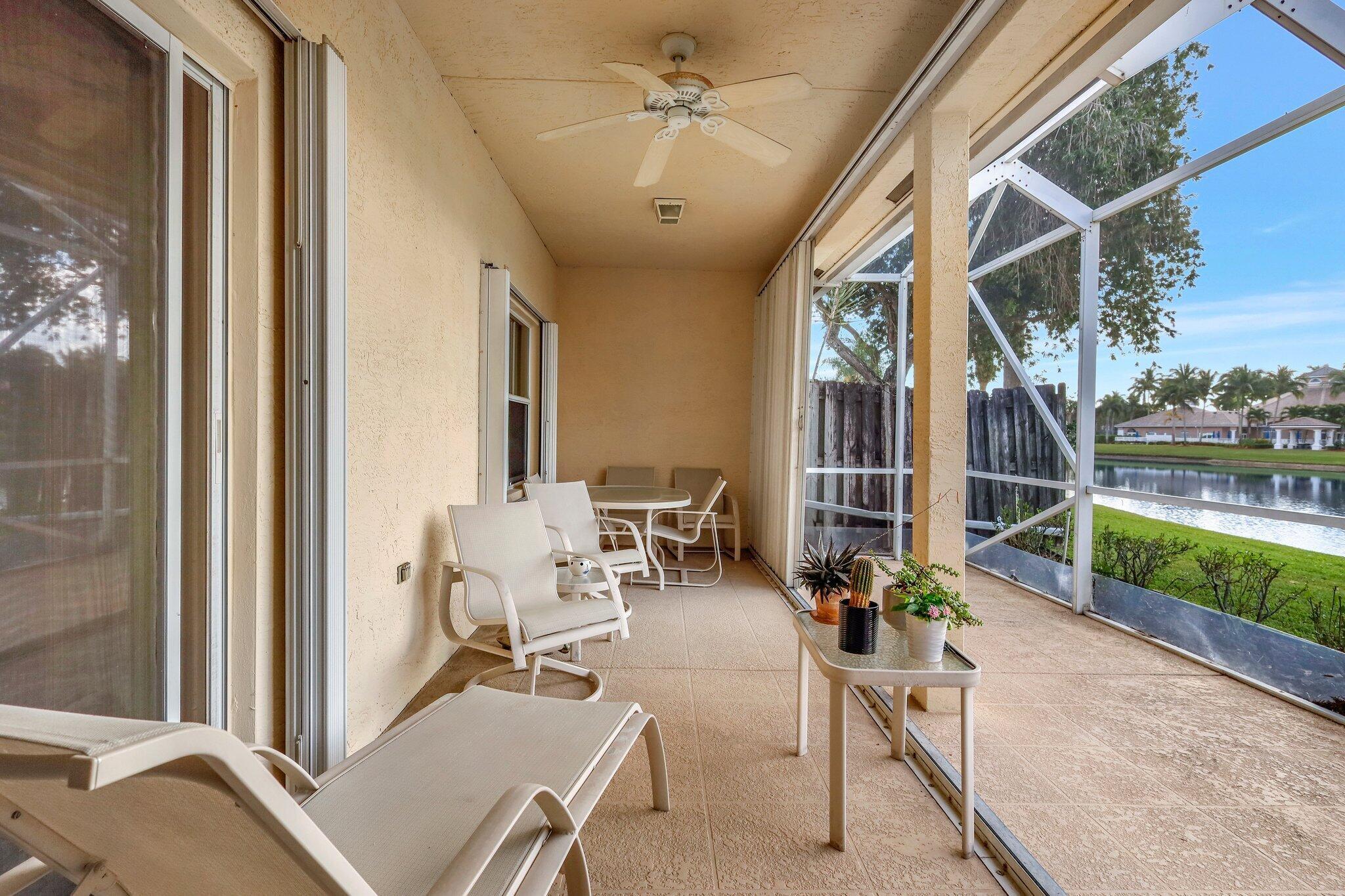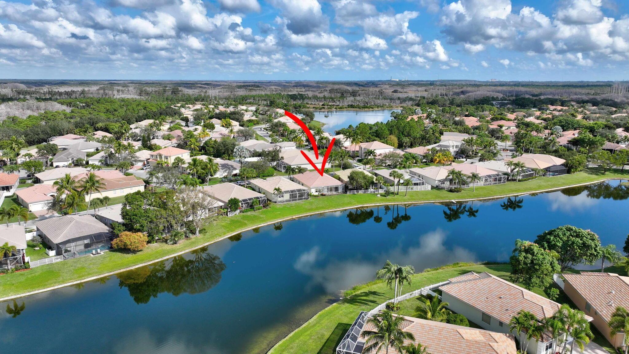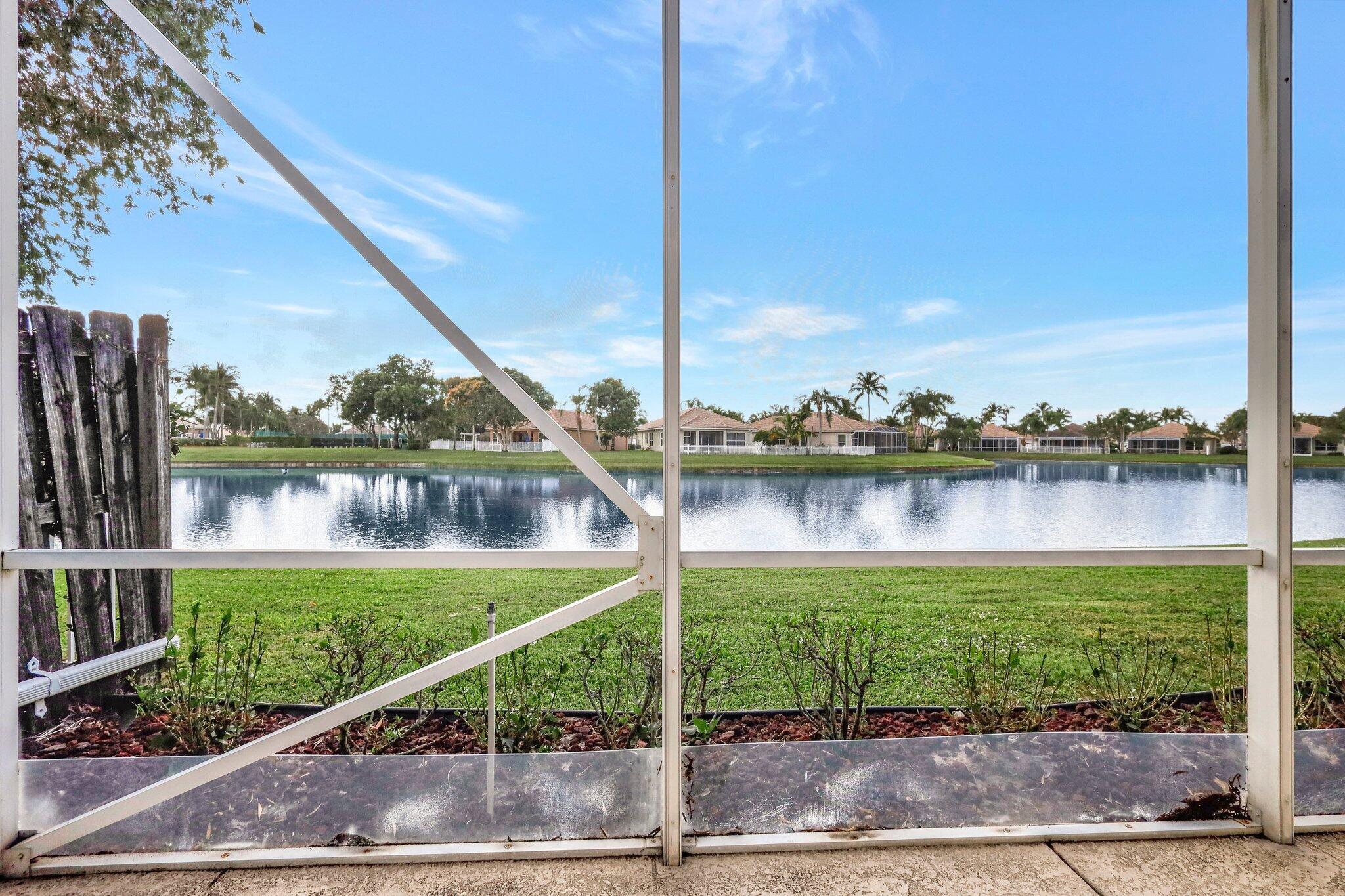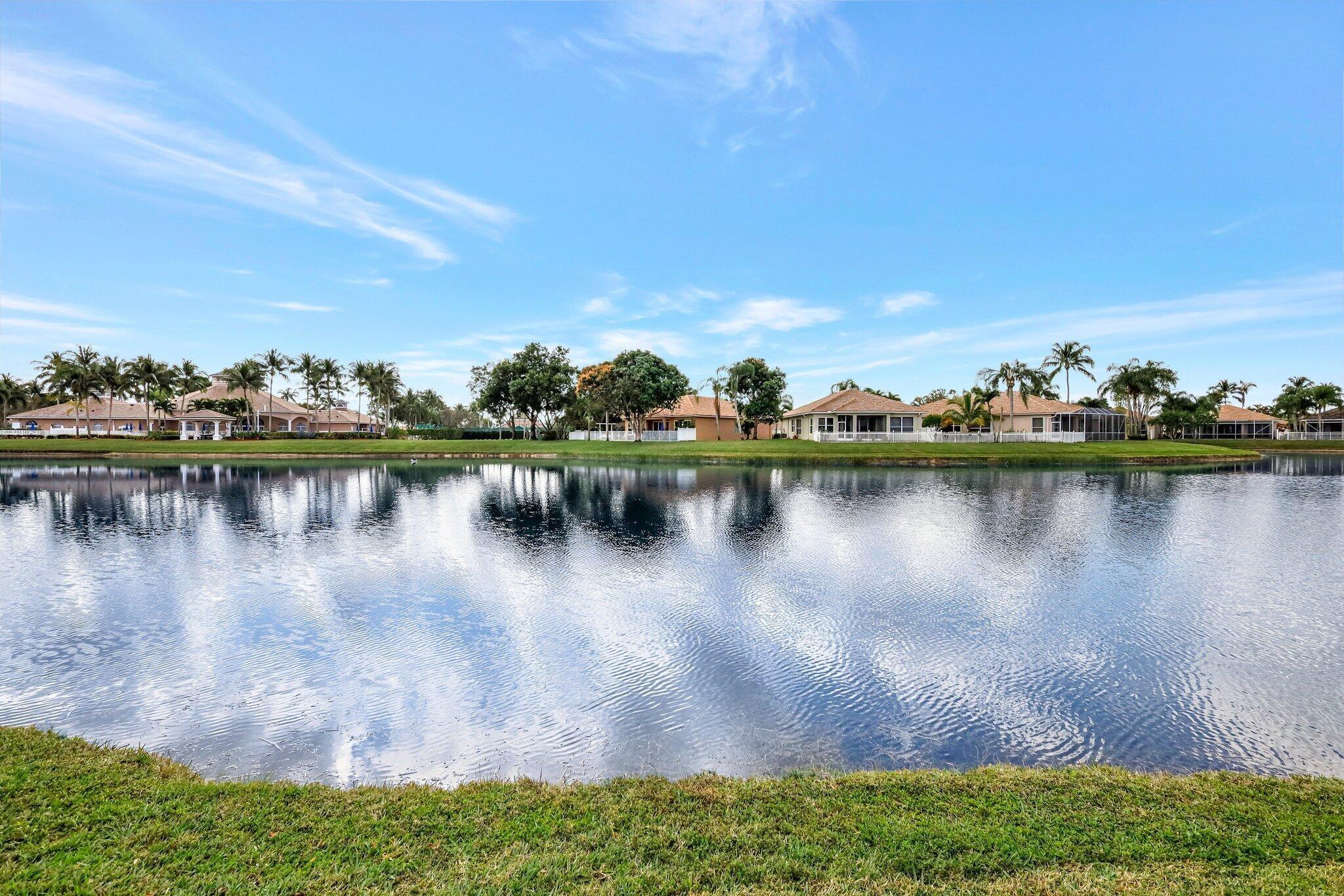 Pristine lakeside 3/2/2 home offered by original owner in ultra convenient Andros Isle. Enjoy wide lake views. Pristine and lovingly maintained. Screened front entrance. Large open Kitchen with center island and casual dining overlooking the lake. Custom window treatments, Updated appliances. Large K cabinets (wood).Pullout drawersr Huge Custom made buffet cabinet between Formal DR and FamRm.. Spa/Roman Tub in MBTH. Large customized closets (2) in MBR. Double Screened covered patio. Accordian Hurricane Shutters. POA fee includes landscaping, basic CATV, WiFi/Broadband, 24/7 staffed gate, monitored home security, irrigation, award winning resort clubhouse w heatedpool and huge fitness center. Convenient to airport, turnpike, Wellington, Downtown WPB. Private road to Publix plaza..
