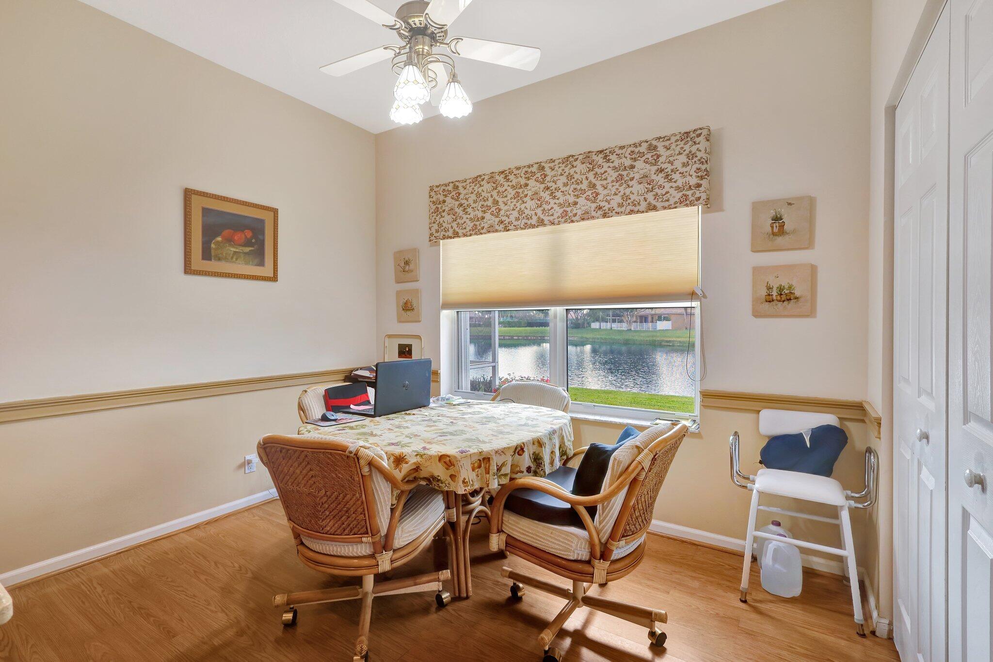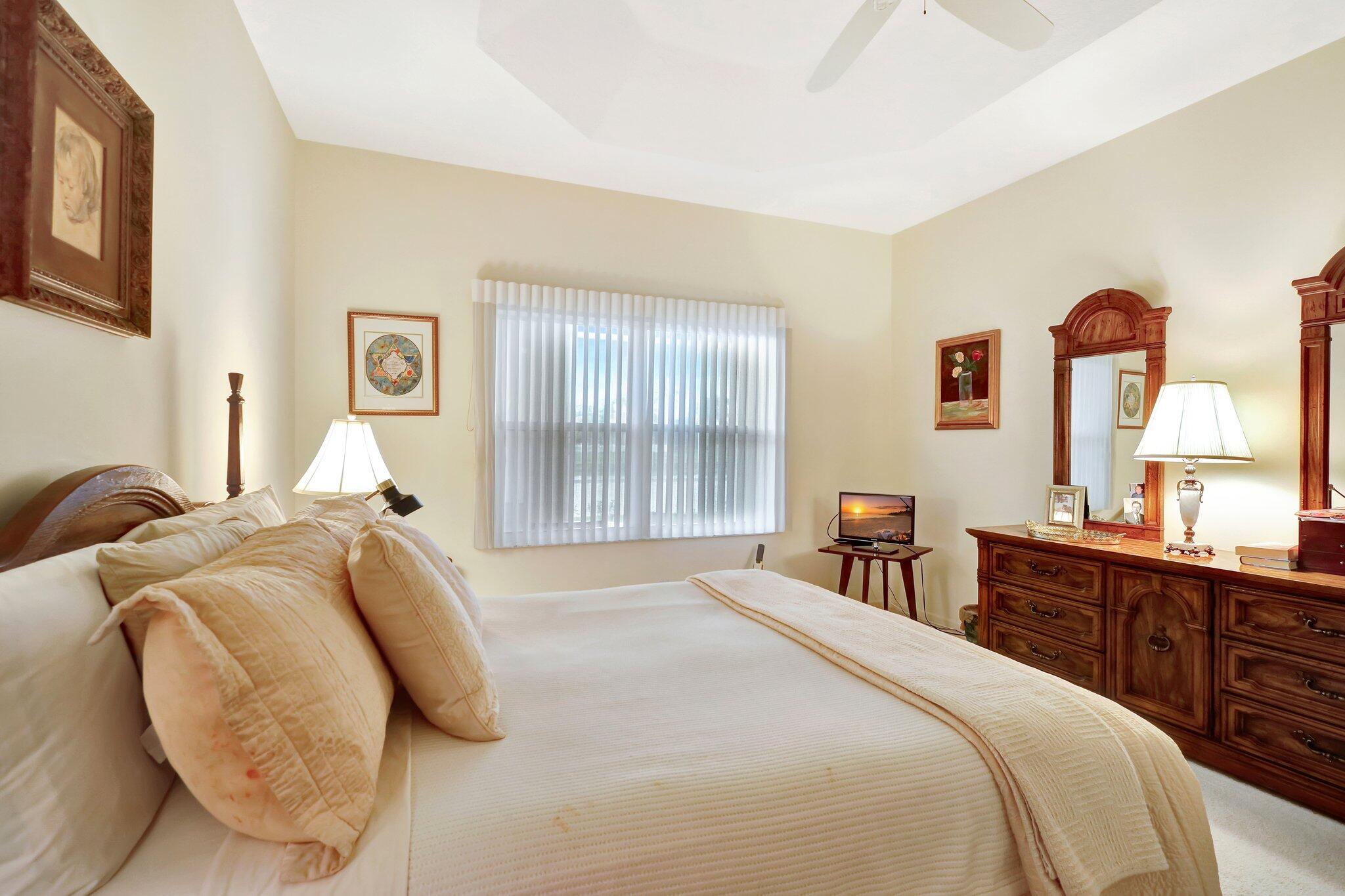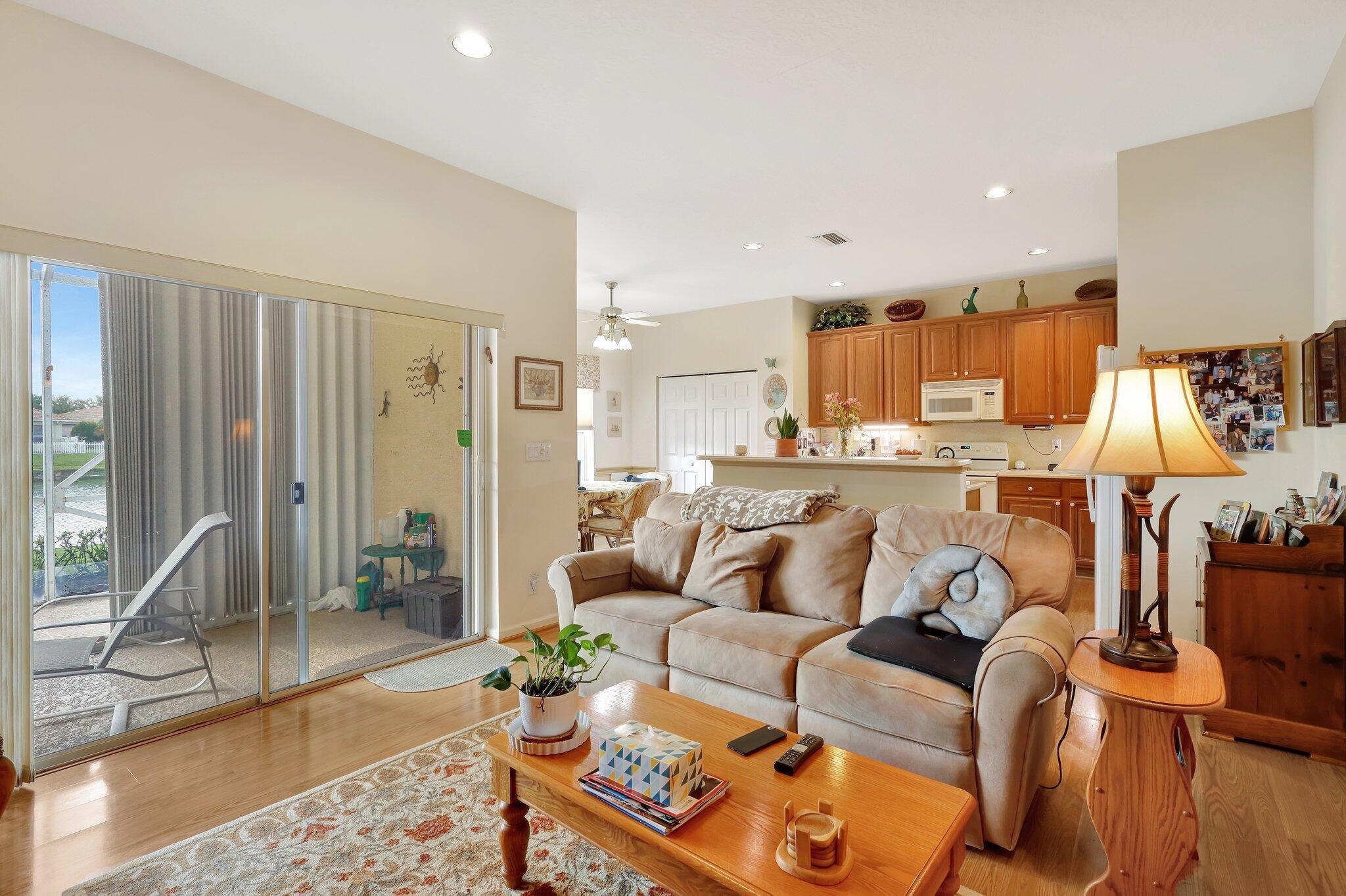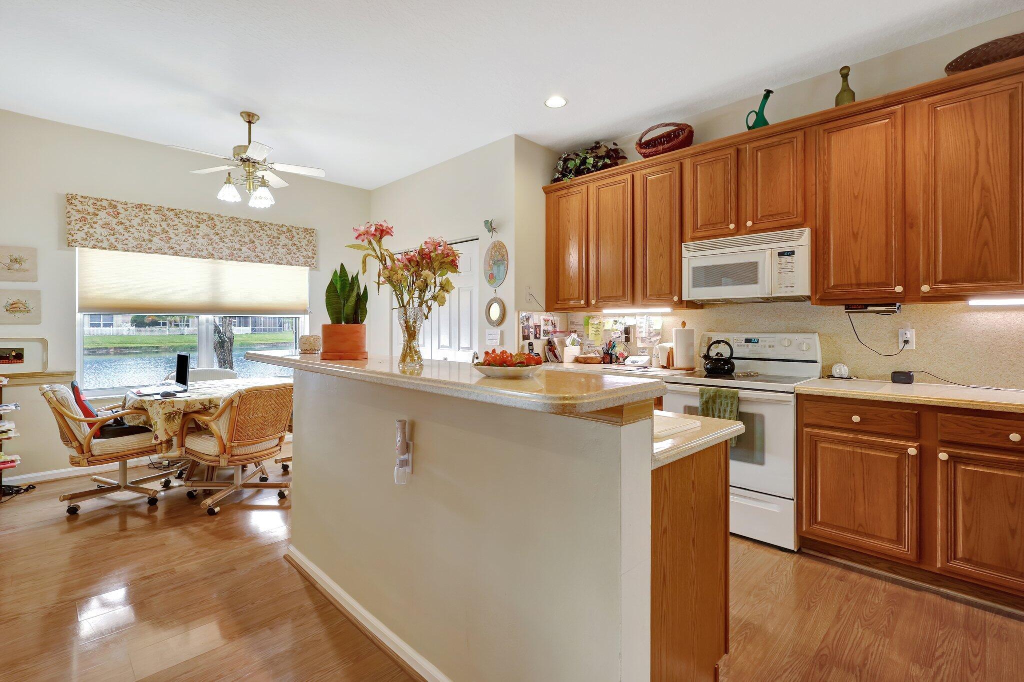 Pristine lakeside 3/2/2 home offered by original owner in ultra convenient Andros Isle. Enjoy wide lake views. Pristine and lovingly maintained. Screened front entrance. Large open Kitchen with center island and casual dining overlooking the lake. Custom window treatments, Updated appliances. Large K cabinets (wood).Pullout drawersr Huge Custom made buffet cabinet between Formal DR and FamRm.. Spa/Roman Tub in MBTH. Large customized closets (2) in MBR. Double Screened covered patio. Accordian Hurricane Shutters. POA fee includes landscaping, basic CATV, WiFi/Broadband, 24/7 staffed gate, monitored home security, irrigation, award winning resort clubhouse w heatedpool and huge fitness center. Convenient to airport, turnpike, Wellington, Downtown WPB. Private road to Publix plaza..