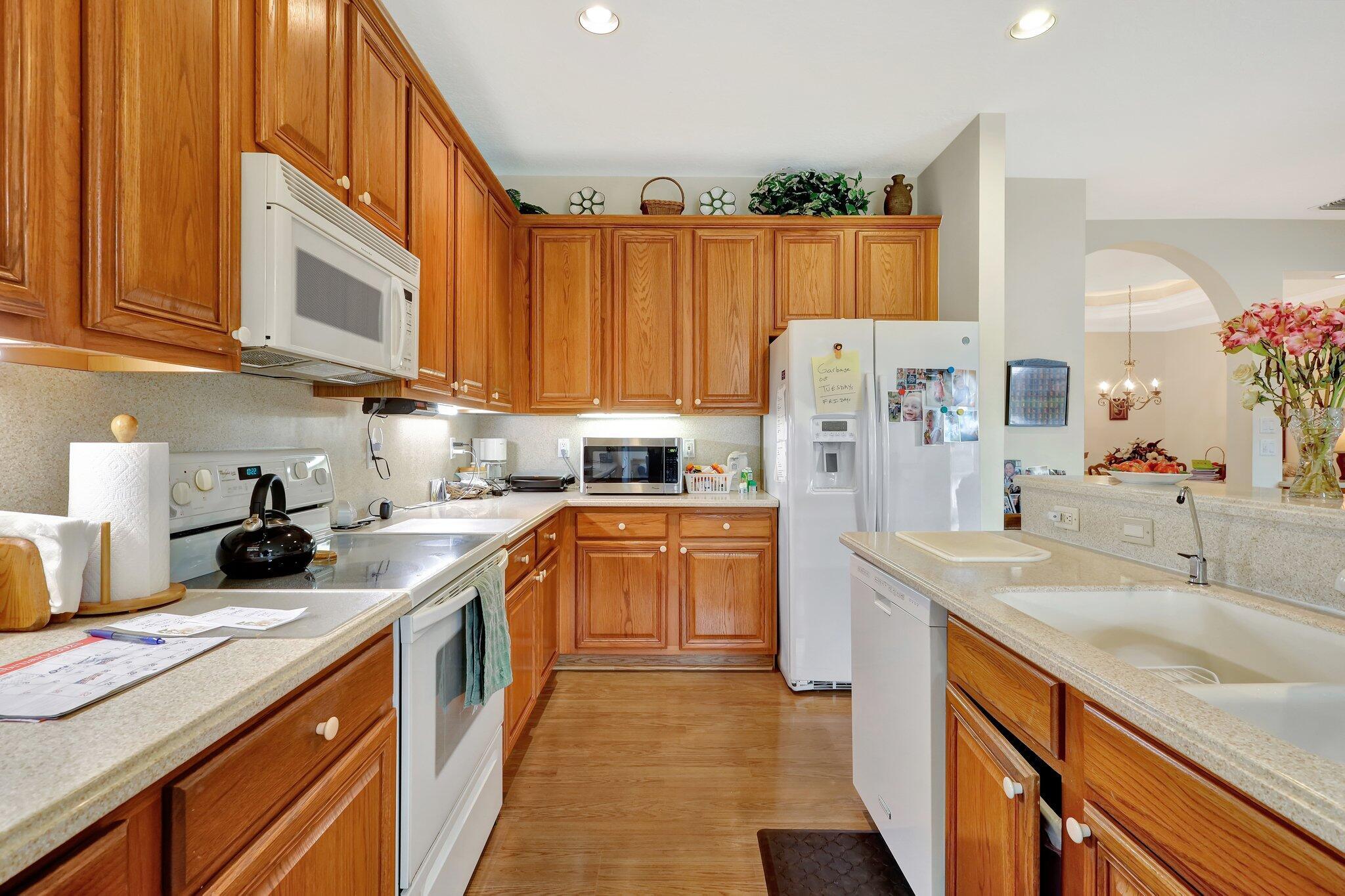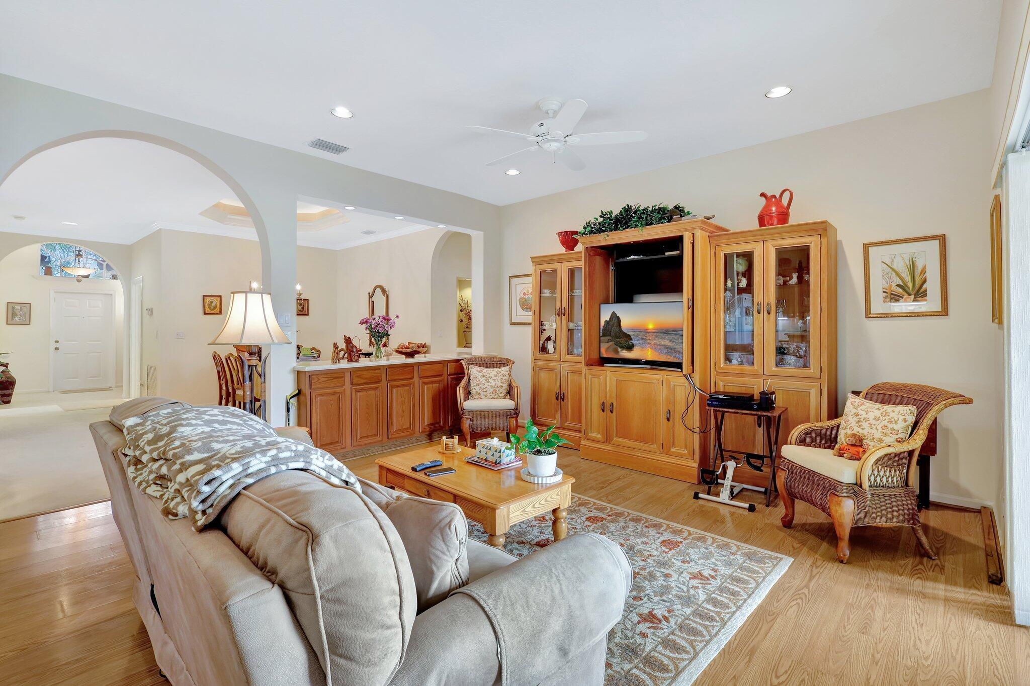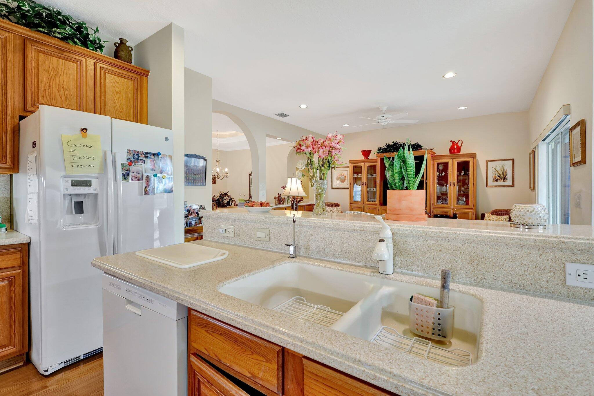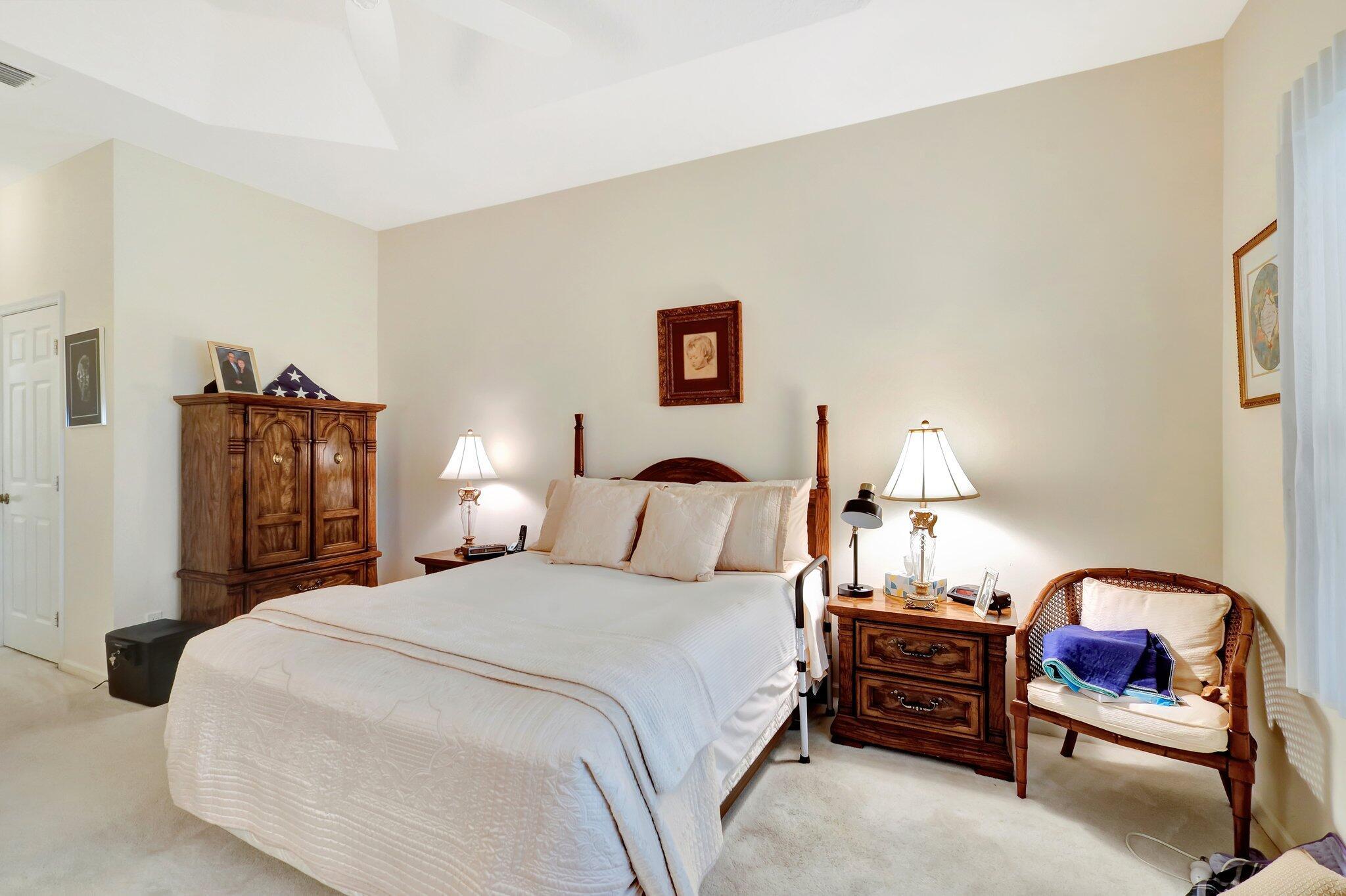 Pristine lakeside 3/2/2 home offered by original owner in ultra convenient Andros Isle. Enjoy wide lake views. Pristine and lovingly maintained. Screened front entrance. Large open Kitchen with center island and casual dining overlooking the lake. Custom window treatments, Updated appliances. Large K cabinets (wood).Pullout drawersr Huge Custom made buffet cabinet between Formal DR and FamRm.. Spa/Roman Tub in MBTH. Large customized closets (2) in MBR. Double Screened covered patio. Accordian Hurricane Shutters. POA fee includes landscaping, basic CATV, WiFi/Broadband, 24/7 staffed gate, monitored home security, irrigation, award winning resort clubhouse w heatedpool and huge fitness center. Convenient to airport, turnpike, Wellington, Downtown WPB. Private road to Publix plaza..