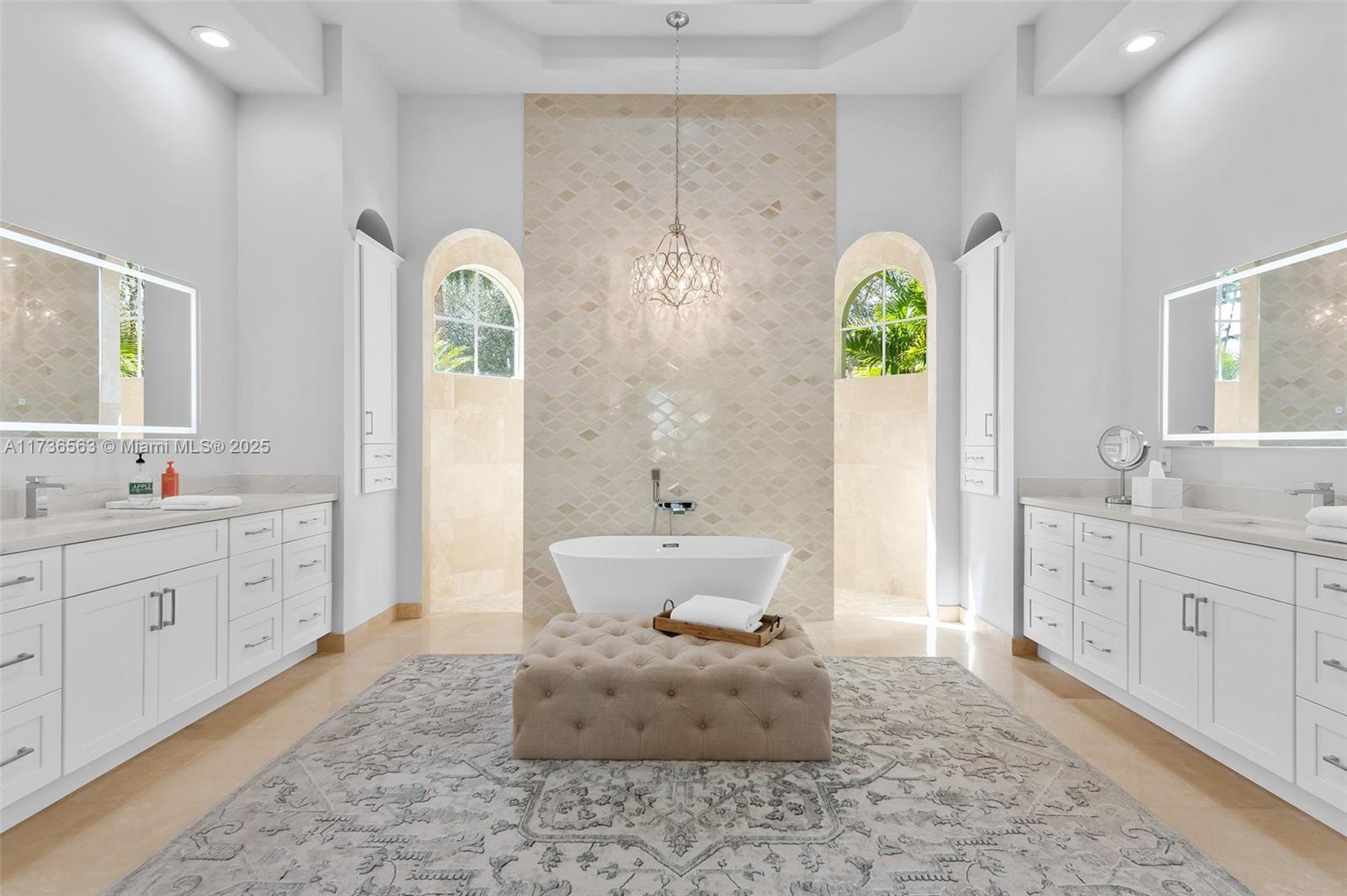 Welcome to the Exclusive sought after Gated Community of Stonebrook Estates. Enjoy Breathtaking Expansive Waterview's from this perfectly situated Waterford model 1 story triple split floorplan home featuring 5 bed + office & 5.5 baths. Fully remodeled with close to 1 million in premium upgrades which include new two-tier custom-built chef's kitchen w/ double full-size islands, appliance garage, built out pantry, bar & Thermador appliances. New roof & remodeled bathrooms. All new 3 ac's, pool equipment, sprinkler system, water heater, roller shades/linens, LED light fixtures, custom closets, bedroom flooring, landscaping, interior & exterior painting. Community features clubhouse w/ fitness center, media room, party room, playground, tennis, pickleball, basketball, & volleyball courts.
