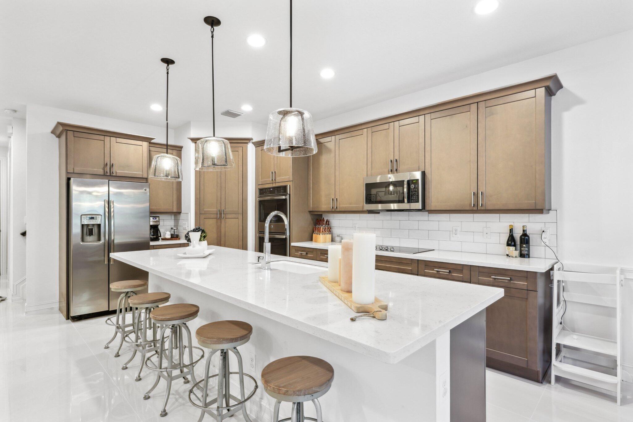 Welcome to this stunning East Boca Raton two-story townhome, a true gem in Valletta, boasting high ceilings throughout. This dream home offers the most sought-after floor plan in the community. It features three spacious bedrooms, two full bathrooms & a convenient half bath on the main floor, providing ample space & functionality.All bedrooms are located upstairs, along with a loft. The master suite includes a bathroom & two large walk-in closets. Every window & door is equipped with hurricane impact protection for added peace of mind. The attention to detail showcases true pride of ownership. The gourmet kitchen is a chef's dream, complete with a 14-foot island, double ovens & a large pantry. Enjoy the private fenced turfed yard, which backs up to a tranquil nature preserve.