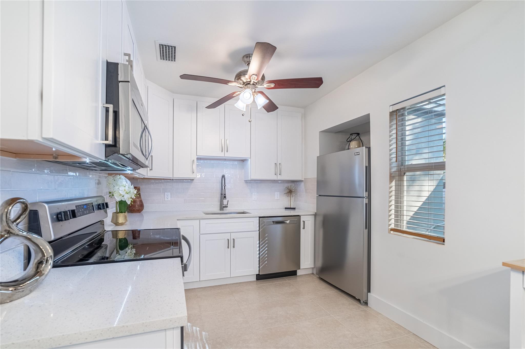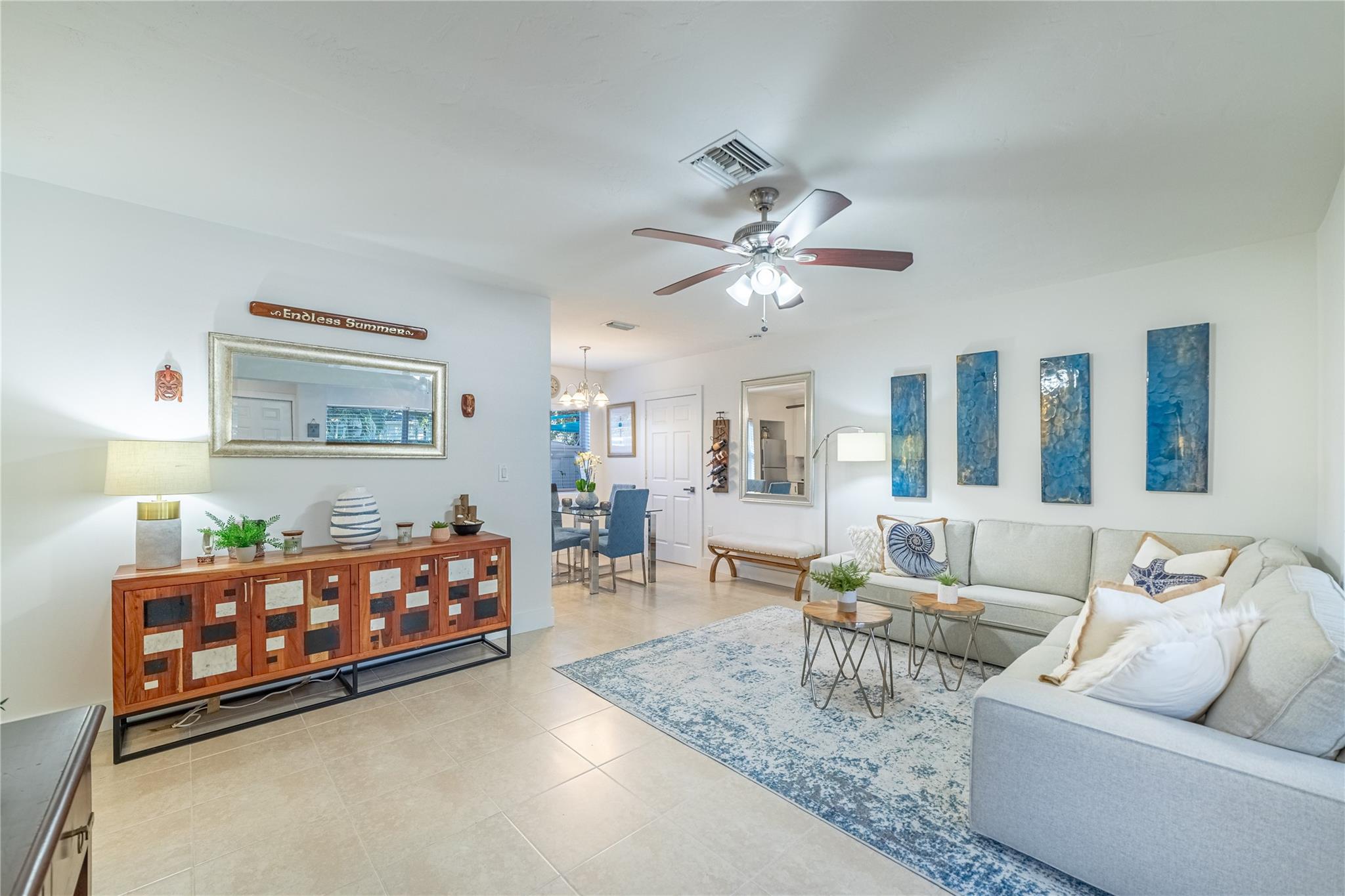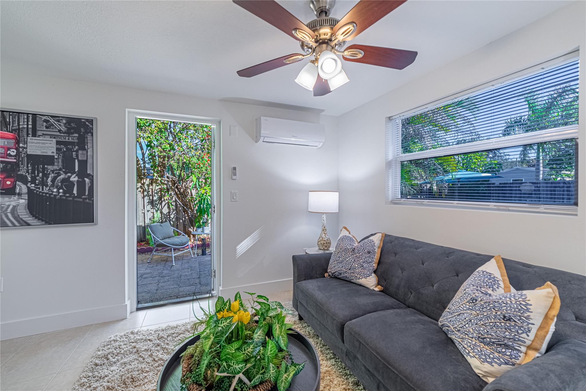 Own a little piece of paradise near Marina Mile. This beautifully renovated home with rare oversized GARAGE is waiting to welcome you. Totally move-in ready! Nice open floor plan, brand new custom kitchen & bathroom, new waterproof vinyl plank floors in bedrooms. Updated Plumbing to PVC & fully rewired Electric on interior. Savor the huge indoor laundry room, storage & pantry area. Third room used as office/den has a separate entry and can easily accommodate a 2nd bathroom again. Unique low maintenance yard featuring multiple patio/seating areas, newly landscaped & fully fenced. Room for pool. All Hurricane Impact windows (2017) Flat roof 2020, main 2015. This home is a must see! Located East of 1-95, near Airport, Port Everglades, Marinas/shipyards, Beaches & All major hwys