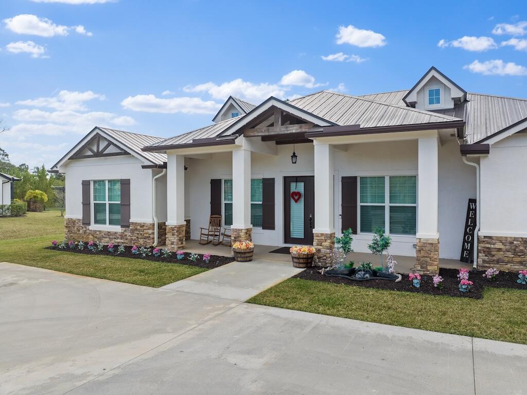 Welcome home! Discover this exceptional CBS residence in the highly sought-after Evergreen/Crane Watch neighborhood. This meticulously maintained property is situated on a 1-acre lot and was constructed in 2020. The home features 3 bedrooms, 2 1/2 bathrooms, an oversized detached 2-car garage, and a spacious flex room (19' x 10') suitable as a game room or 4th bedroom. Highlights include a metal roof, hurricane impact windows and doors, over 3,000 square feet of living space, and a custom pool with a built-in jacuzzi and rock waterfall. Additional amenities comprise a custom-built bar with a Granite Countertop and Plantation Shutters throughout.