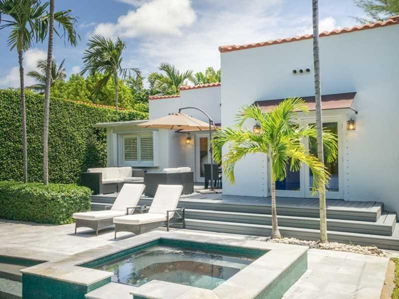 Blocks from the white sand beaches & minutes to Sobe & Lincoln Road. This completely updated gated 3BD/2BA 1-story pool home is oozing w/ charm w/ all of today's modern conveniences: stainless steel appliances, gas stove, mosaic tiled bathrooms, wood floo rs, central A/C, sound system, sprinkler, outdoor lighting, spectacular heated saltwater pool w/ hot tub & waterfall. High vaulted ceilings, lush landscaping & more!