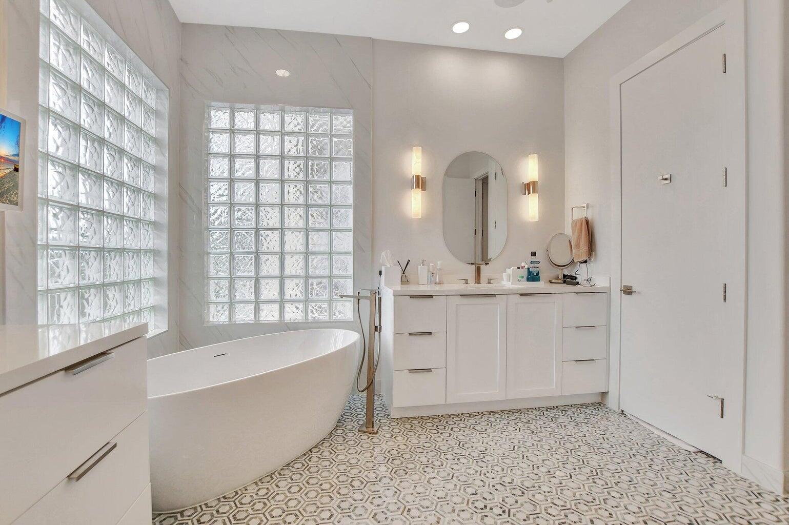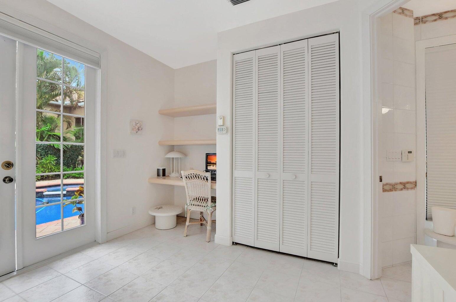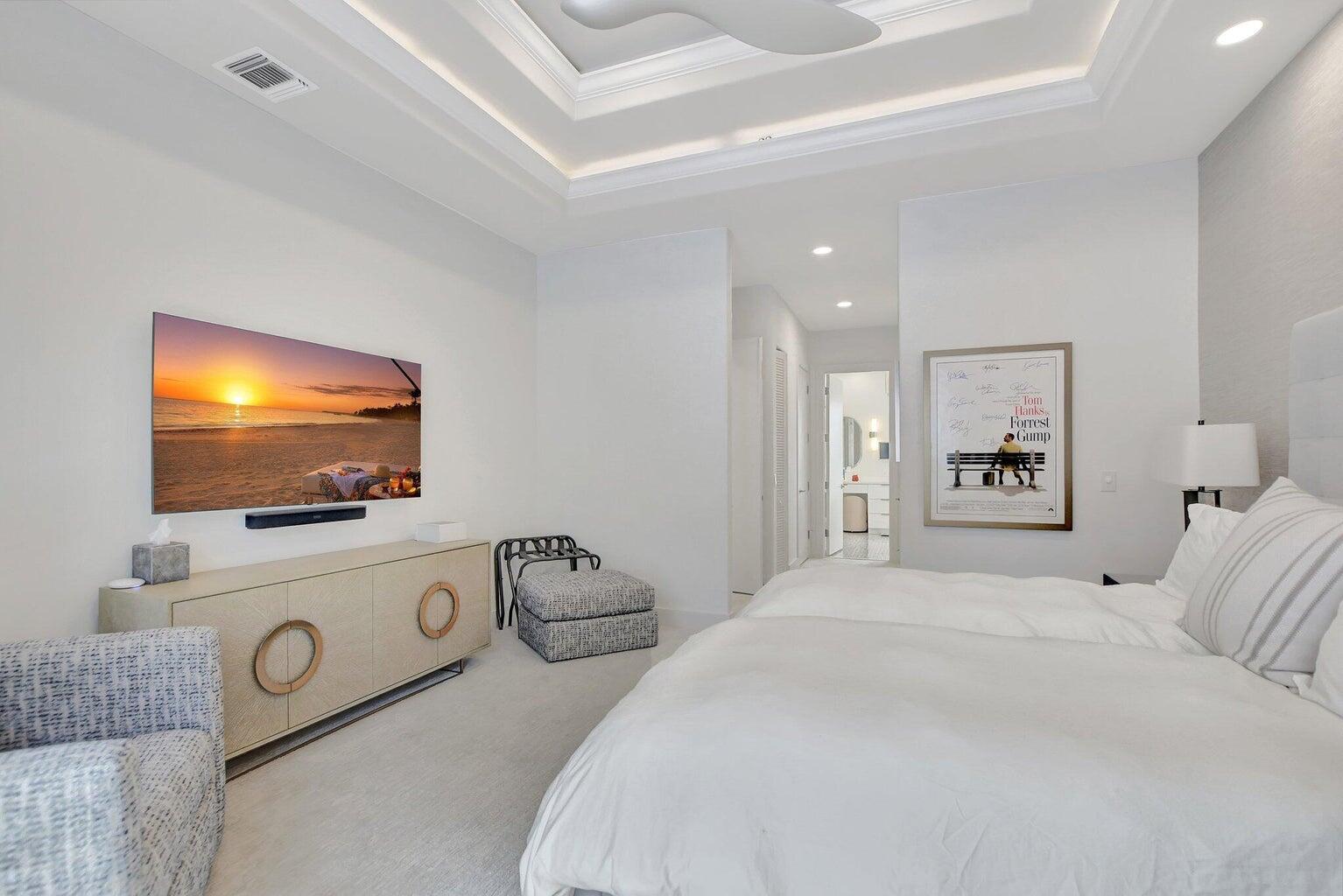Best deal in Boca Grove - A Move-In-Ready 5-Bedroom, 5-Bathroom Courtyard Home in subsection Islands of the Grove. This beautifully maintained residence offers the ultimate in privacy and luxury. This home features a spacious layout with a private pool and spa, complemented by summer kitchen--ideal for outdoor entertaining. Enjoy stunning lake views from the expansive deck, providing a serene setting for relaxation. The home includes a full guest house adjacent to the courtyard, perfect for accommodating guests or creating an independent living space for a teen or in-laws. Upon entering the main house, you're welcomed by a grand living room with soaring ceilings and large windows showcasing picturesque lake views. The formal dining area also enjoys the same breathtaking vistas, creating a