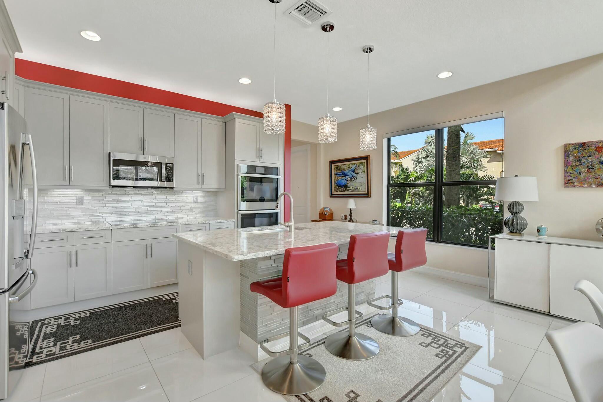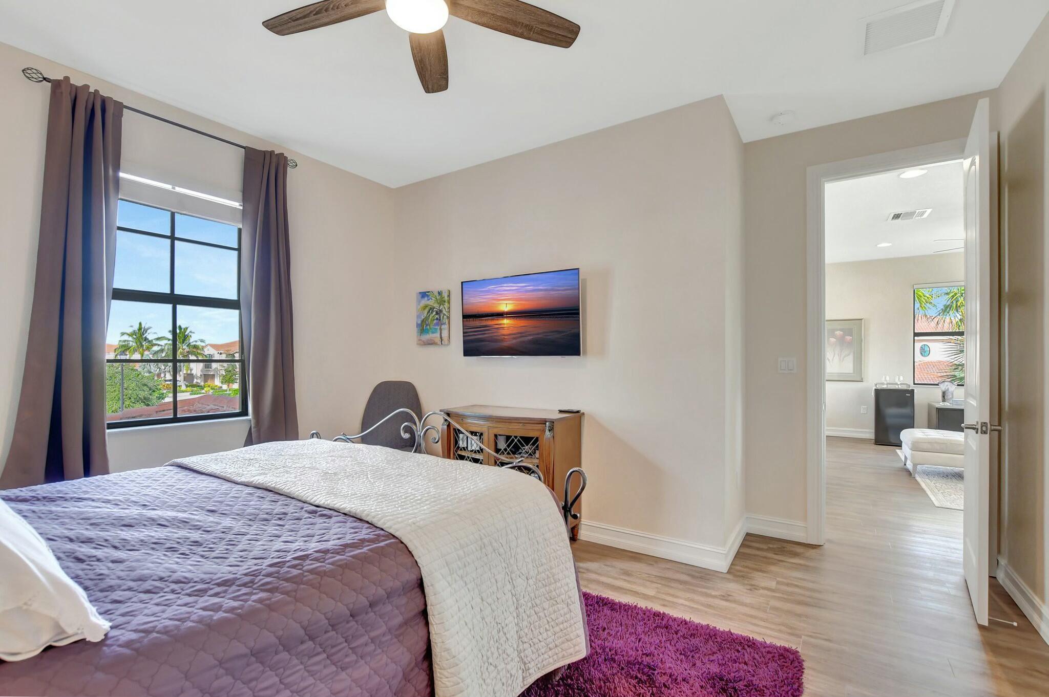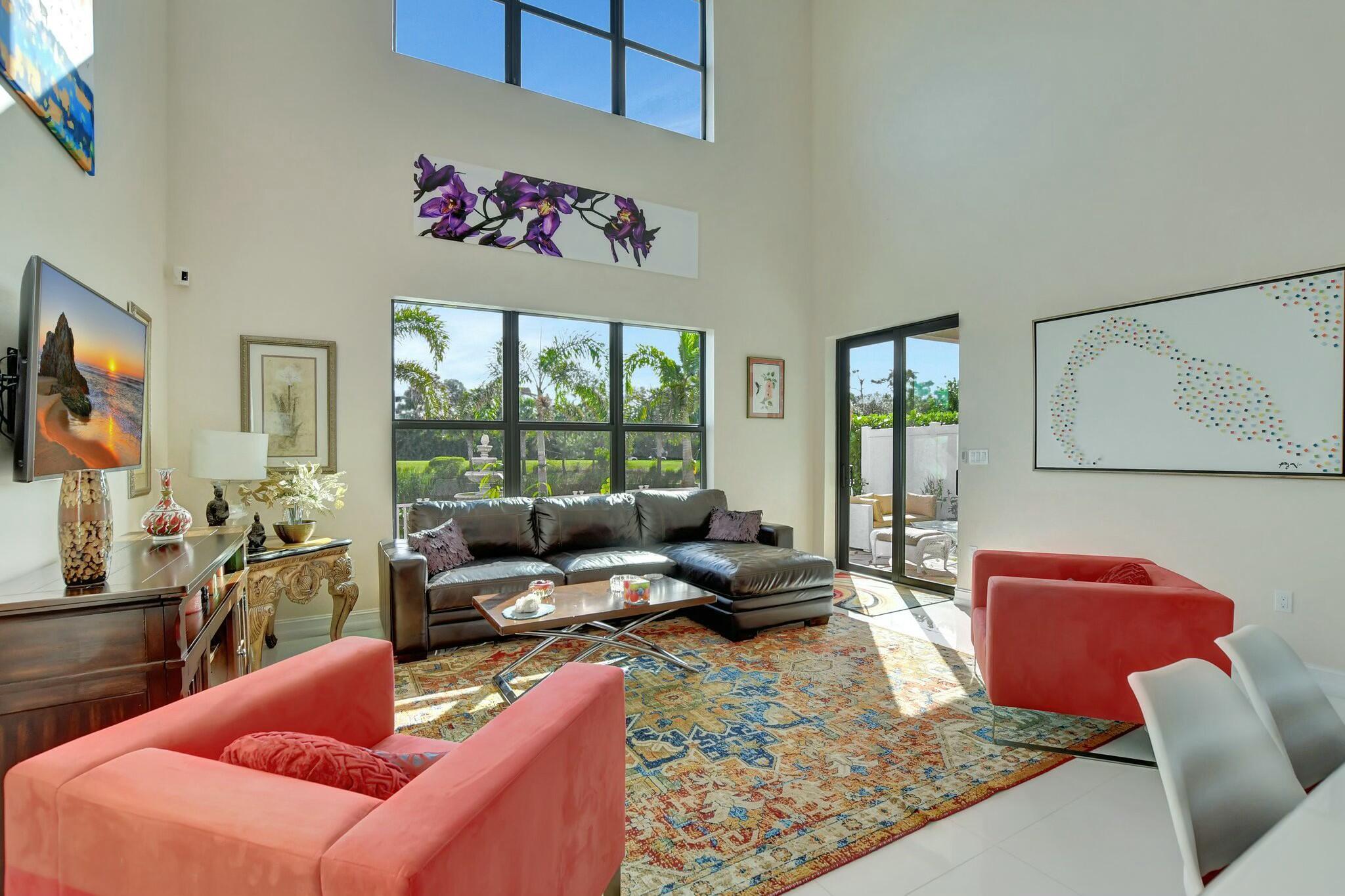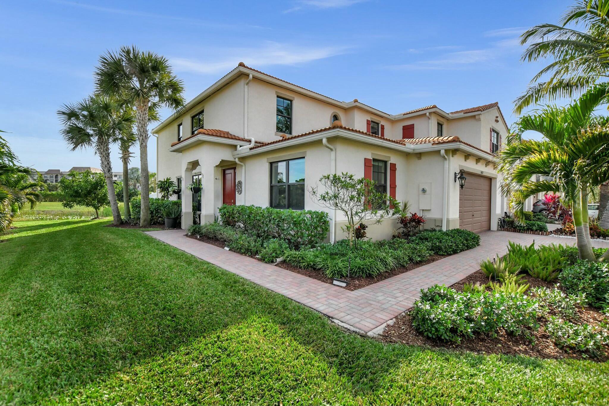 Stunning newer construction townhome ''end unit'' located in The Enclave at Boca Dunes!! Featuring tranquil golf & water views-surrounded by numerous tropical palms. Offered is the highly sought after Calista model with a 1st FLOOR MASTER for privacy and convenience. The open, spacious floor plan boasts high ceilings, three bedrooms, three full baths, and a half bath. The first-floor den can serve as an office or dining room, while a huge loft space provides ample room for lounging and entertaining. Chef's kitchen with quartz center island & DBL wi-fi wall ovens. Modern design includes builder upgrades such as custom flooring, lighting and window treatments. This exceptional property combines luxury living with the beauty of the surrounding tropical landscape, making it a perfect retreat