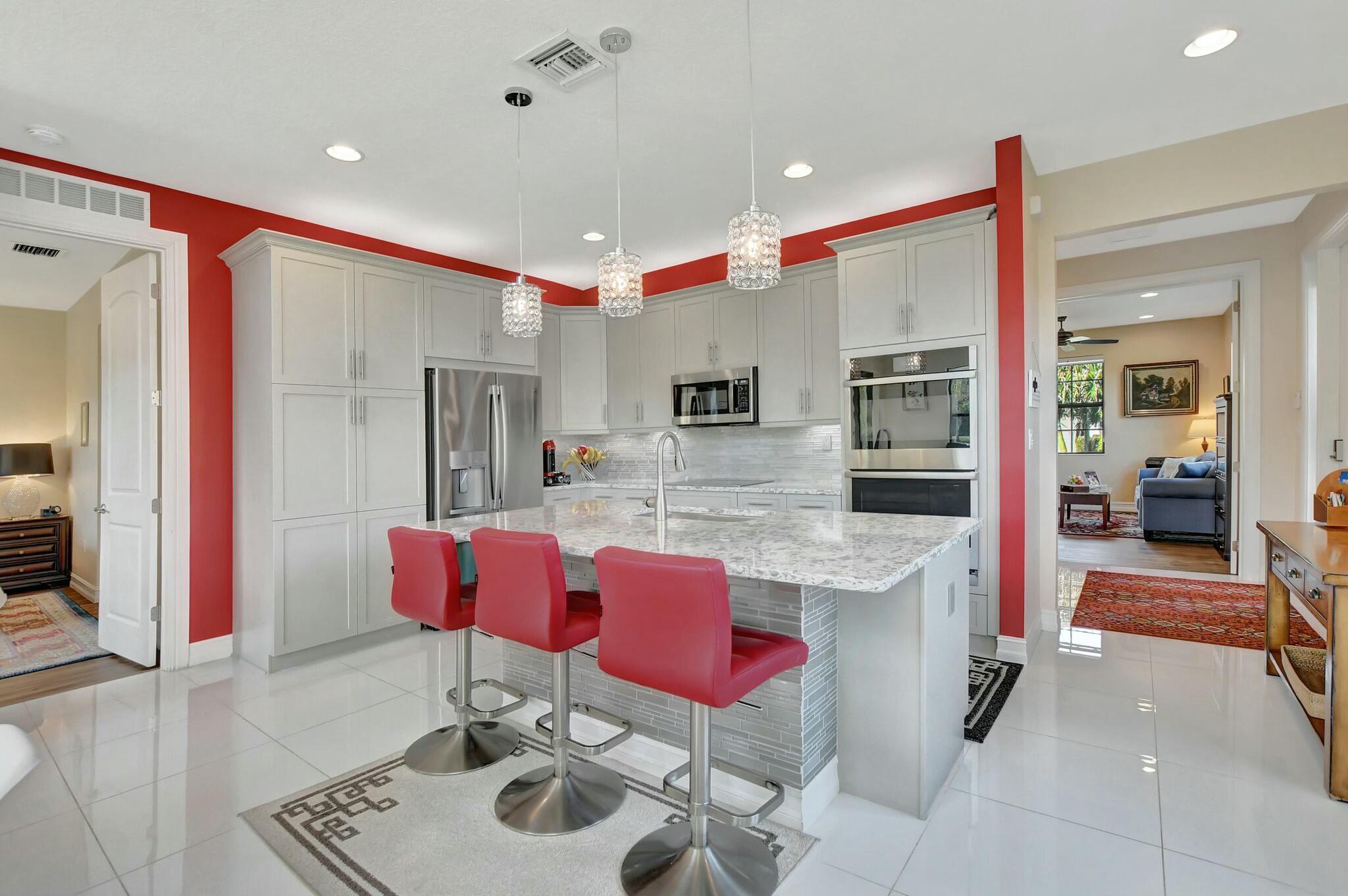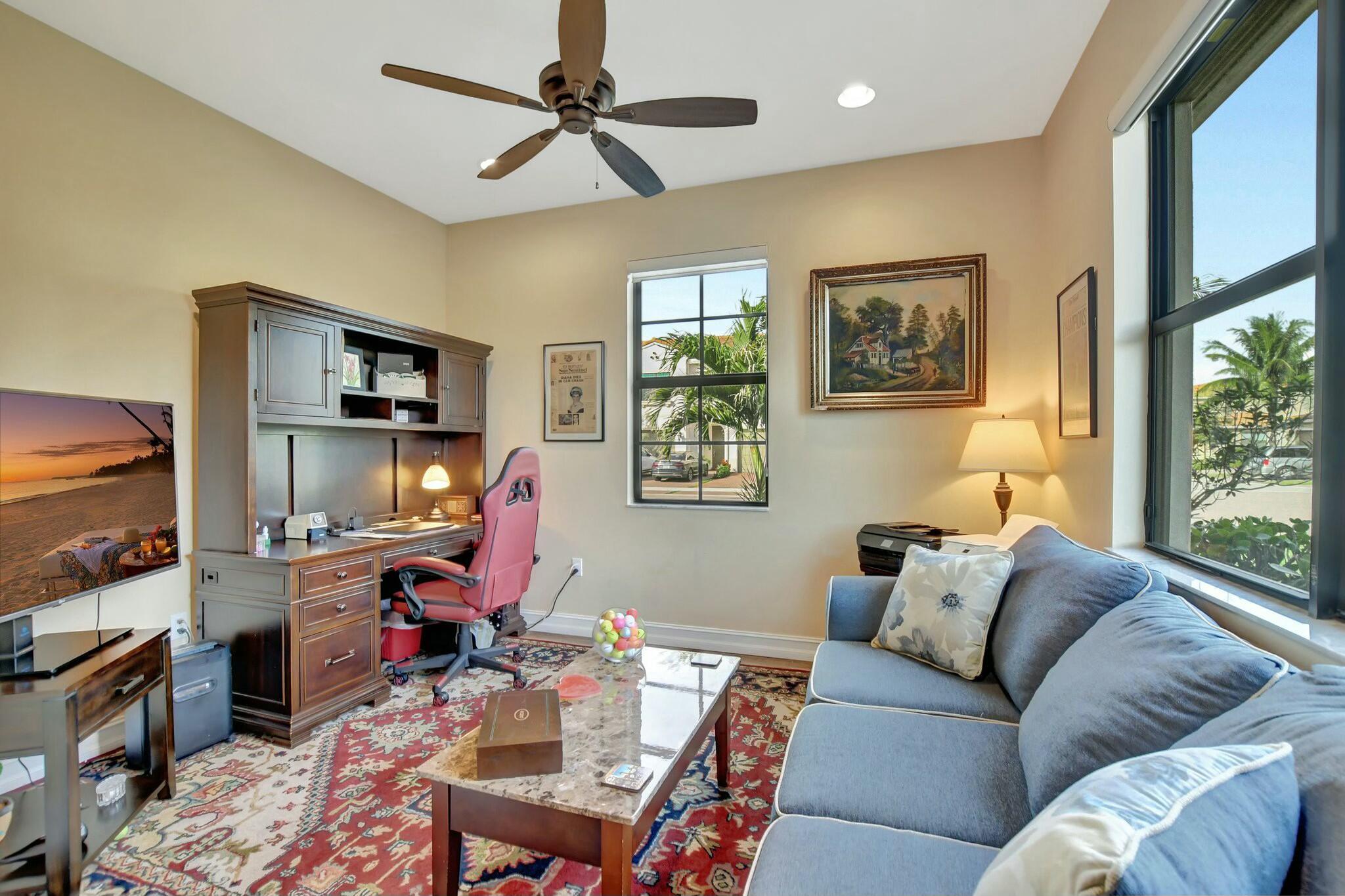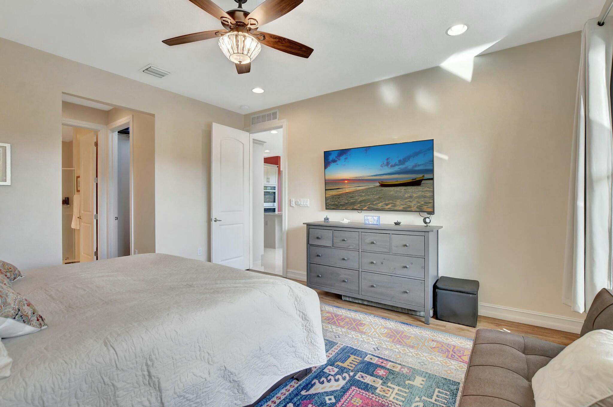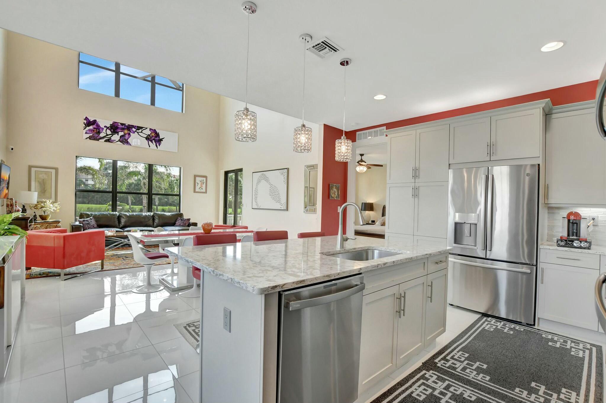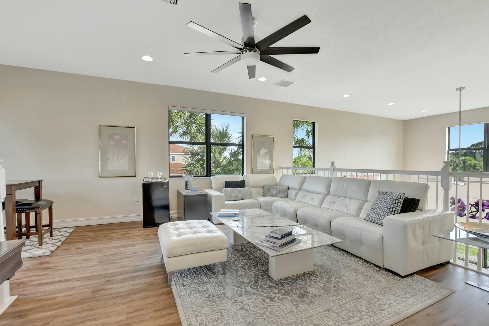 Stunning newer construction townhome ''end unit'' located in The Enclave at Boca Dunes!! Featuring tranquil golf & water views-surrounded by numerous tropical palms. Offered is the highly sought after Calista model with a 1st FLOOR MASTER for privacy and convenience. The open, spacious floor plan boasts high ceilings, three bedrooms, three full baths, and a half bath. The first-floor den can serve as an office or dining room, while a huge loft space provides ample room for lounging and entertaining. Chef's kitchen with quartz center island & DBL wi-fi wall ovens. Modern design includes builder upgrades such as custom flooring, lighting and window treatments. This exceptional property combines luxury living with the beauty of the surrounding tropical landscape, making it a perfect retreat