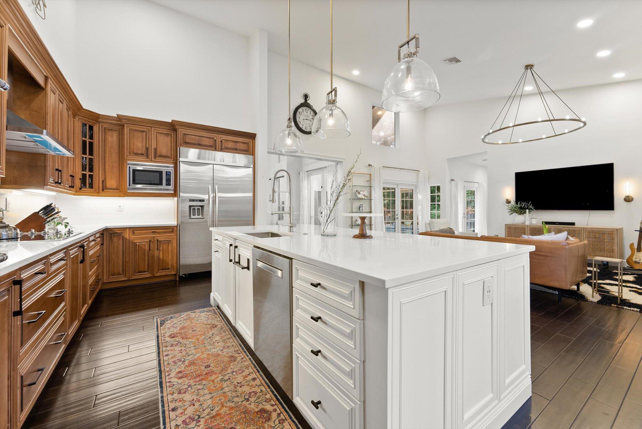 Welcome to your dream home at 4563 NW 26th Ave, Boca Raton, FL, where elegance meets comfort in this exquisite single-family residence in the Colonnade. Spanning nearly 3,000 square feet, this stunning designer property boasts four spacious bedrooms and three and a half luxurious bathrooms, offering ample space for relaxation and entertainment.Step inside to discover soaring 20 foot ceilings that create an airy and open ambiance, complemented by the warm glow of chandeliers and recessed lighting. The hardwood floors add a touch of sophistication, seamlessly connecting each room. The bathrooms are designed for ultimate convenience and style, featuring separate vanities, double sinks, and a bidet.The heart of this home is its inviting living spaces, perfect for both intimate