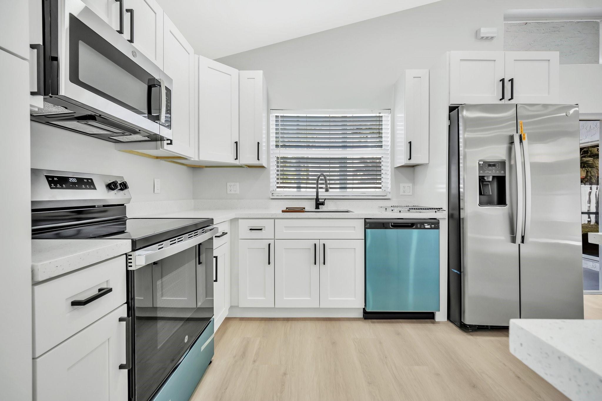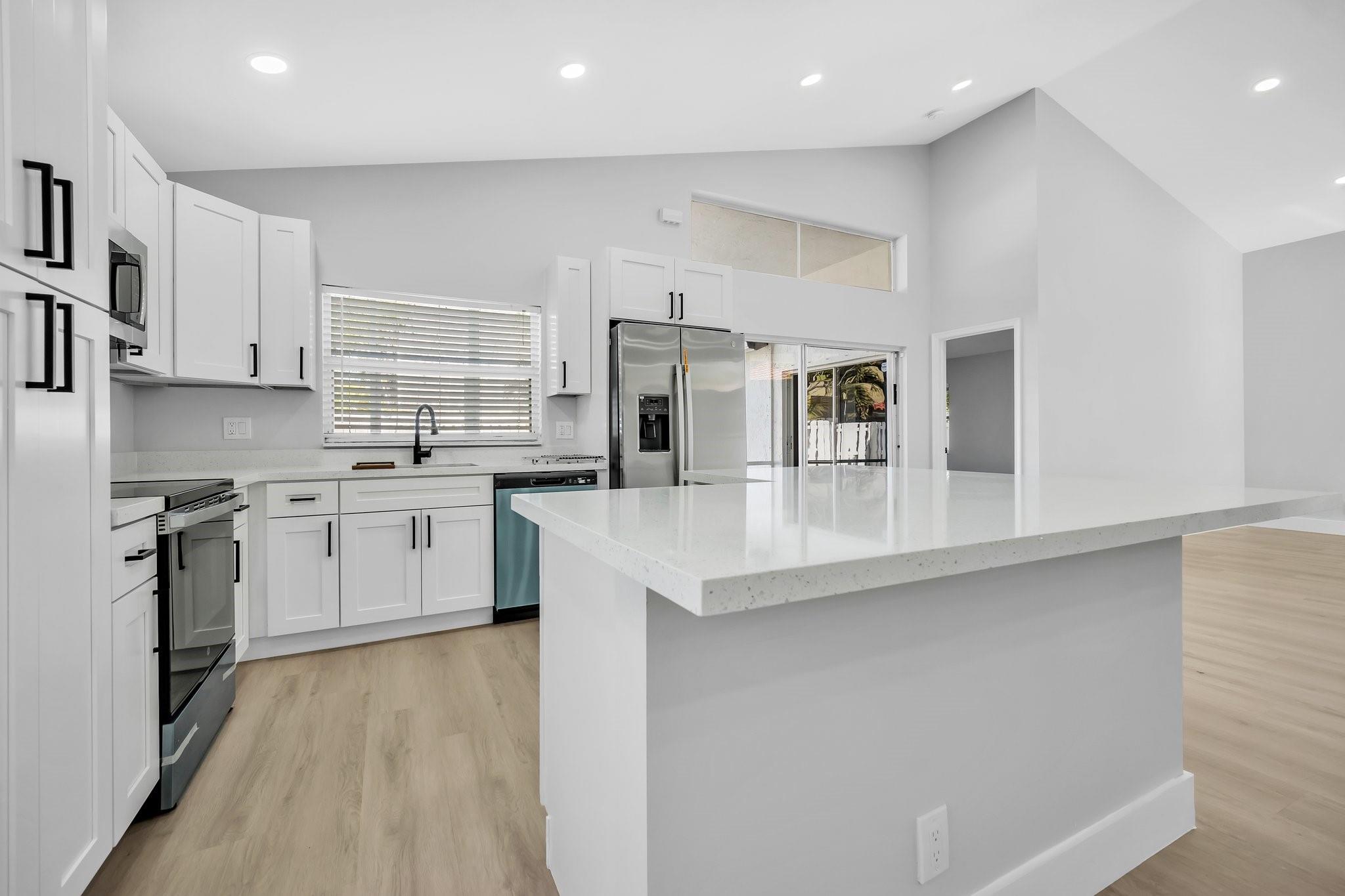 A spectacular 3 bedrooms 2 bathrooms single family home in a desirable gated community of North Lakes, in Weston, Florida, surrounded by A+ schools, multiple parks, and shopping areas. State of the art open floor plan kitchen that integrates the living room and dining room, with brand new kitchen cabinets, quartz countertop, and stainless steel appliances. The modern bathtub and the frameless glass shower doors brings a new touch to this amazing master bathroom. This property is a MUST SEE in person and it won't last in the market.