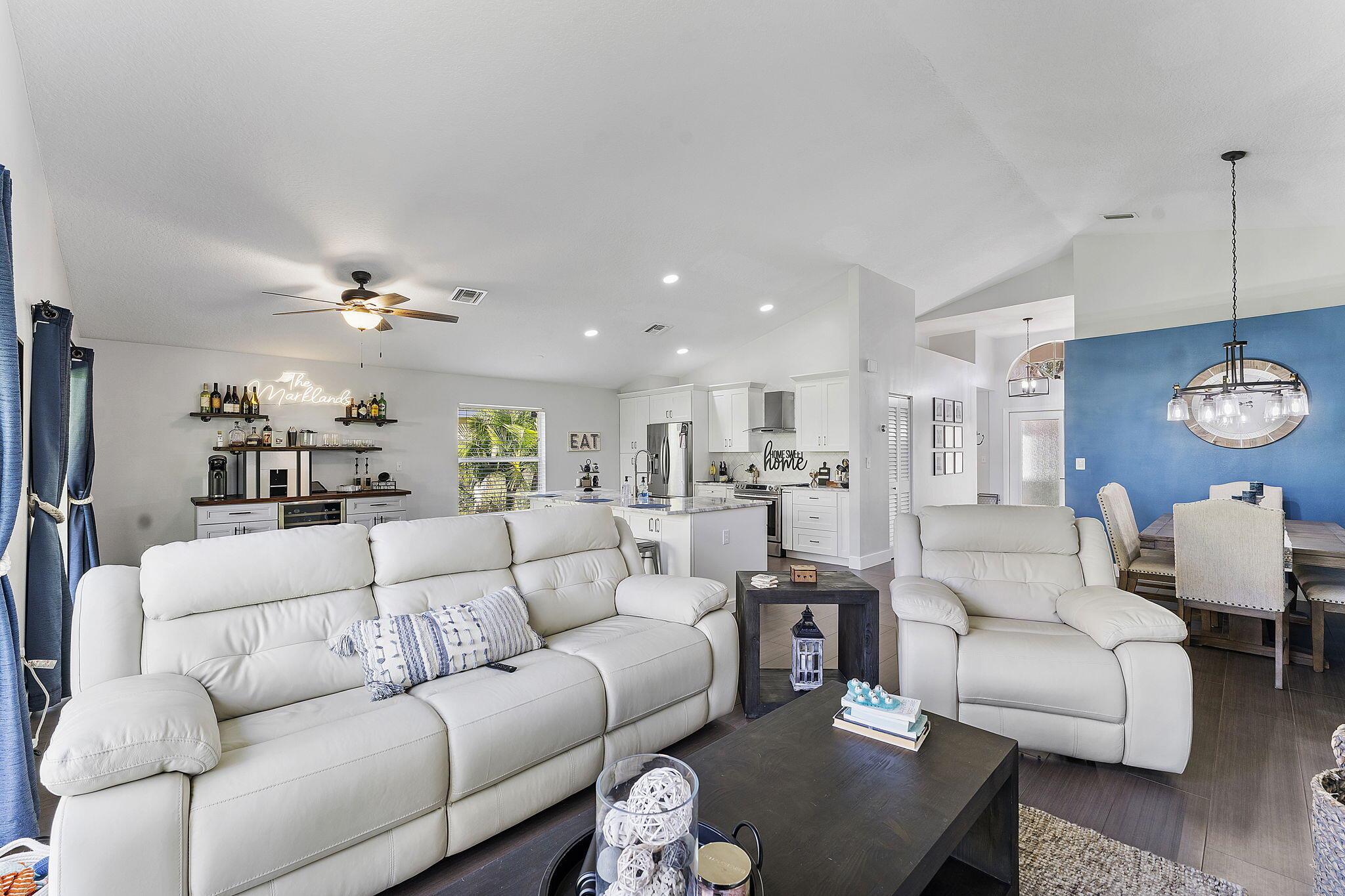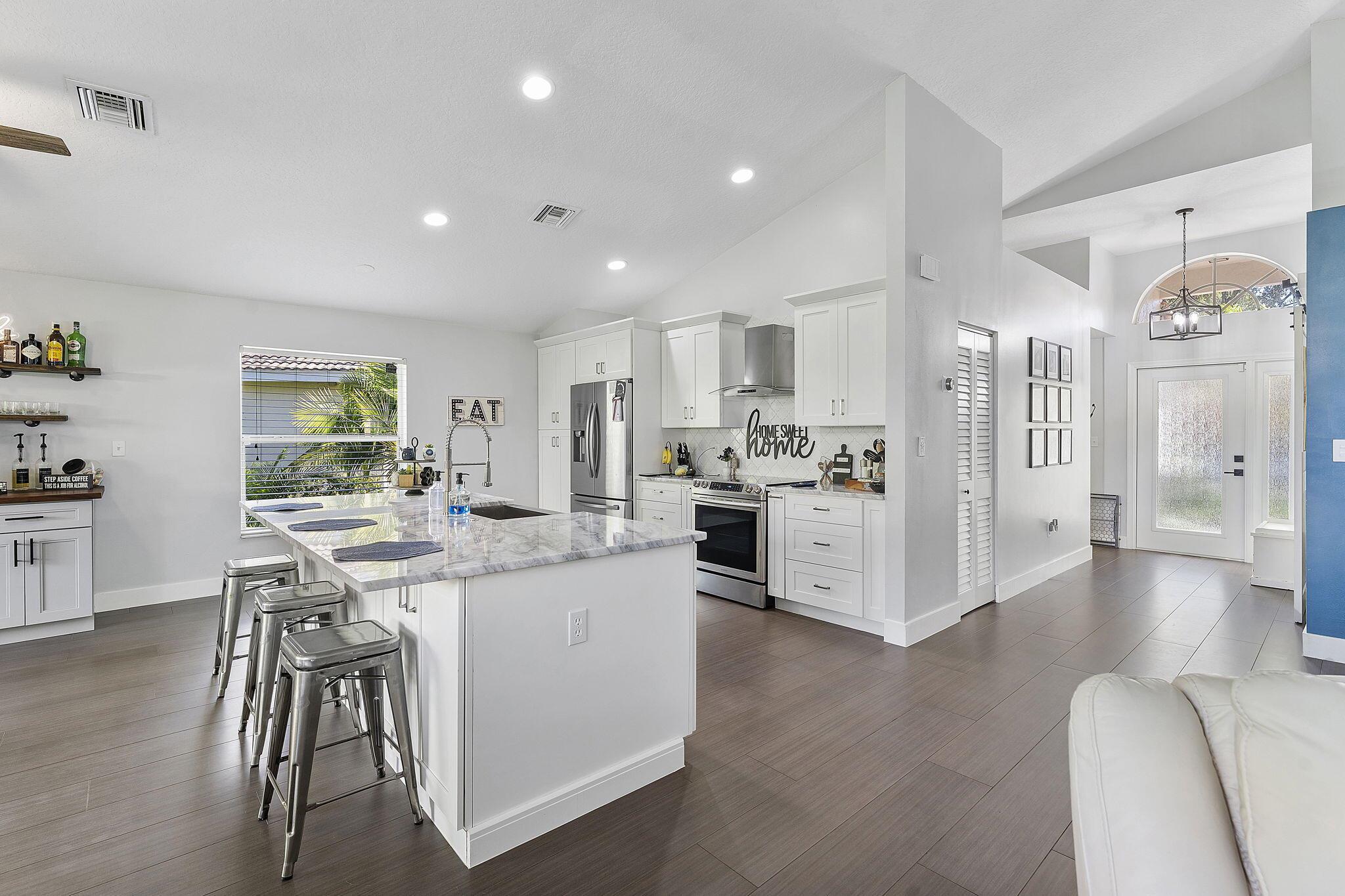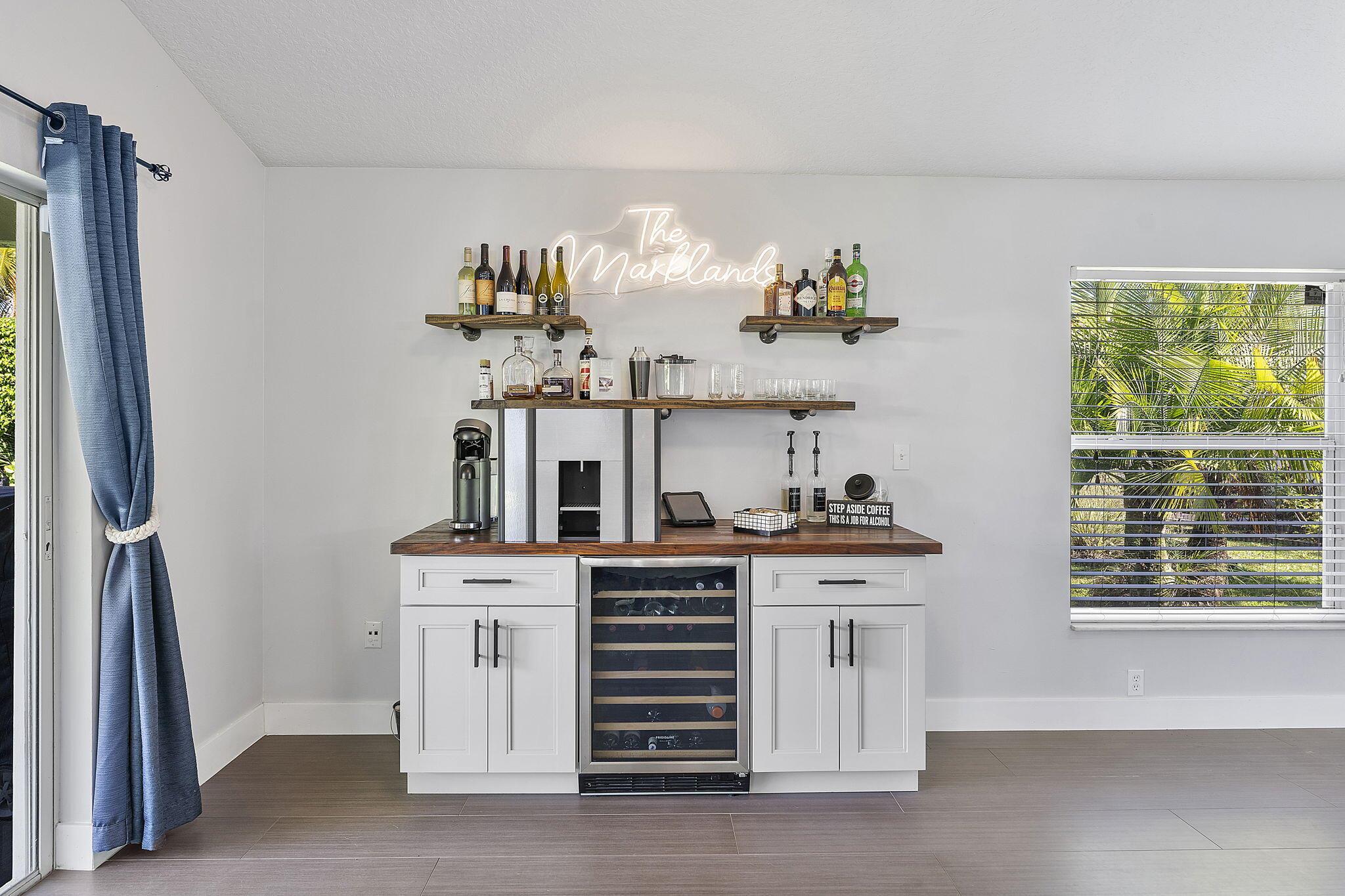 Nestled in the highly desirable Arbors community, this beautifully renovated home is move-in ready with extensive modern upgrades throughout. The A/C unit was replaced in 2024 ensuring year round comfort, the water heater is 2023 and a new roof in 2019 for long-term peace of mind. The home features a stunningly remodeled kitchen with all new stainless steel appliances, sleek quartz countertops, and elegant shaker-style cabinets. Both bathrooms have been completely renovated with contemporary finishes. A hurricane impact garage and front door provide added security. The garage is equipped with a split A/C unit, making it a perfect space for a workspace or gym. For those who love to entertain a newly added built-in-bar with a wine cooler that enhances the Florida lifestyle.