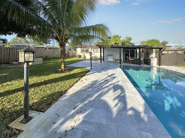 Welcome to your dream home at 960 SW 49th Terrace in Plantation, Florida! This beautifully upgraded 3-bedroom, 2-bathroom property boasts a brand-new metal roof, renovated bathrooms, and modern flooring. The stunning outdoor space features a secluded, oasis-style pool, spacious patio, and outdoor kitchen--perfect for entertaining. Enjoy peace of mind with impact windows, a whole-home generator, tankless water heater, and updated electrical. The home includes an additional outdoor bathroom and a new shed. Best of all, no HOA! Make this private paradise yours today!