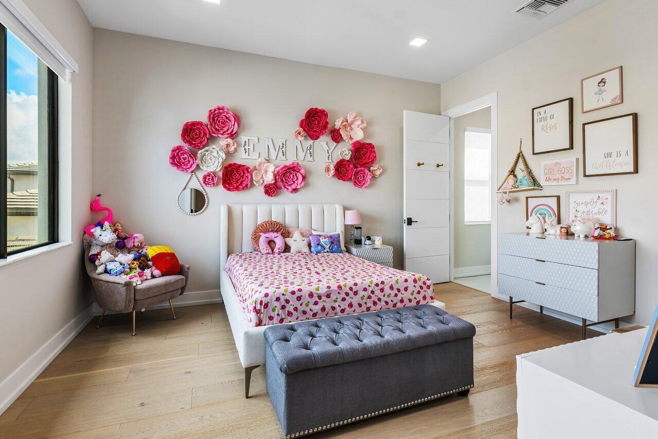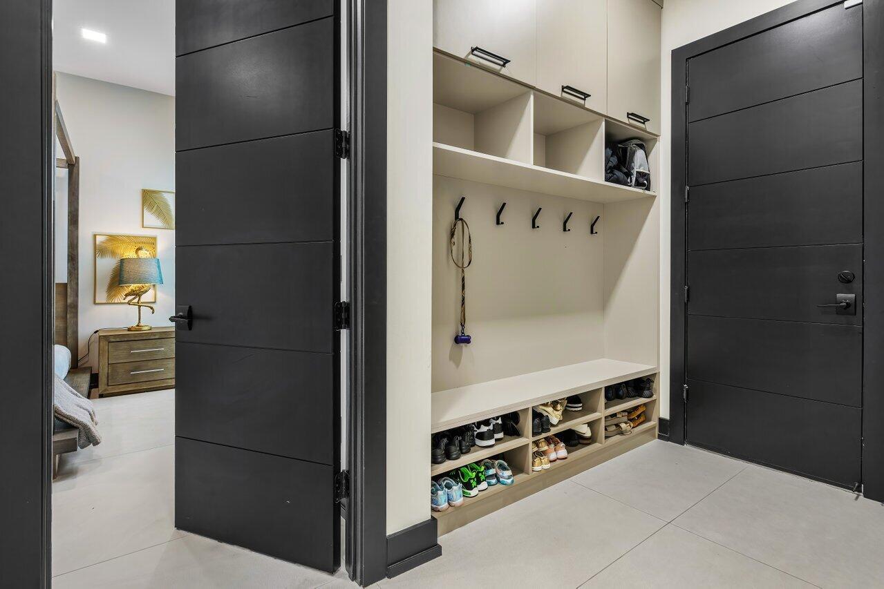 Discover unrivaled opulence in this extensively upgraded and custom Palma Model, offering 5,782+/- SF of thoughtfully designed living space. Nestled within the prestigious, family-centric enclave of Boca Bridges, this south-facing waterfront estate showcases custom enhancements and panoramic water views, embodying refined sophistication and timeless allure.Upon entering, you are immediately struck by the exquisite bespoke woodwork that spans from the soaring ceilings of the second floor to the first, setting the tone for the home's luxurious atmosphere. The main living room and kitchen boast double-height ceilings, perfectly complemented by LED Cove lighting, creating a stunning, a
