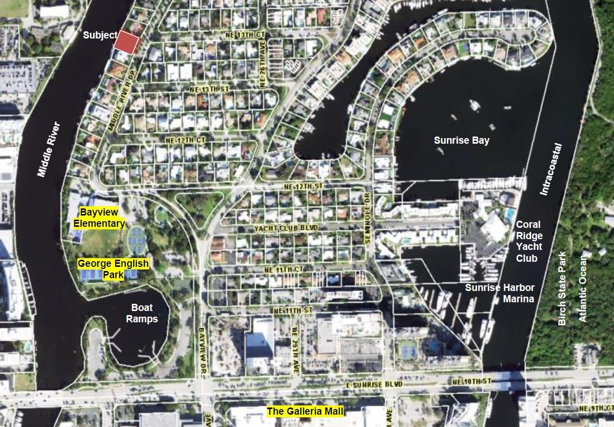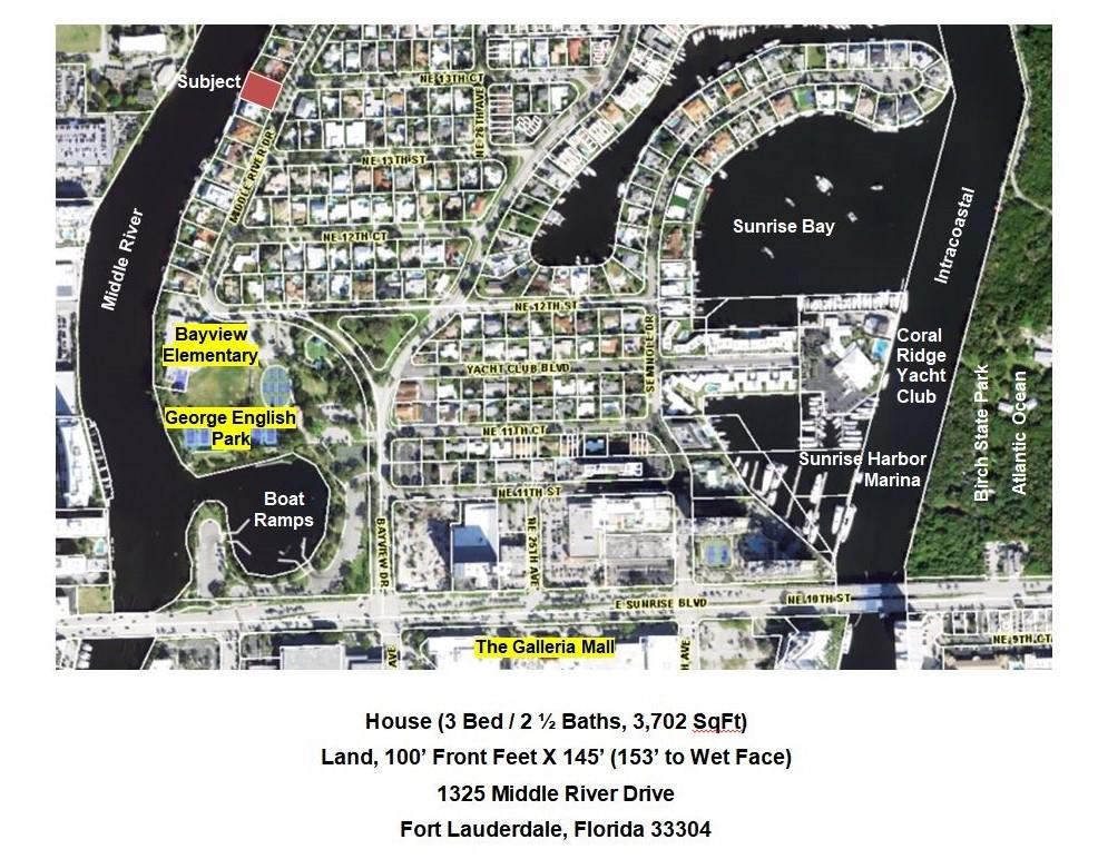MIDDLE RIVER WATERFRONT. 100' X 145', 14,500 Square Foot Lot on 260' width of Middle River. Ocean access, subject to Sunrise bridge. Build your dream estate or remodel existing home that needs major renovations. Bayview School District. AS IS with no repairs. See survey and aerial photos attached. See 360 view in virtual tour.