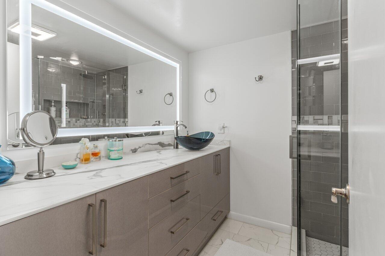 Welcome to your new home, meticulously maintained home, where pride of ownership is evident from the moment you arrive. Designed for both style and functionality, this home features an updated kitchen with solid wood cabinetry, stainless steel appliances, and elegant granite countertops. The ceramic and porcelain tile flooring ensures durability and easy maintenance. Recent upgrades include a brand-new A/C and water heater (2023) and a roof replacement in 2017, providing peace of mind. The guest and half bathrooms have been completely updated, while the primary suite boasts a custom walk-in closet and a luxuriously renovated ensuite bath with marble floors. The second bedroom is equally impressive, featuring California Closets and a private walk-out balcony.