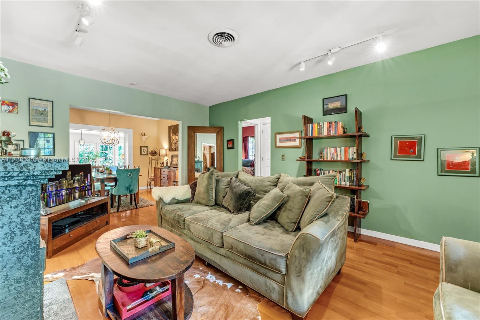 Welcome to Utopia! Nestled on a quiet, tree-lined street in sought-after South Grove. Light-filled living spaces feature hardwood floors, a beautiful fireplace, and elegant formal living & dining rooms. The updated kitchen boasts quartz countertops, wood cabinetry, and new appliances, including a wine fridge! With 3 bedrooms & 2 bathrooms, this home blends modern updates with timeless charm and offers potential to expand. French doors open to a lush, ultra-private garden oasis with a tree-canopied deck and brick patio. Fantastic location near top-rated schools, Michelin-star restaurants, shopping, Coral Gables & South Miami, a true Grove gem! Living area actual is 1,610 as per property appraiser