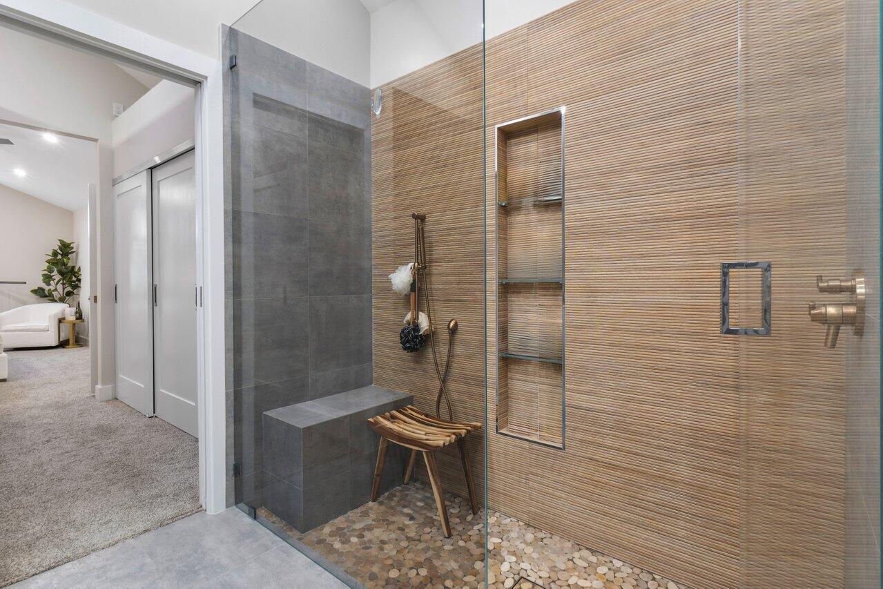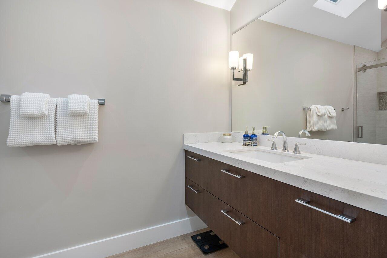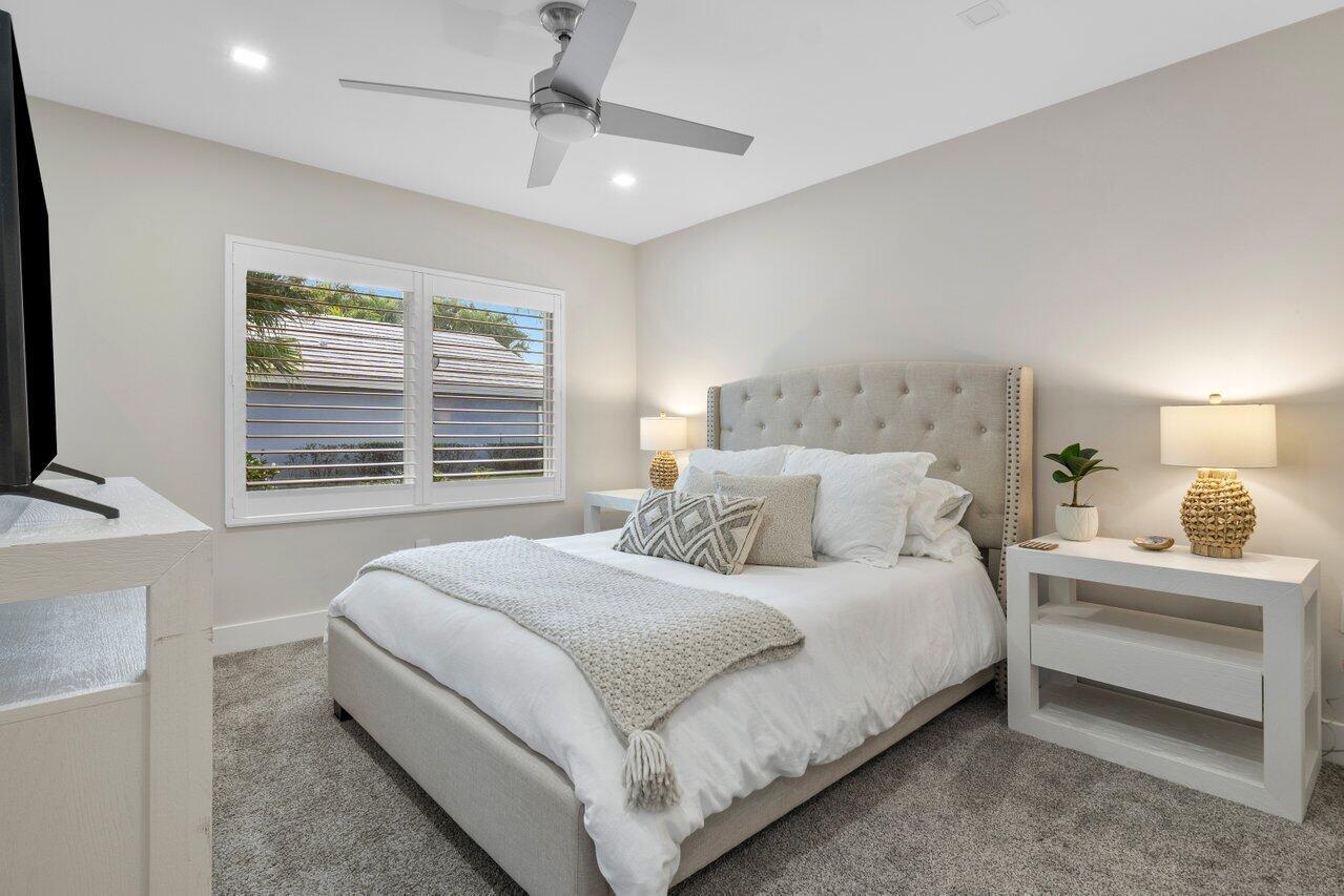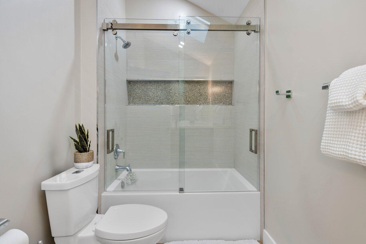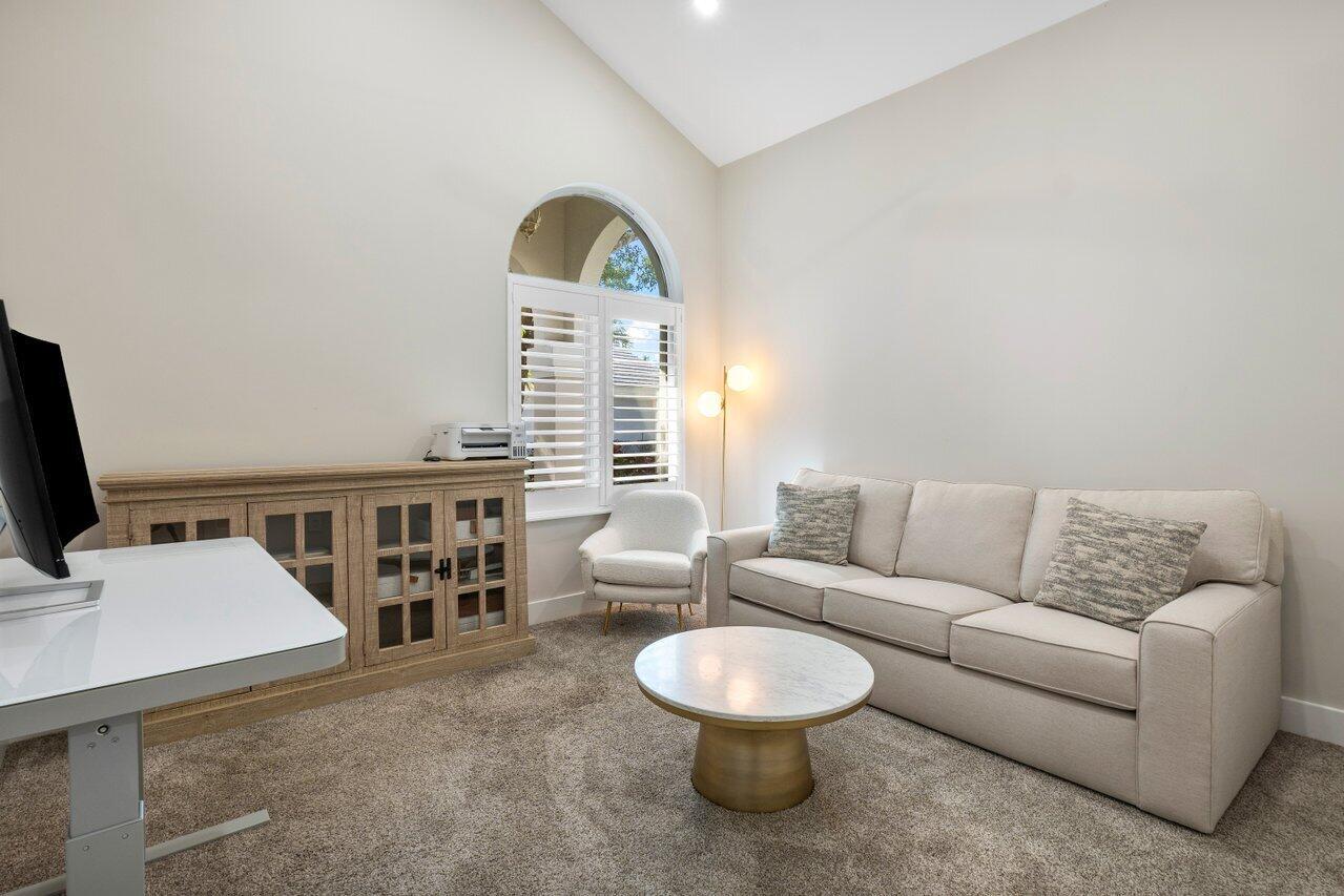 This stunning, fully renovated Saratoga model home is the largest floor plan in Bear Island, offering an impressive 2,271 square feet of living space. No detail has been overlooked in the extensive upgrades, which include impact windows and doors (including the garage door), luxurious 8-inch porcelain wood-plank flooring, solid wood interior doors, sleek square LED recessed lighting, and elegant plantation shutters throughout. The custom-built wall unit in the living room is a standout feature, adding both style and functionality. The chef's kitchen is a masterpiece, featuring high-end, soft-close cabinetry, quartz countertops, and top-of-the-line Bosch and Electrolux appliances. The seamless transition from the living room to the Florida room is made possible by custom glass door