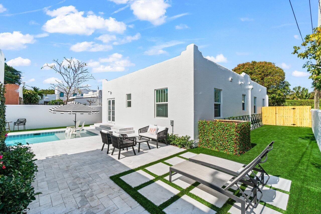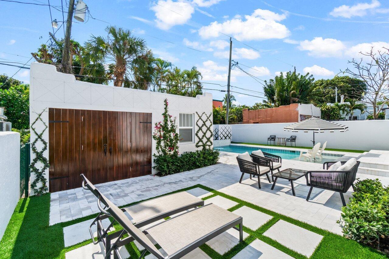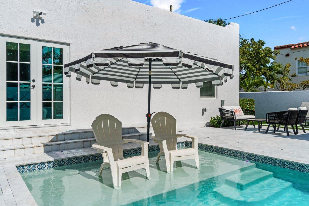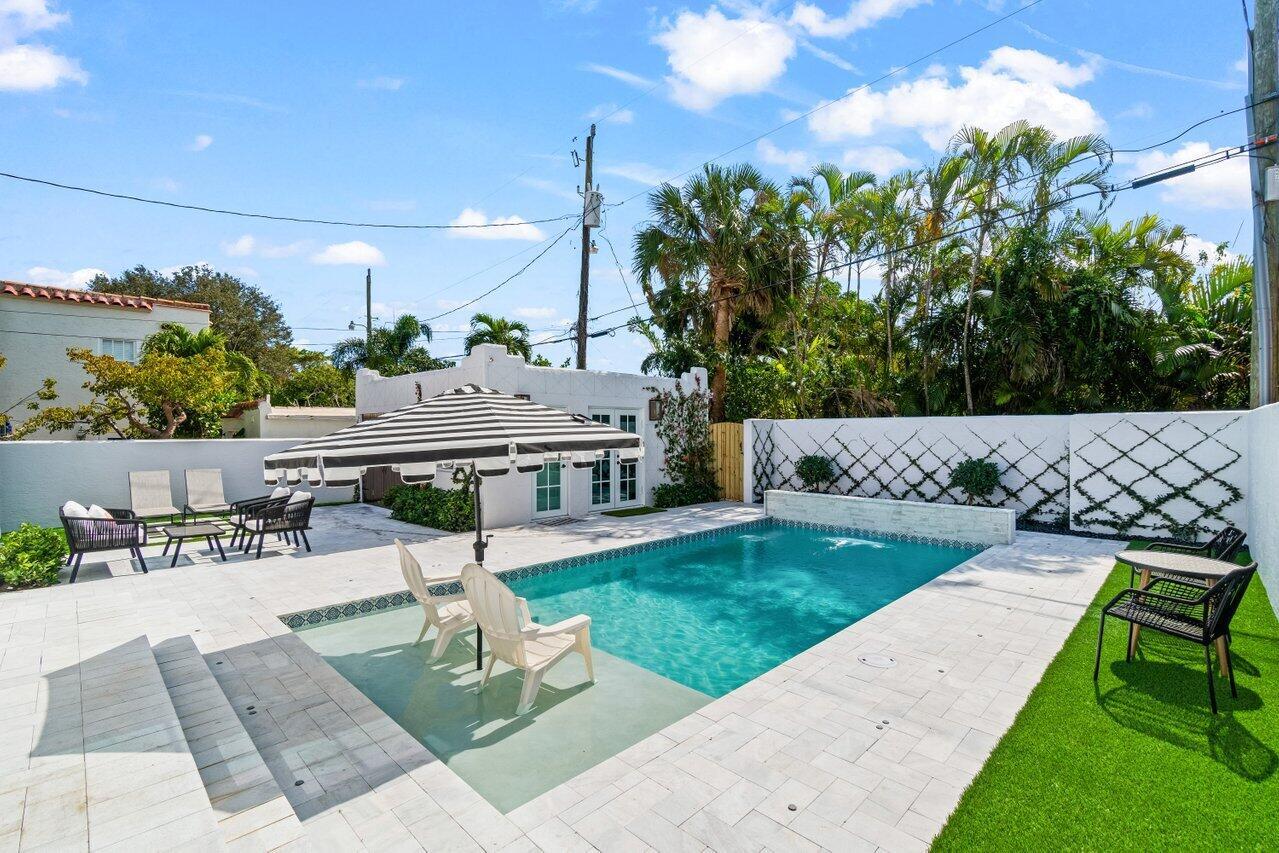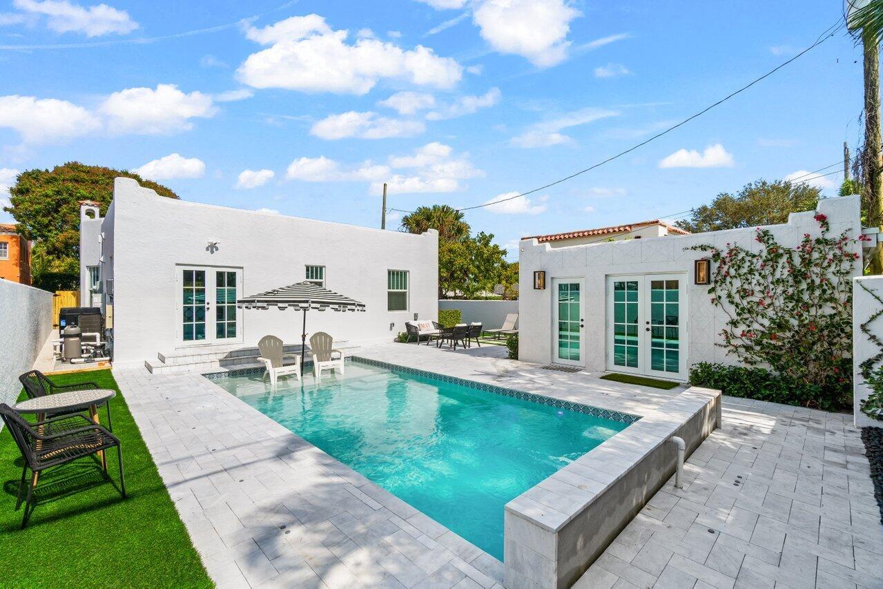 Welcome to this stunningly renovated 2-bedroom, 2-bathroom home with a heated pool and separate guest house, located in the heart of West Palm Beach's highly sought-after Flamingo Park. Blending historic charm with modern luxury, this residence has been thoughtfully updated while maintaining its timeless appeal.Inside, you'll find original wood floors and classic hollow tile construction, complemented by new impact windows and doors, a brand-new roof, and completely updated plumbing and electric--offering both character and peace of mind. The state-of-the-art kitchen is a chef's dream, featuring GE Monogram appliances, a gas range, and sleek finishes for effortless entertaining.Step outside to your private backyard oasis, where the heated pool invites year-round relaxation.
