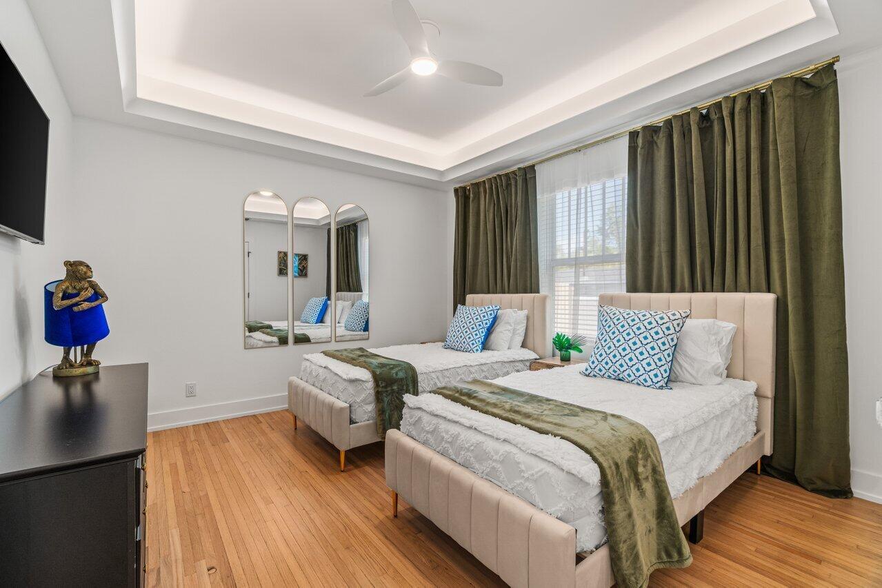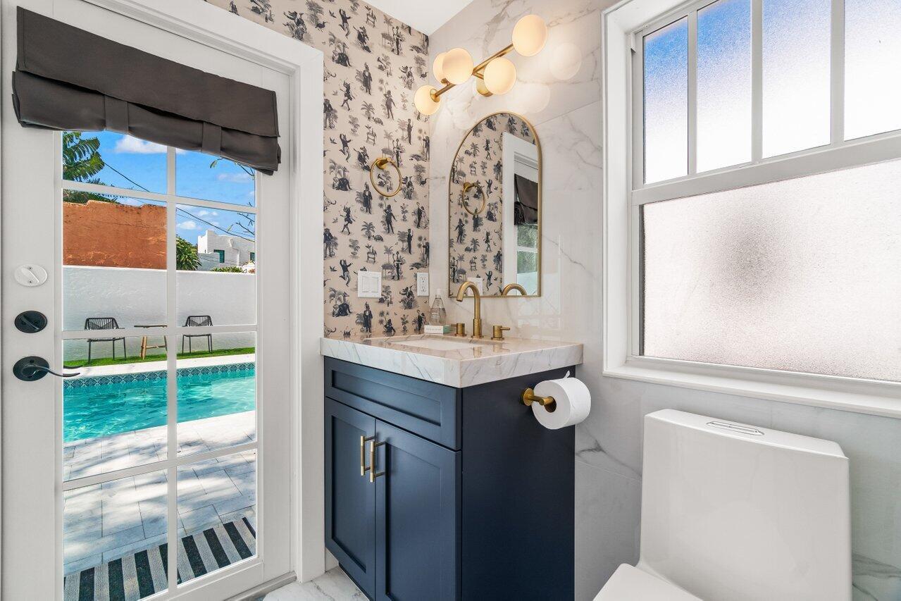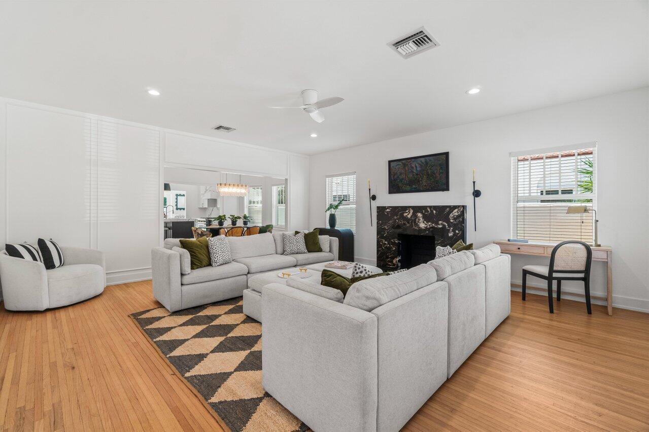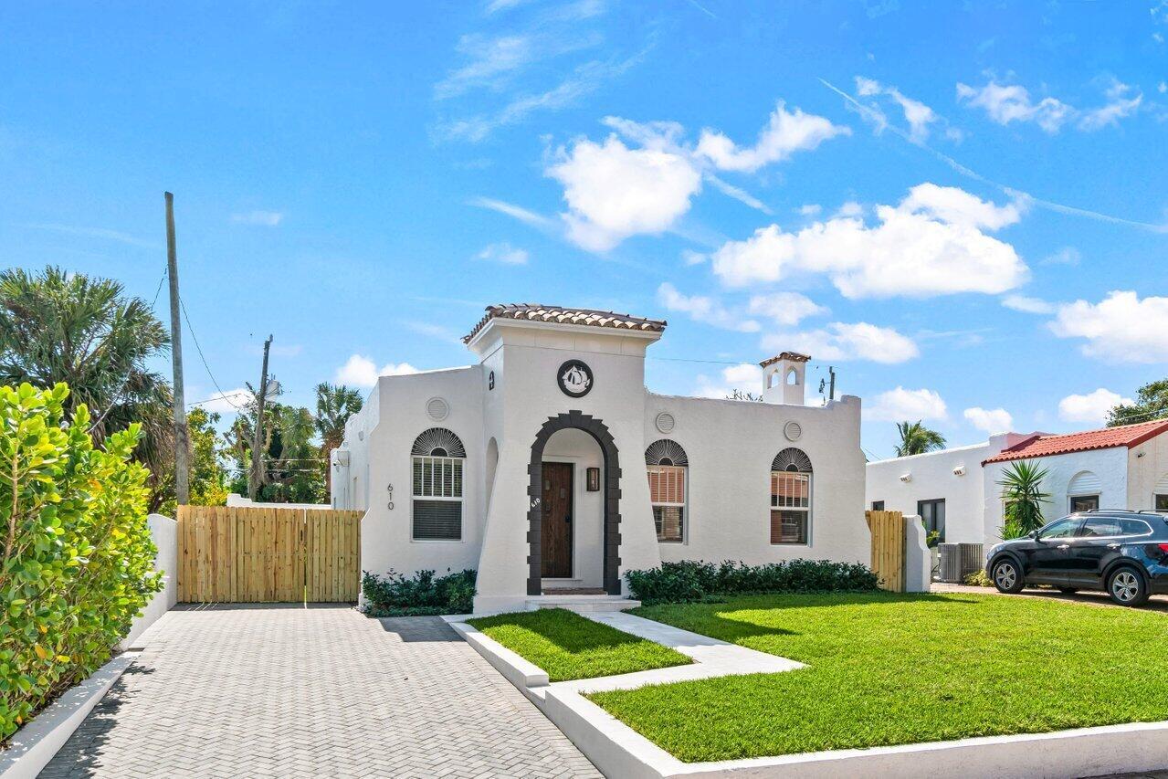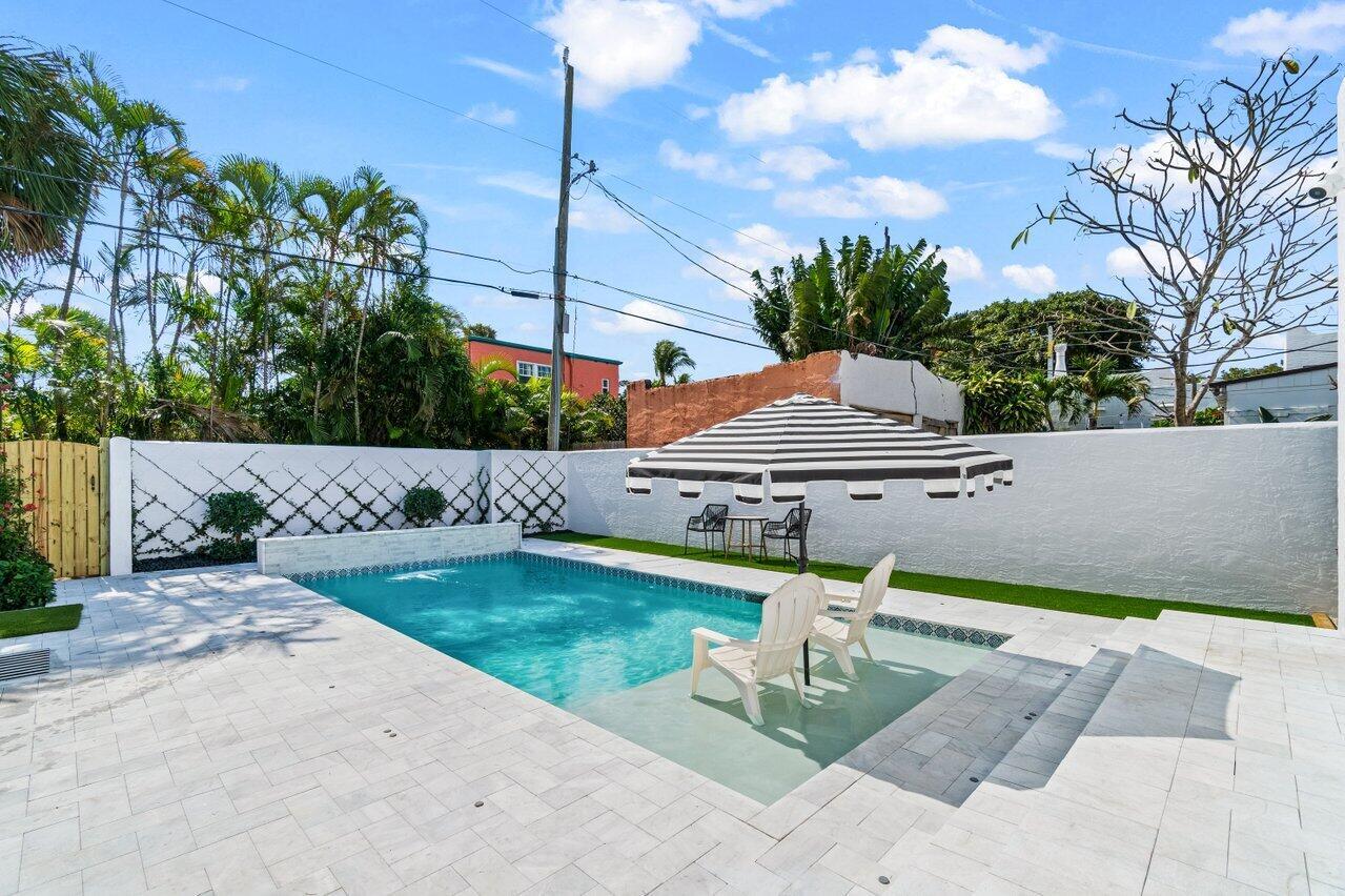 Welcome to this stunningly renovated 2-bedroom, 2-bathroom home with a heated pool and separate guest house, located in the heart of West Palm Beach's highly sought-after Flamingo Park. Blending historic charm with modern luxury, this residence has been thoughtfully updated while maintaining its timeless appeal.Inside, you'll find original wood floors and classic hollow tile construction, complemented by new impact windows and doors, a brand-new roof, and completely updated plumbing and electric--offering both character and peace of mind. The state-of-the-art kitchen is a chef's dream, featuring GE Monogram appliances, a gas range, and sleek finishes for effortless entertaining.Step outside to your private backyard oasis, where the heated pool invites year-round relaxation.