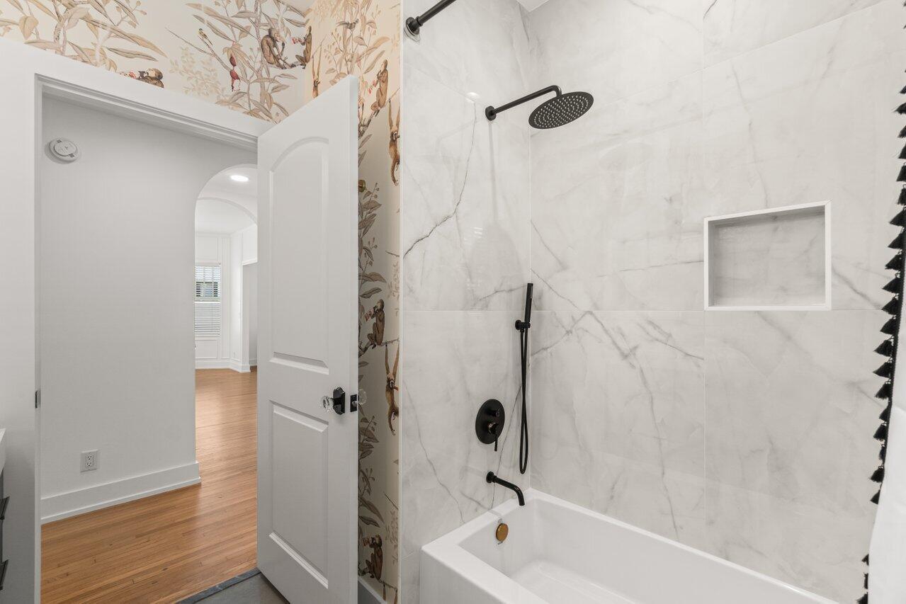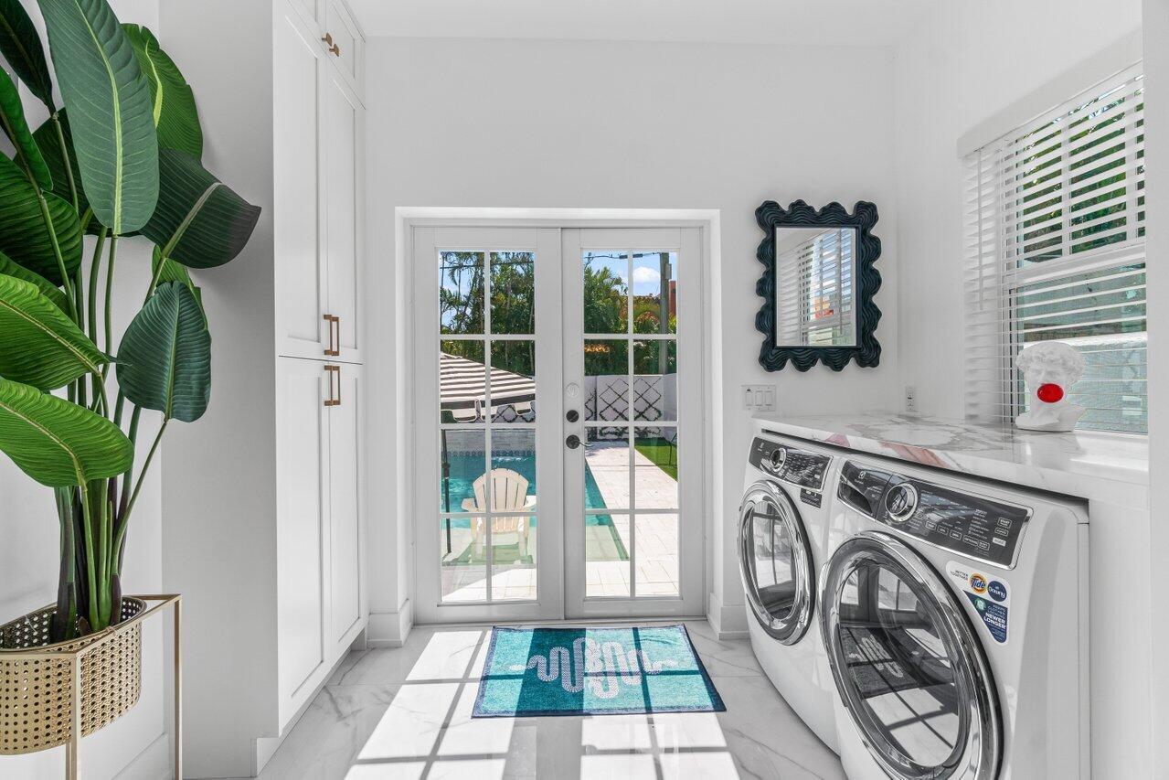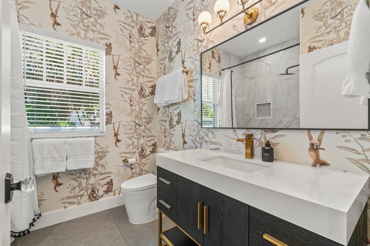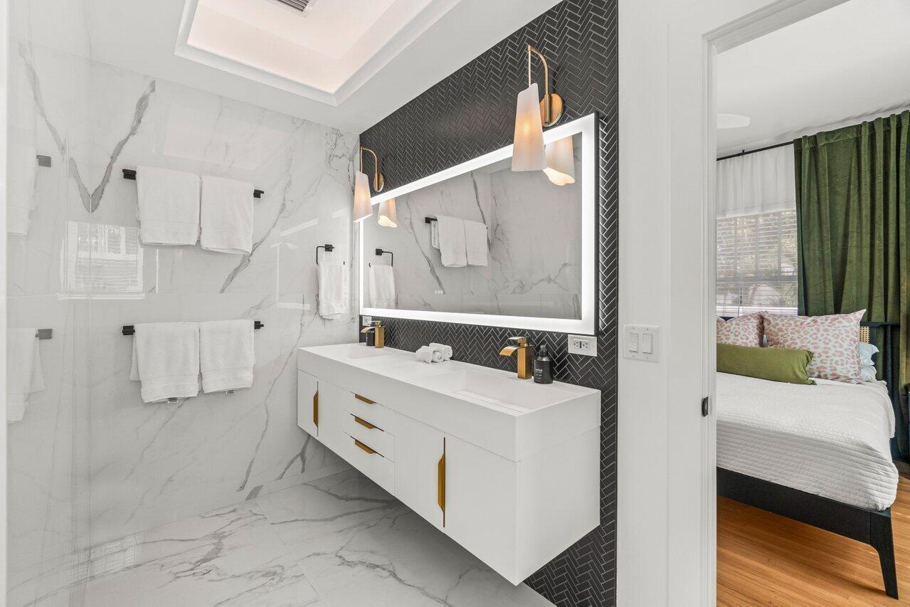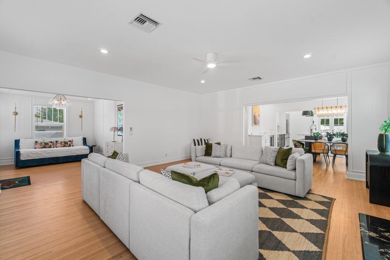 Welcome to this stunningly renovated 2-bedroom, 2-bathroom home with a heated pool and separate guest house, located in the heart of West Palm Beach's highly sought-after Flamingo Park. Blending historic charm with modern luxury, this residence has been thoughtfully updated while maintaining its timeless appeal.Inside, you'll find original wood floors and classic hollow tile construction, complemented by new impact windows and doors, a brand-new roof, and completely updated plumbing and electric--offering both character and peace of mind. The state-of-the-art kitchen is a chef's dream, featuring GE Monogram appliances, a gas range, and sleek finishes for effortless entertaining.Step outside to your private backyard oasis, where the heated pool invites year-round relaxation.