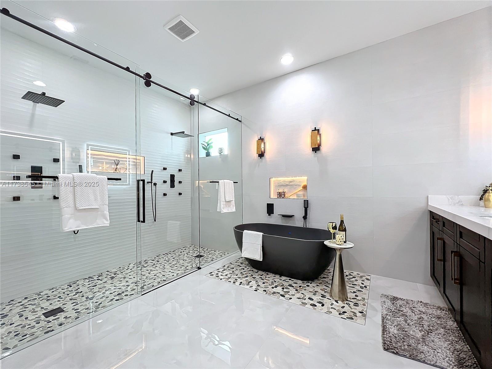 Absolutely beautiful "Estate" home with attached casita on a private waterfront lot. Substantially upgraded thru out and really shows like a builder’s model home. Being sold below owners cost. Absolutely perfect for entertaining family & friends. You must see to appreciate! Enter and immediately feel the warmth and sophistication of the interior that awaits you. Gorgeous large format porcelain tile floors and high ceilings adorned by real wood beams. Truly amazing kitchen will make any cook blush. A huge quartz waterfall island that seats up to six is surrounded by professional grade SS appliances and a 45" workstation sink with dual faucets. Stroll over to spa inspired owners bath. You're graced with a large rain heads shower and a separate solid stone fs tub for stress free relaxation.
