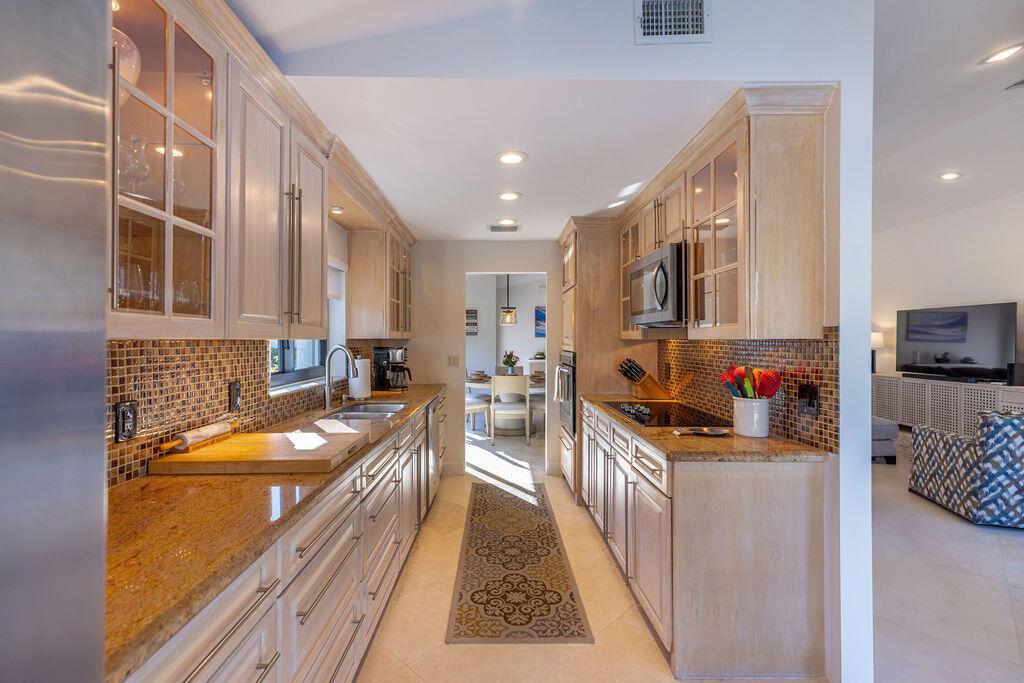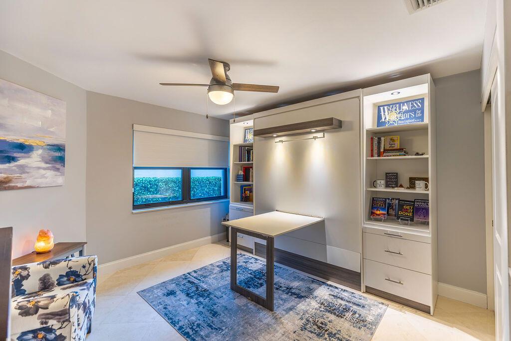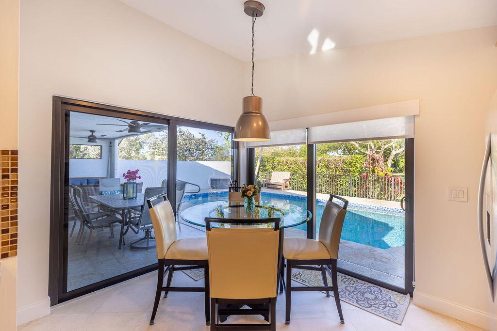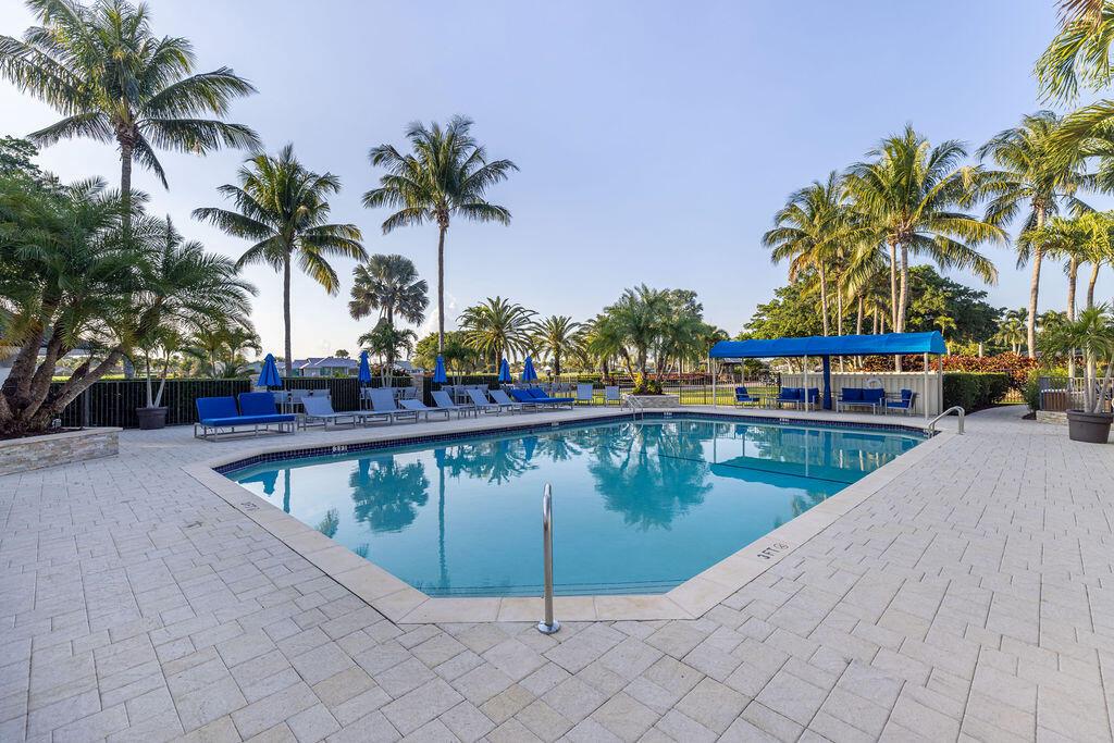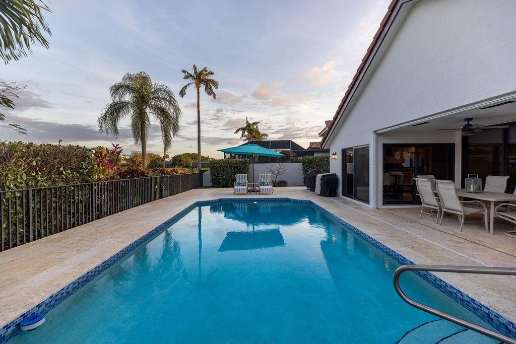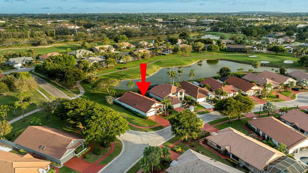 Come see this beautifully updated ranch home in Boca Woods Country Club; one of Palm Beach County's exclusive golf communities. This home was originally a 2 BR & 2BA, that was brilliantly converted to a true 3 BR with a top-of-the-line Murphy bed. This home has beautiful marble floors, a fully updated main bathroom, hurricane impact windows and doors throughout the home, custom shelving in many closets, a new AC unit, plenty of storage, and an in-ground pool. The back patio area is a total oasis with an amazing view of the lake and golf course. The golf cart and outdoor patio furniture come with the home! This will not last, you don't want to miss it!