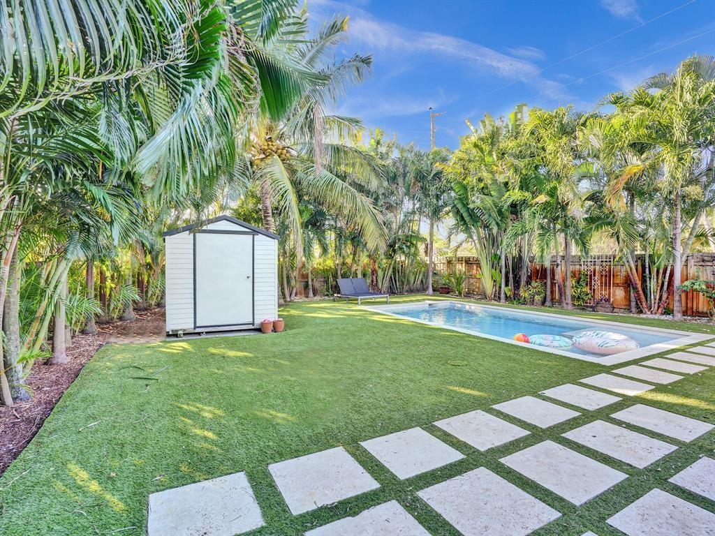 This is a 3-bedroom, 2-bathroom POOL HOME with a tropical oasis in the fenced-in backyard, complete with a hot tub. It features a private covered front patio ideal for entertaining, an updated kitchen with granite countertops, soft-close cabinets, and stainless steel appliances. The bathrooms have been updated, and the home includes porcelain tile throughout. The third bedroom is versatile and can serve as an in-law suite. Additional highlights include impact windows, updated electrical, and a shed for extra storage. The property is conveniently located near Wilton Manors, downtown, beaches, shops, restaurants, and the airport.