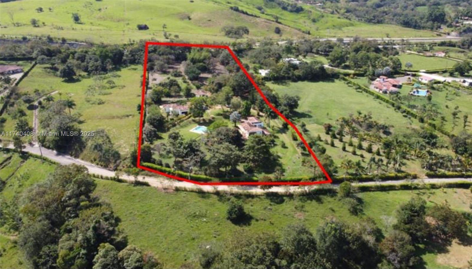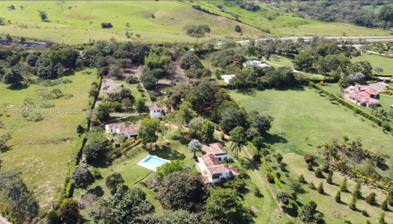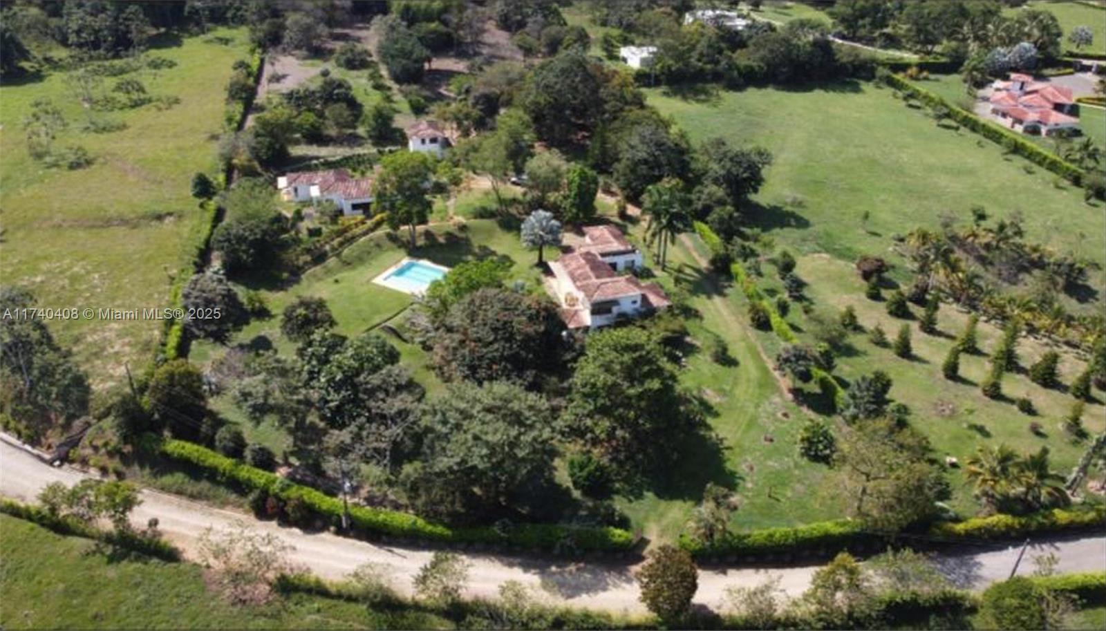Embrace the idyllic rural country living in this picturesque estate located in Antioquia, Colombia. Just a 1.5 hour drive from Medellin, this property consists of 2 separate houses, a 2-story caretaker house and a pool. Upscale gated community with 24 hour security guard and a total of 65 lots. House #1 is a tri-level home with 5 bedrooms/3bathrooms, impressive high vaulted ceilings with exposed wood beams, maid's quarters, large open kitchen, formal living and dining, laundry room and custom built-ins. Beautiful brick flooring throughout the home, covered outdoor terraces and large wood casement windows. House #2 is a 4 bedroom/4 bathroom with exact finishes as house #1. Separate guest house with 2 bedrooms/1bath upstairs and two garage spaces on ground floor. Furniture included, low HOA