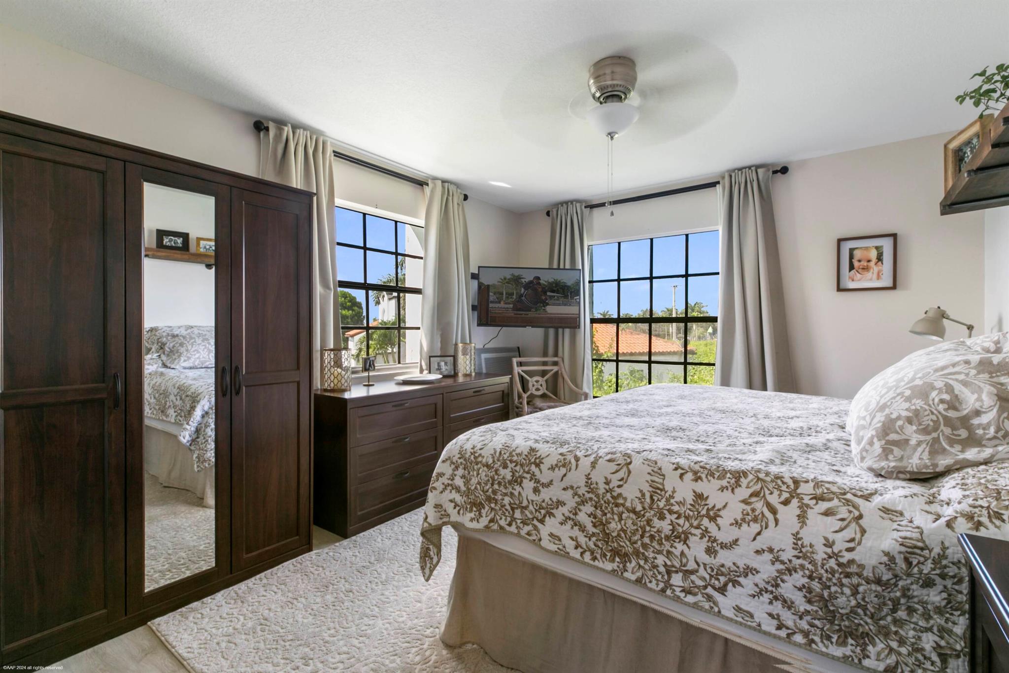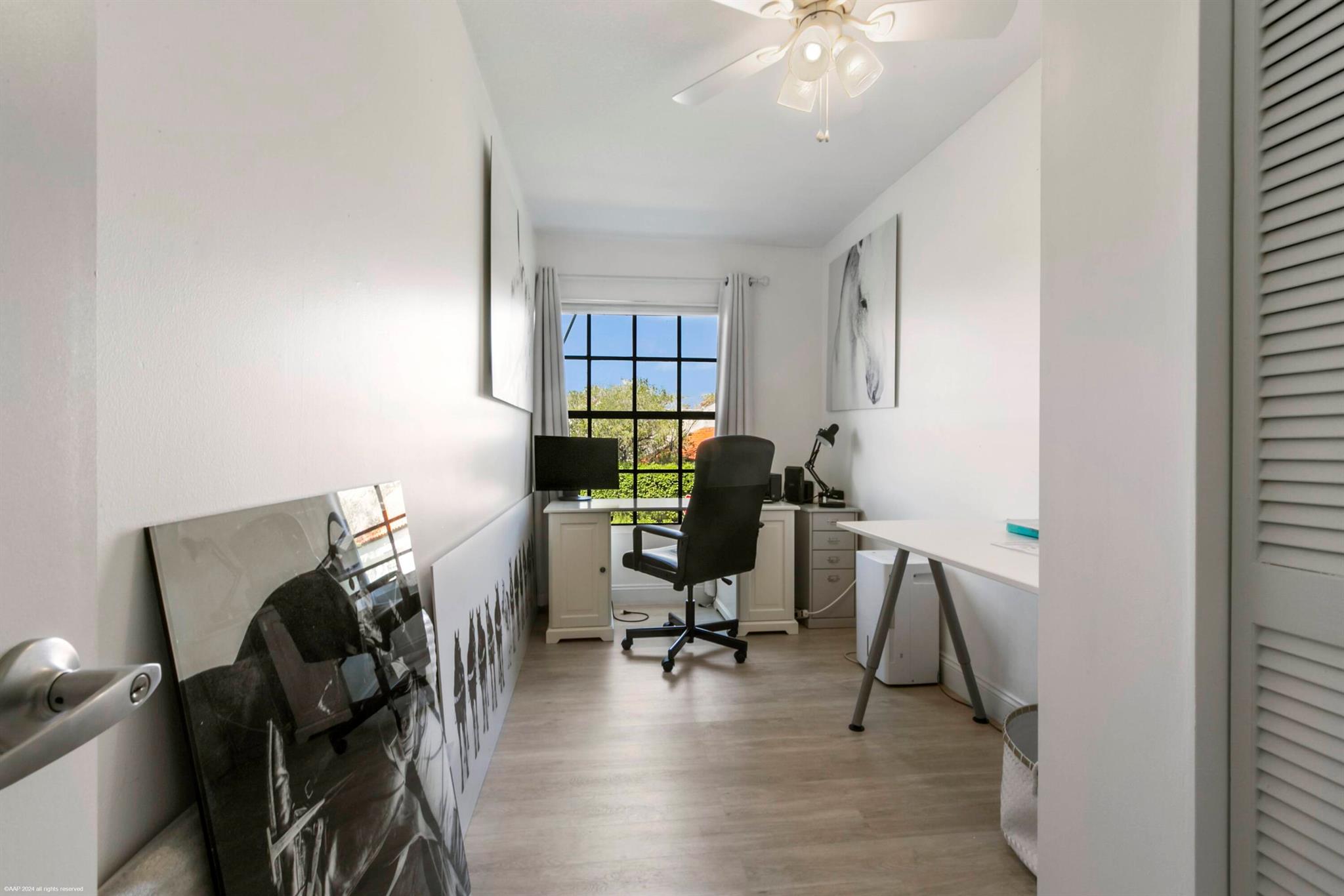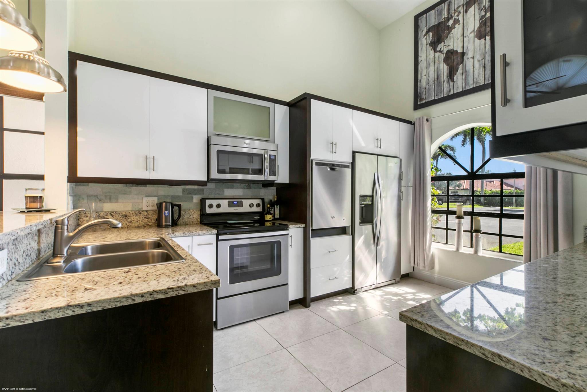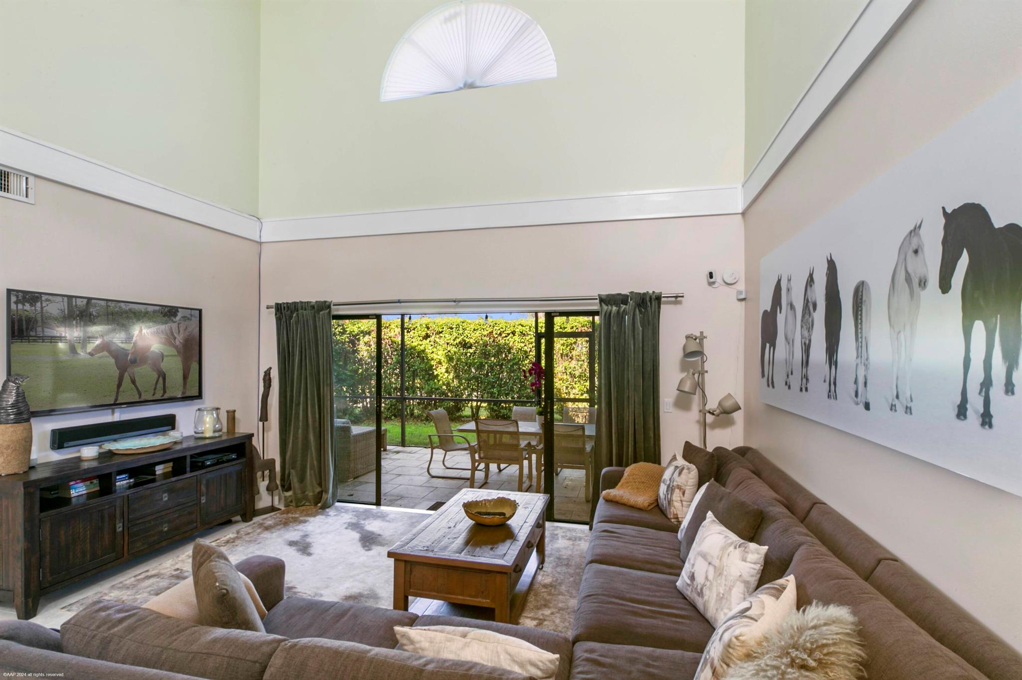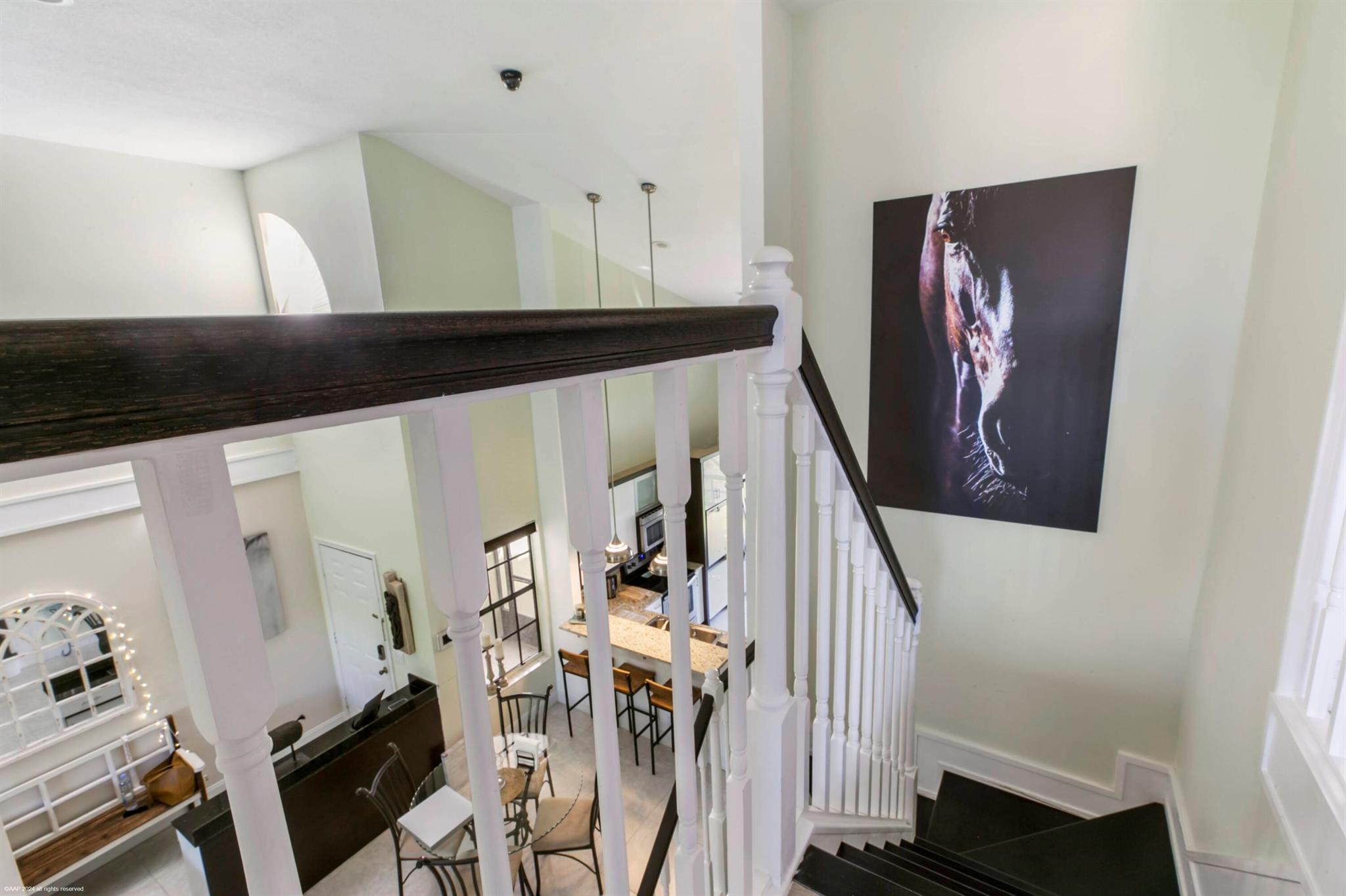 Right around the corner from the horse shows and restaurants! This end-unit townhome is located in the desirable community of Wellington Place and within a very short distance to WEF, Global Dressage and NPC! Featuring over 2,000 sq ft of living space with 4 bedrooms, 3 full and 1 half bathrooms, 2-car garage, and a private covered patio and small yard. The split floorplan offers the primary bedroom and bath on the first floor, plus a half bath. The second level hosts 2 bedrooms that both has full on suite bathrooms (unique for these townhomes), and a smaller room that can be used as a bonus bedroom or an office. This home exudes a sense of spaciousness and comfort, featuring soaring vaulted ceilings with recessed lighting.