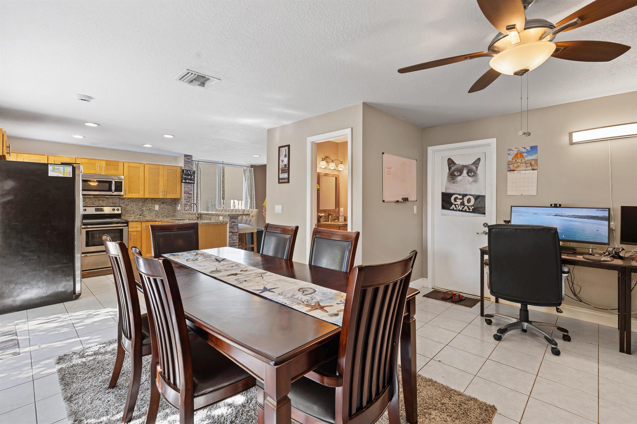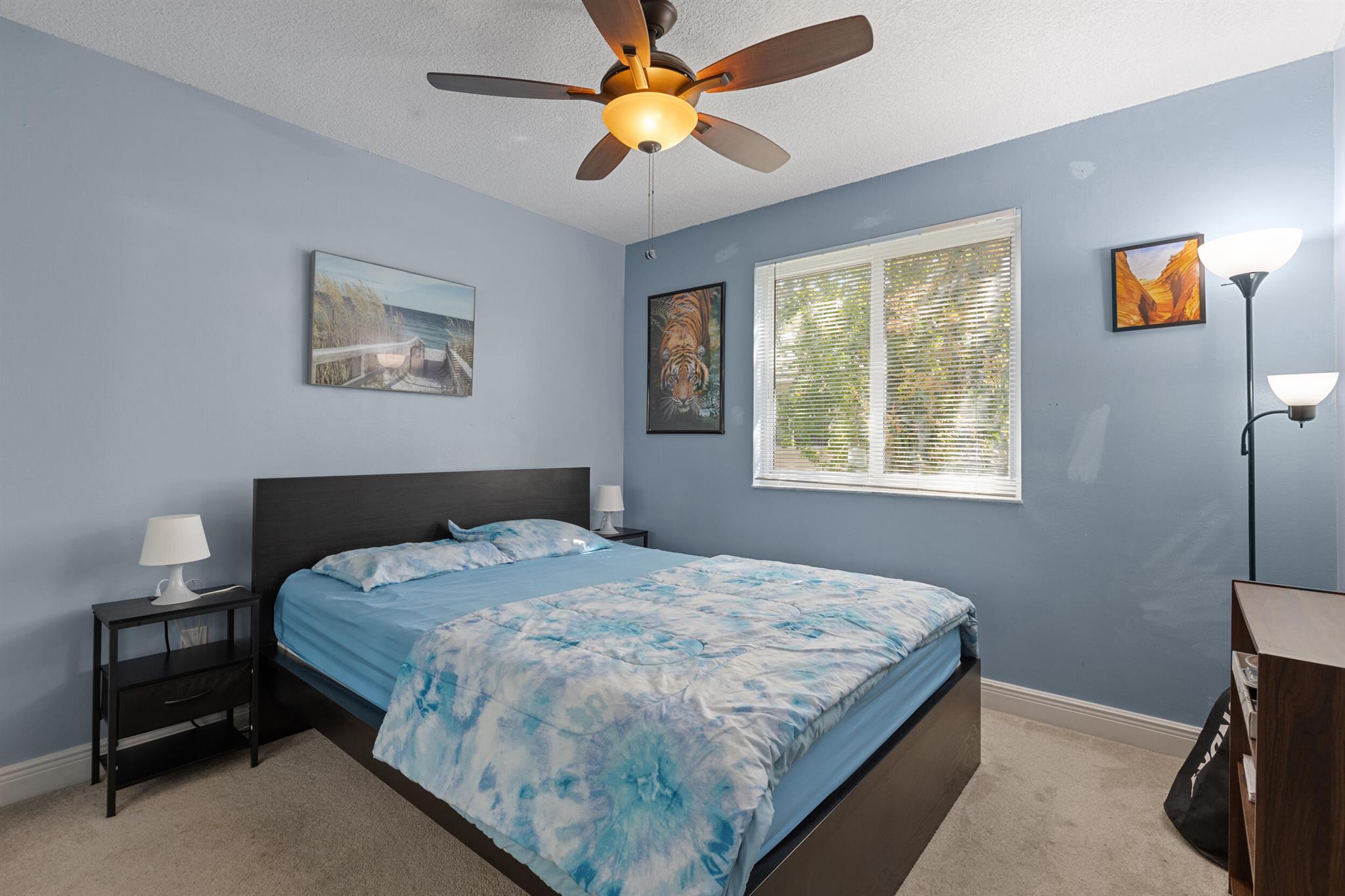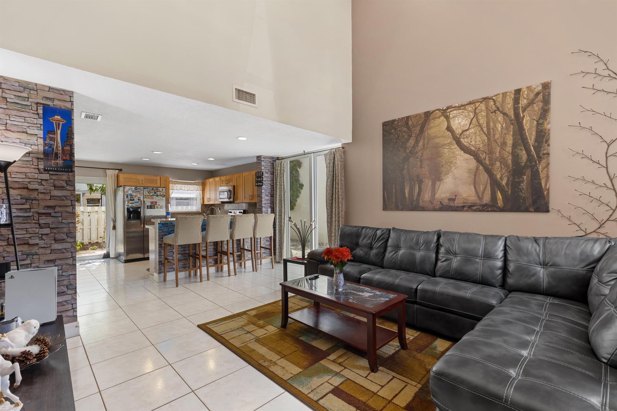 Don't miss out on this beautiful 3-bedroom, 2.5-bath single-family home located in a quiet neighborhood with low HOA fees and no rental restrictions! Surrounded by tree-shaded streets, it offers peaceful walks around a scenic community lake. The neighborhood also features a pool and playground for family fun. Recent updates include impact windows, stainless steel appliances, shaker-style cabinets, new kitchen countertops, updated bathroom vanities, new plumbing, a modern hot water heater, and professional landscaping. The property also has fruit trees such as mango, banana, and papaya. With a garage ideal for storage, and located near parks, schools, and shopping centers, this home is a perfect blend of comfort, convenience, and community! Schedule your private tour today!