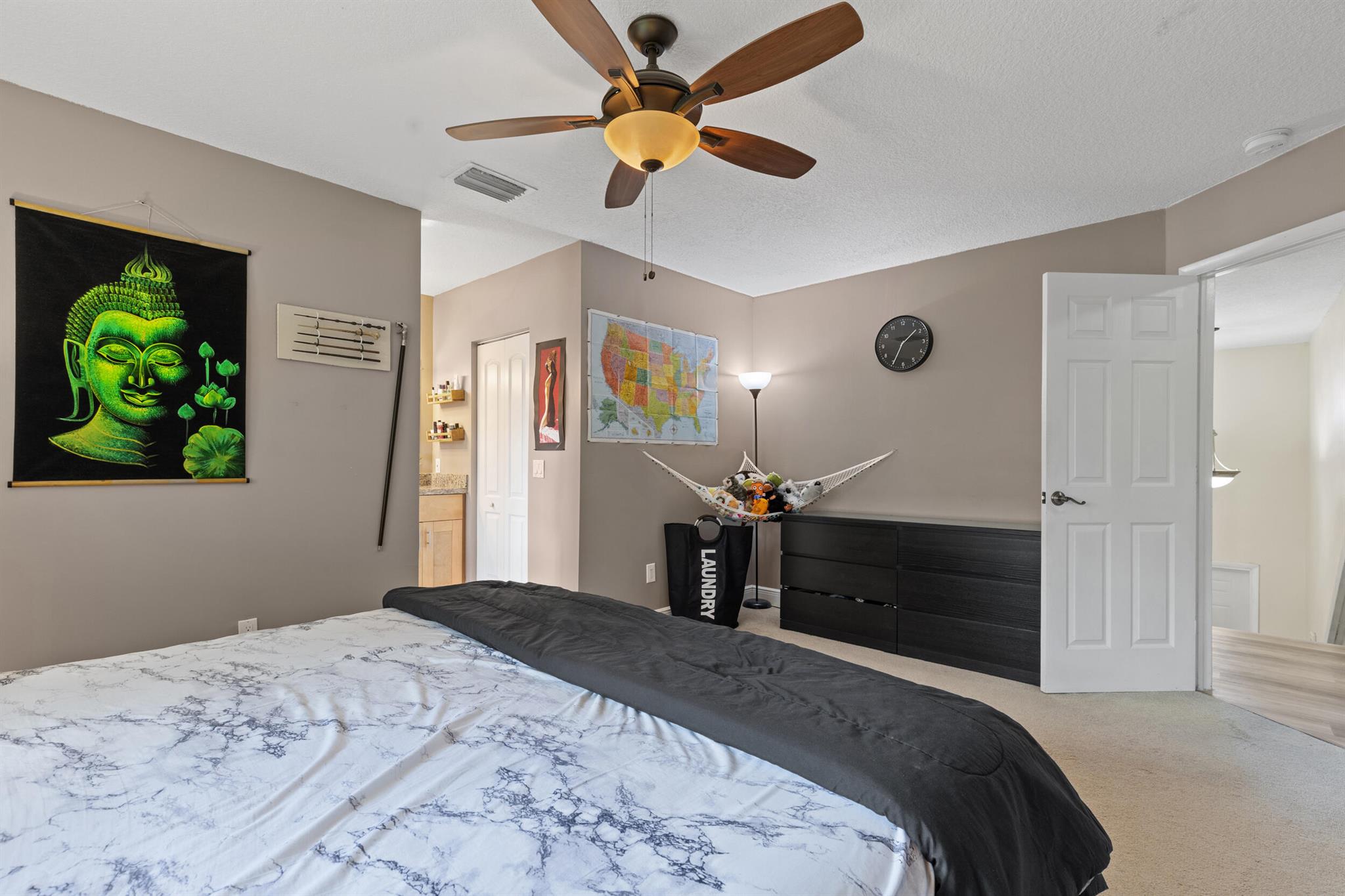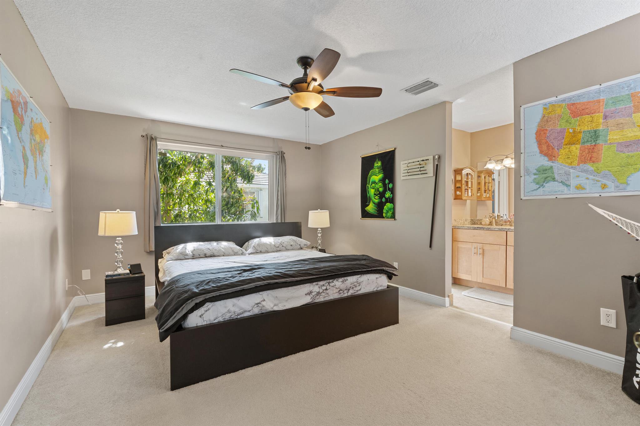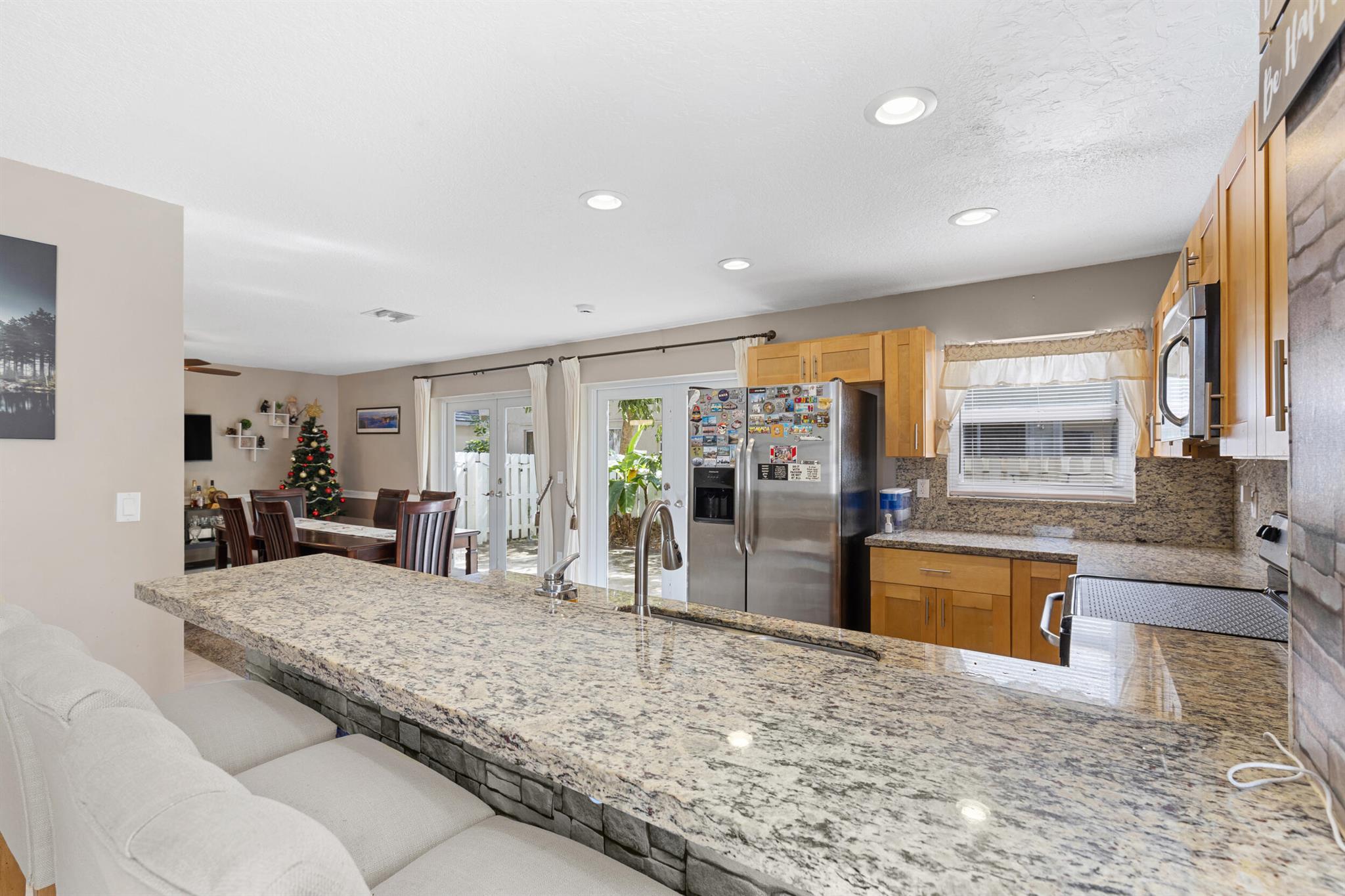 Don't miss out on this beautiful 3-bedroom, 2.5-bath single-family home located in a quiet neighborhood with low HOA fees and no rental restrictions! Surrounded by tree-shaded streets, it offers peaceful walks around a scenic community lake. The neighborhood also features a pool and playground for family fun. Recent updates include impact windows, stainless steel appliances, shaker-style cabinets, new kitchen countertops, updated bathroom vanities, new plumbing, a modern hot water heater, and professional landscaping. The property also has fruit trees such as mango, banana, and papaya. With a garage ideal for storage, and located near parks, schools, and shopping centers, this home is a perfect blend of comfort, convenience, and community! Schedule your private tour today!