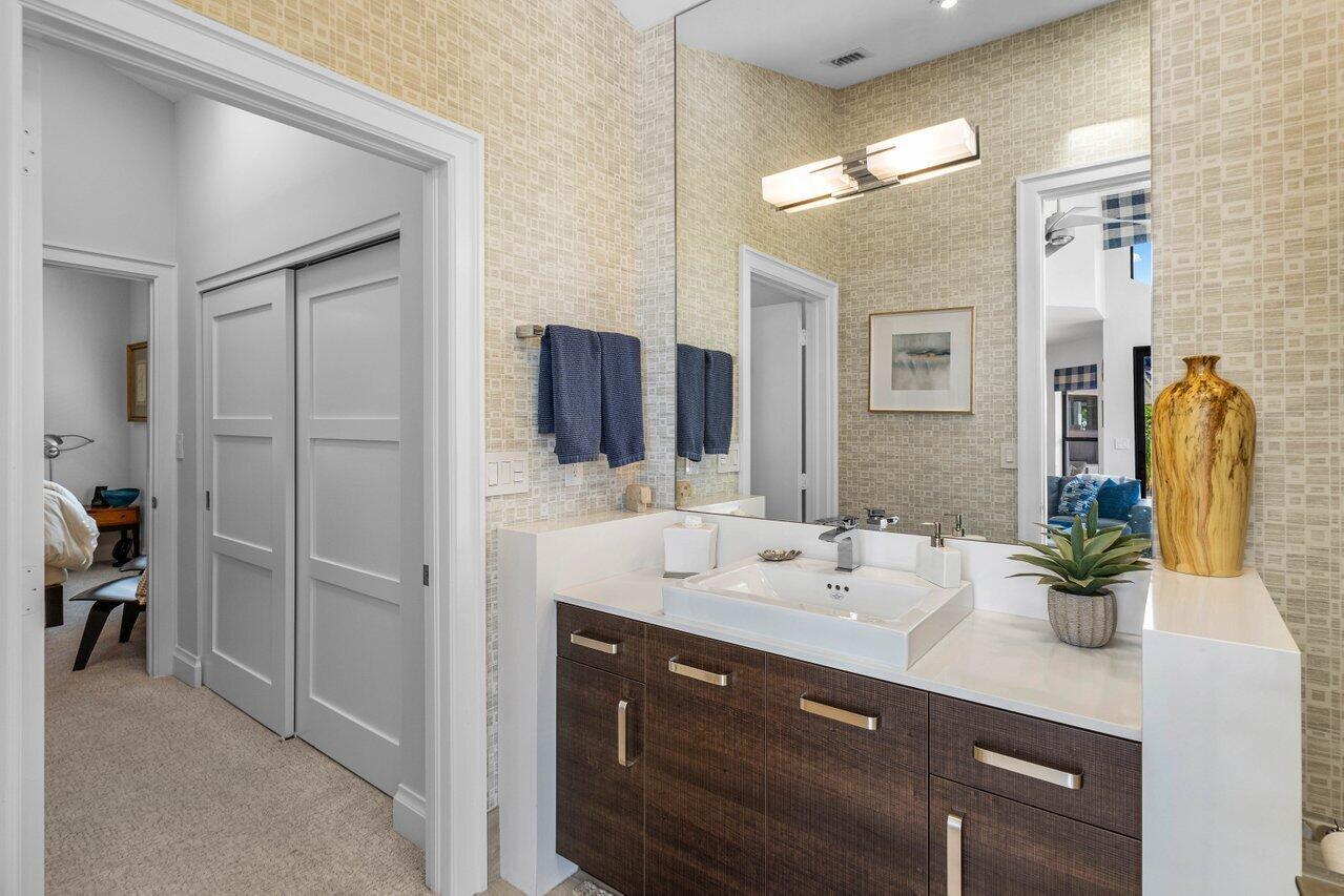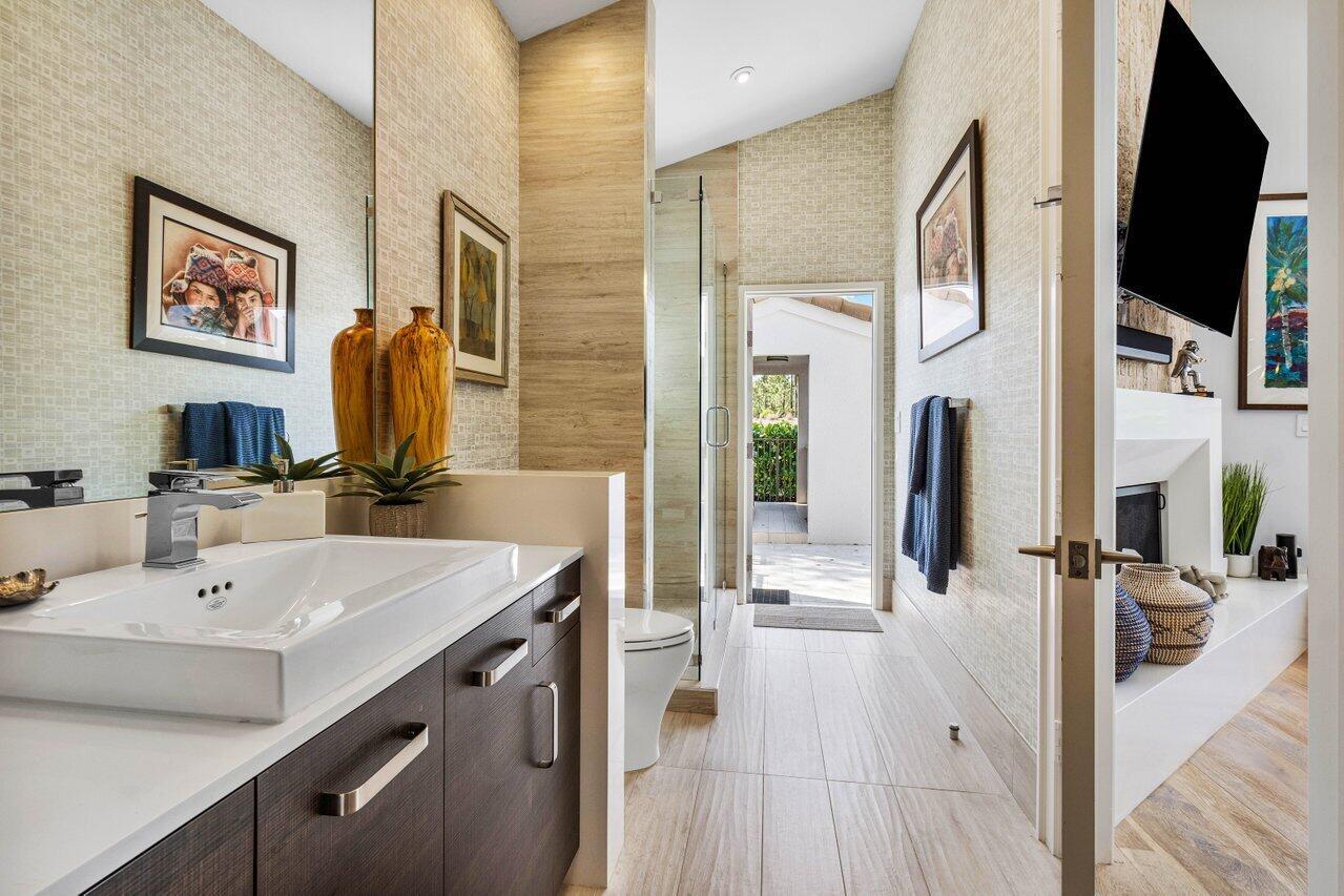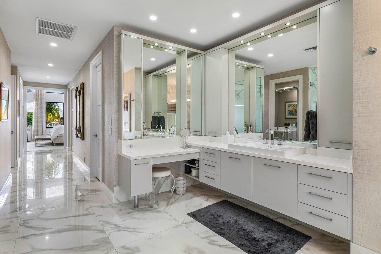 Discover luxury and sophistication in this beautifully renovated, high-end residence located in the exclusive Bocaire Country Club. Enjoy a thoughtfully designed floor plan featuring split bedrooms--each with its own ensuite bathroom. Primary boasts his/her baths & 3 walk-in closets! The heart of the home features a chef's kitchen adorned in neutral tones, complete with top-of-the-line appliances, a cozy breakfast nook, and a spacious family room. Throughout the home, luxurious finishes and refined details create an atmosphere of timeless elegance and modern comfort. Step outside to a transformed backyard showcasing a redone patio, spa and a sparkling pool. Enjoy sun-soaked afternoons and breathtaking views of the golf course. The property also boasts a separate summer kitchen & bar area,