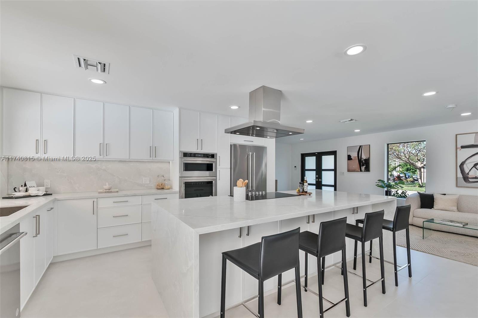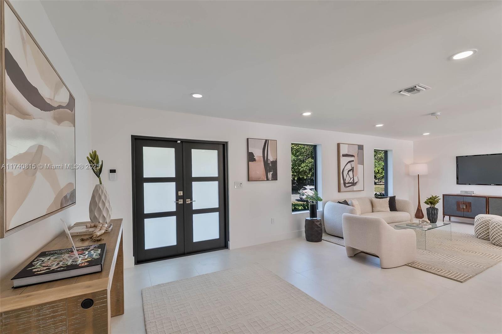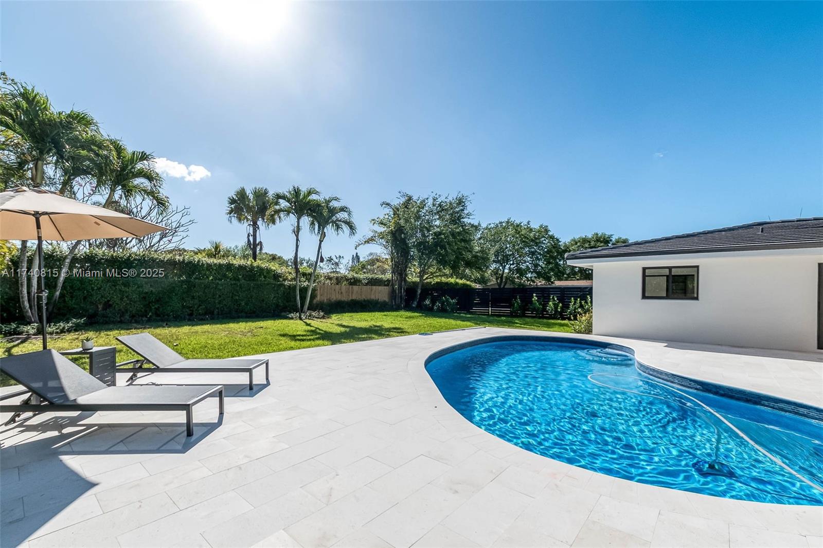 Complete Renovation (with permits) in N Palmetto Bay! Stunning 4 bedroom 3 bath smart home features open concept design. Eat in kitchen showcases center island with quartz countertops, custom wine bar, and Kitchenaid appliances. Porcelain tile floors throughout. Impact windows and doors. Luxurious primary suite with spa like bath with soaking tub & custom closet. Split plan includes junior suite. Den easily converts to 5th bedroom. Dedicated laundry room. 2022 AC and new duct work. All new plumbing, septic system, electrical, tile roof, and paver driveway. Covered terrace, shell stone patio, pebble tech pool. Fenced corner lot on quiet cul de sac. This is a must see!