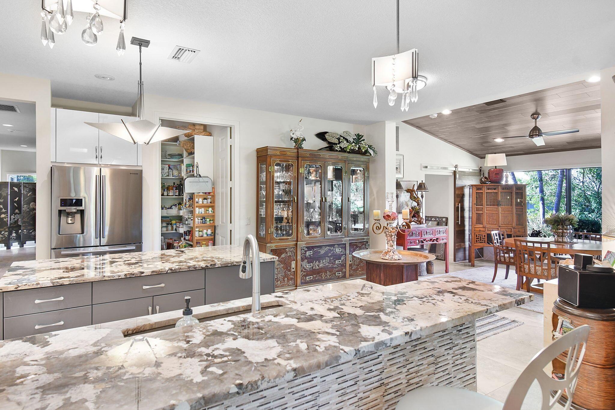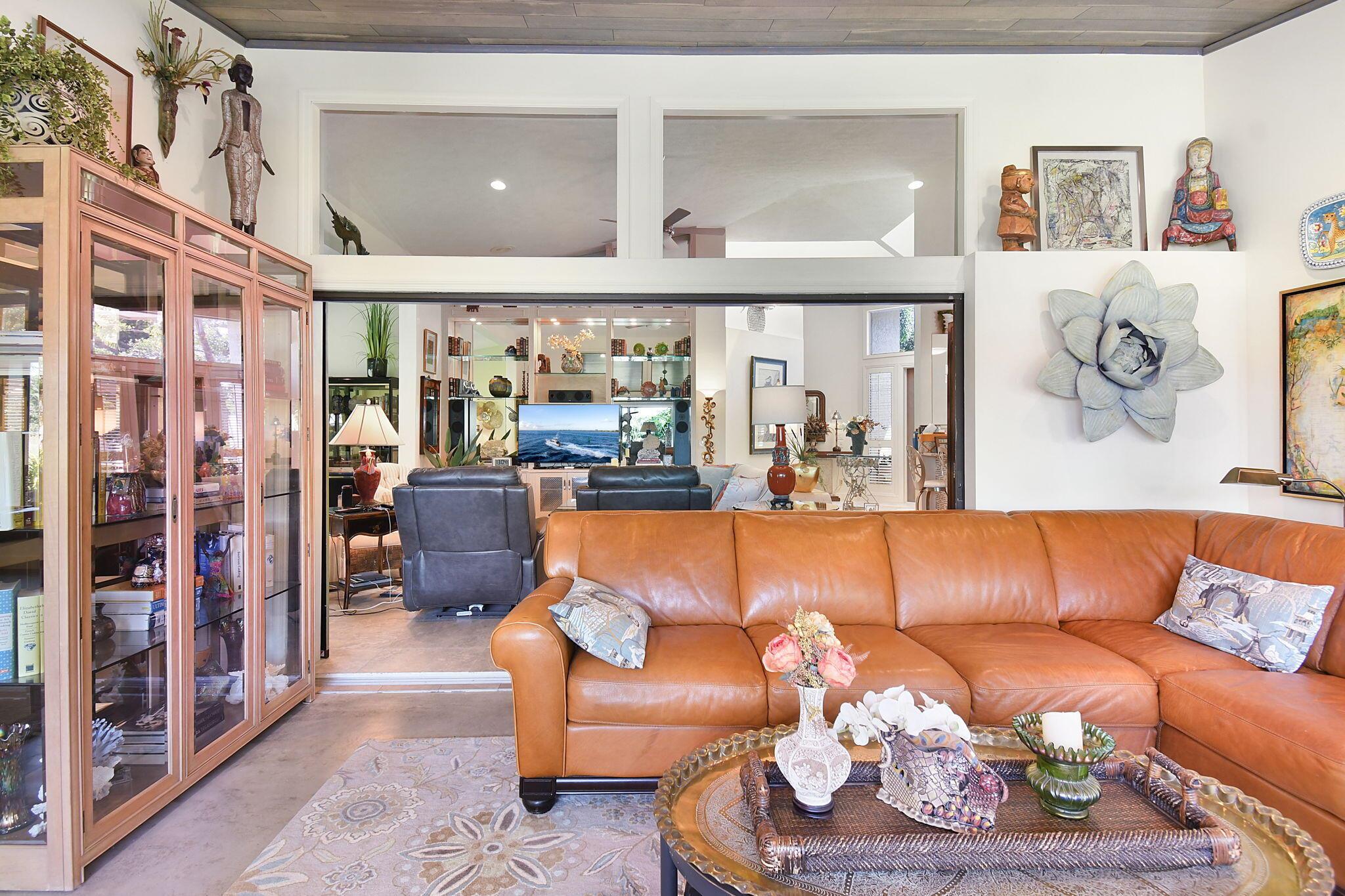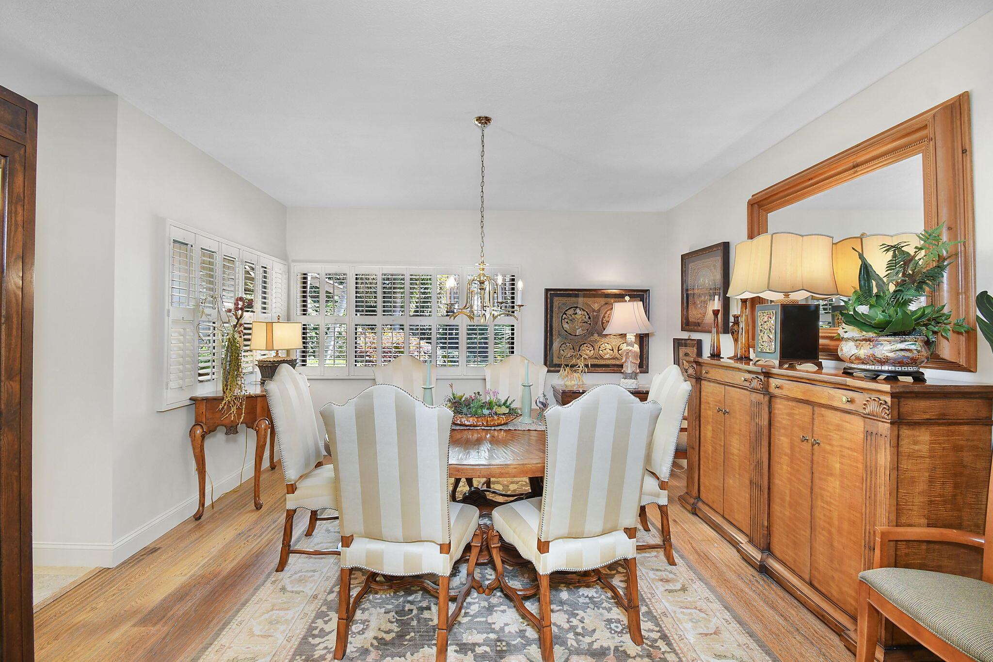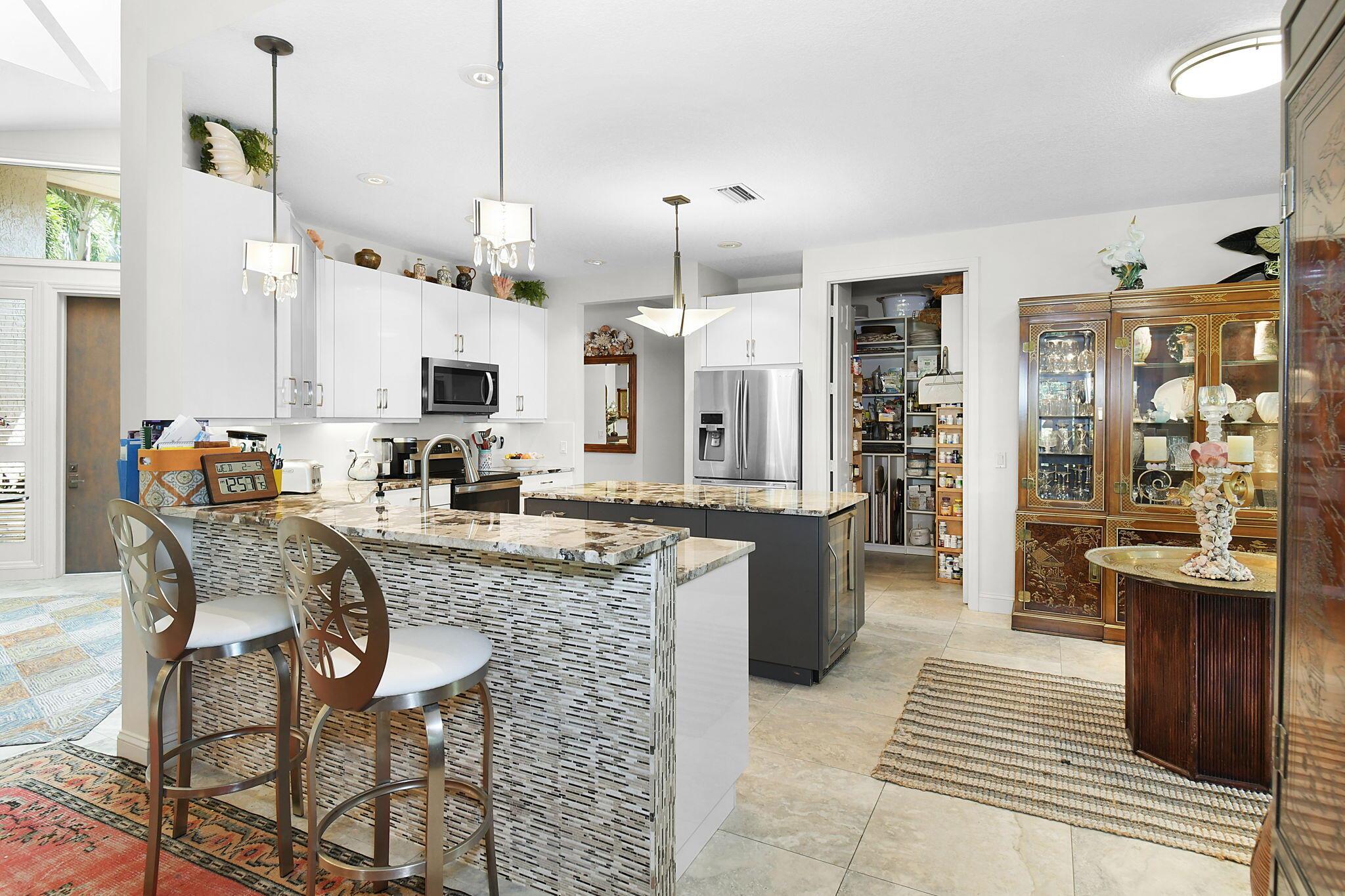 This 4 bedroom 3.5 bath home offers an expansive living space with vaulted ceilings. The recently remodeled kitchen has gorgeous granite countertops, stainless steel appliances, a large pantry & wine fridge that would please any chef. The Florida Room with wood ceilings overlooks a garden that could be easily turned into an inviting pool area. The large primary bedroom includes a sitting area & 2 walk-in closets. The massive primary bathroom has 2 vanities, step-in shower and soak tub. The Music & Recreation rooms at the rear of the home offer panoramic views of the Blue Course 14th fairway through impact glass picture windows. On the other side of the home are 3 bedrooms and 2 bathrooms. The home sits on a high & dry .58 acre lot. Garage doors replaced in 2025.