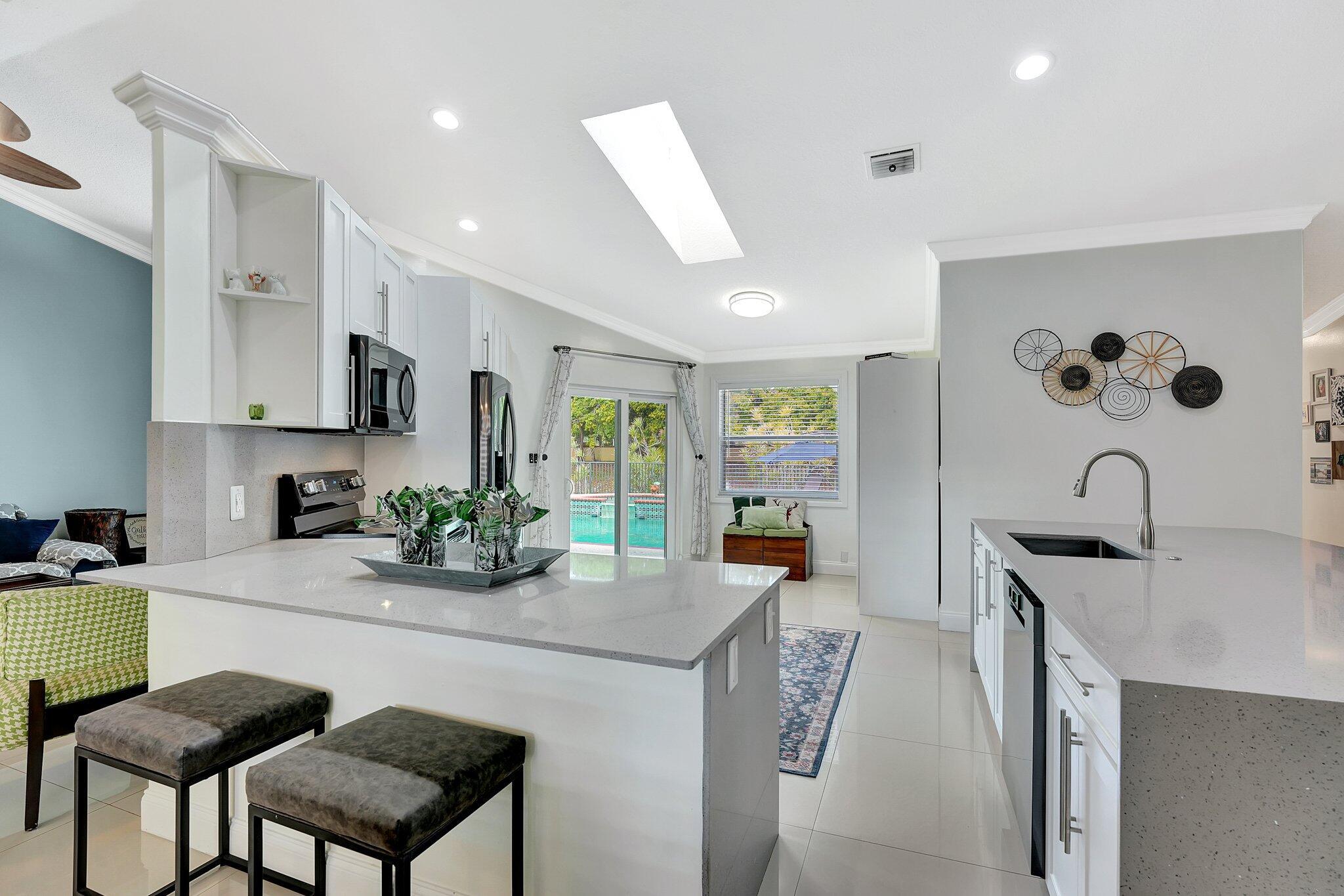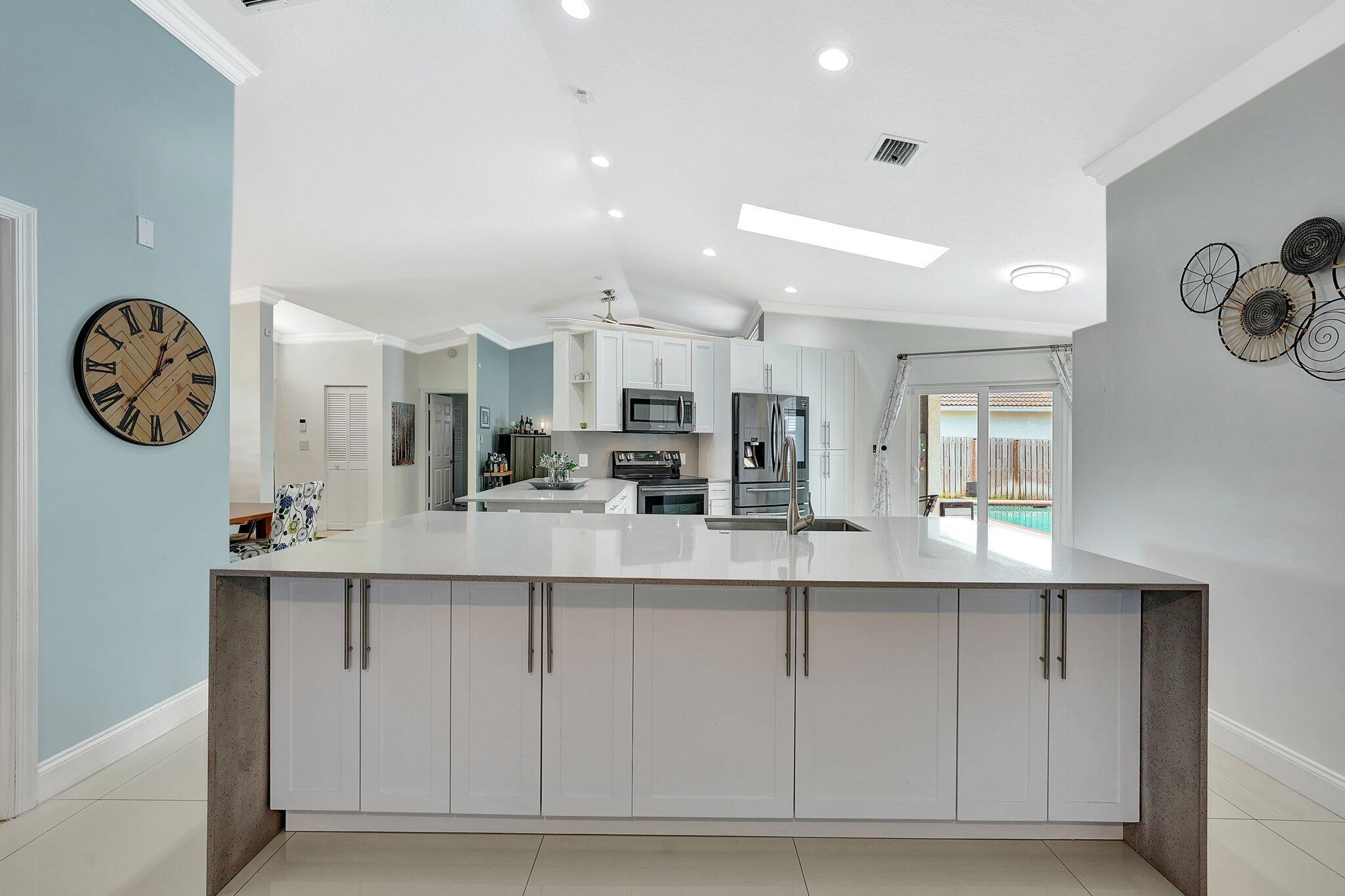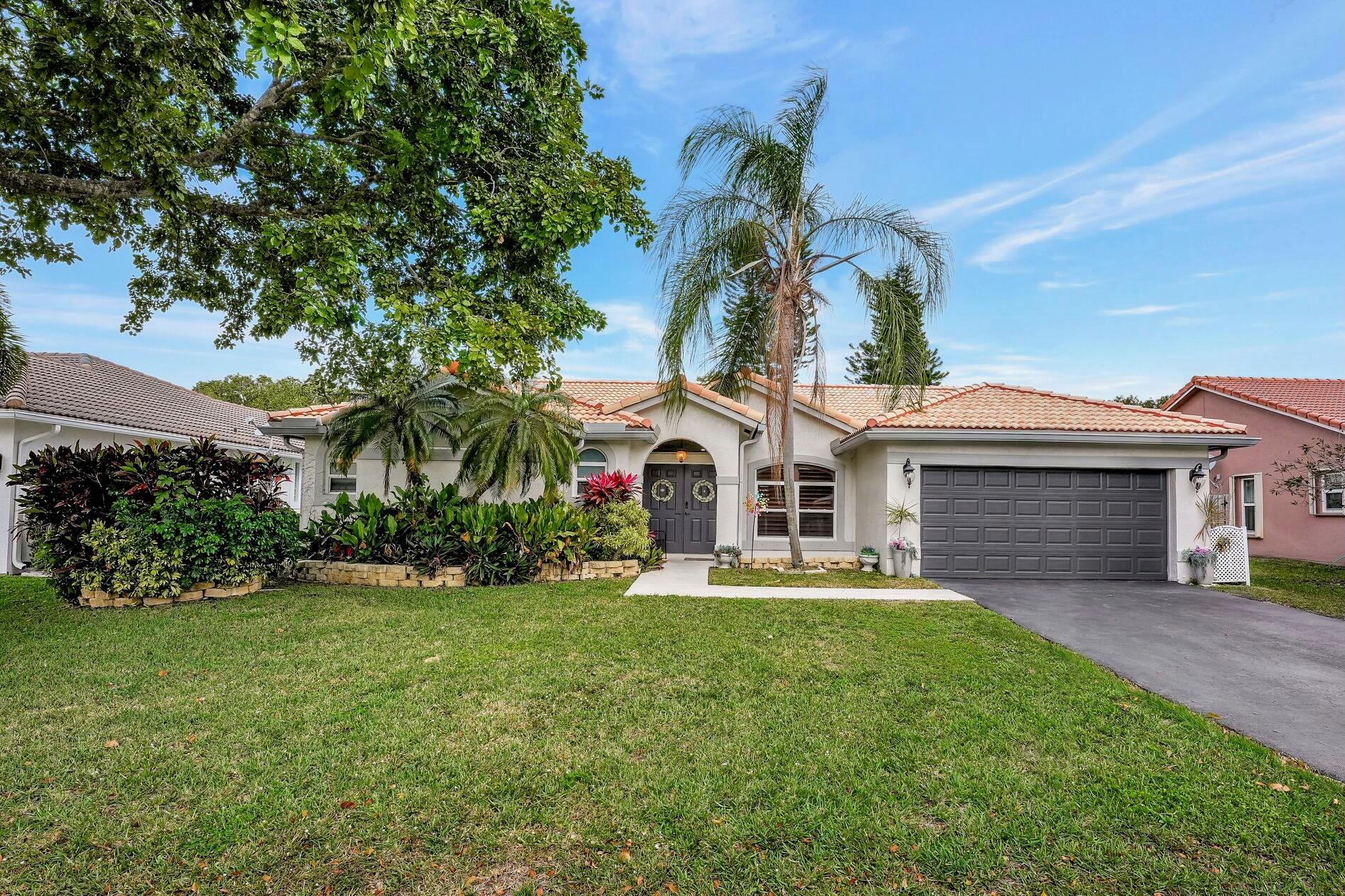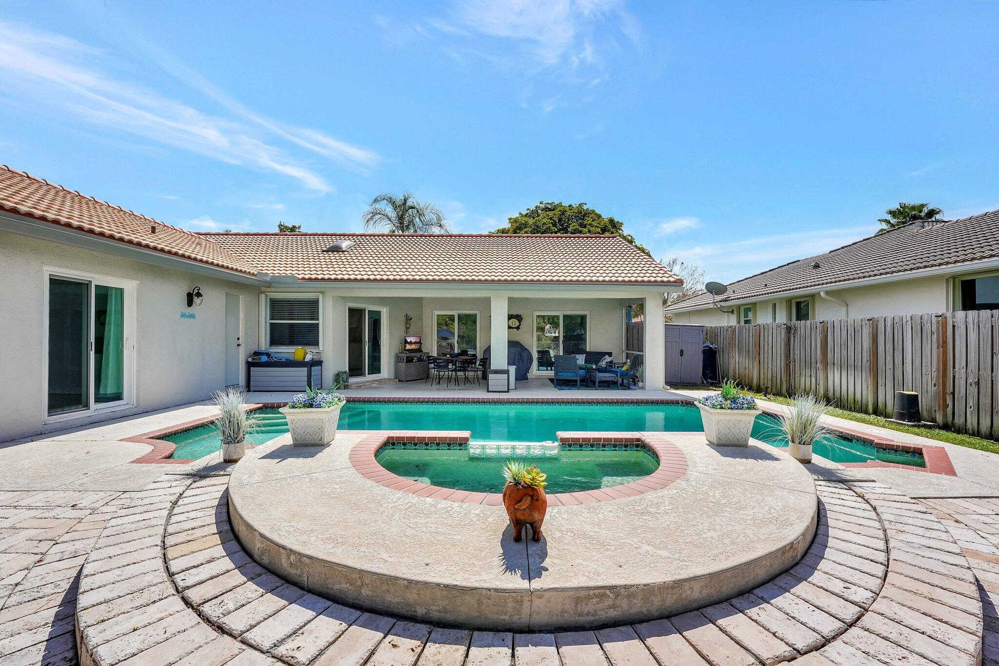 This move-in ready Coral Springs home balances practicality and style! Highlights include large double-island kitchen, spacious open layout, and hurricane-ready features that offer security and savings on insurance. The modern, updated kitchen has ample storage, counter, and prep space which is perfect for entertaining. The split-bedroom floor plan offers privacy and flexibility. Primary suite features high vaulted ceilings, 2 custom walk-in closets, sliding door to the covered patio, and a luxurious en-suite bath with soaking tub and stand-up shower. Guest bedrooms can function as home office or gym spaces. Cabana guest bath opens to pool and patio. All windows and doors are impact rated or have accordion shutters, and roof was replaced in 2018!
