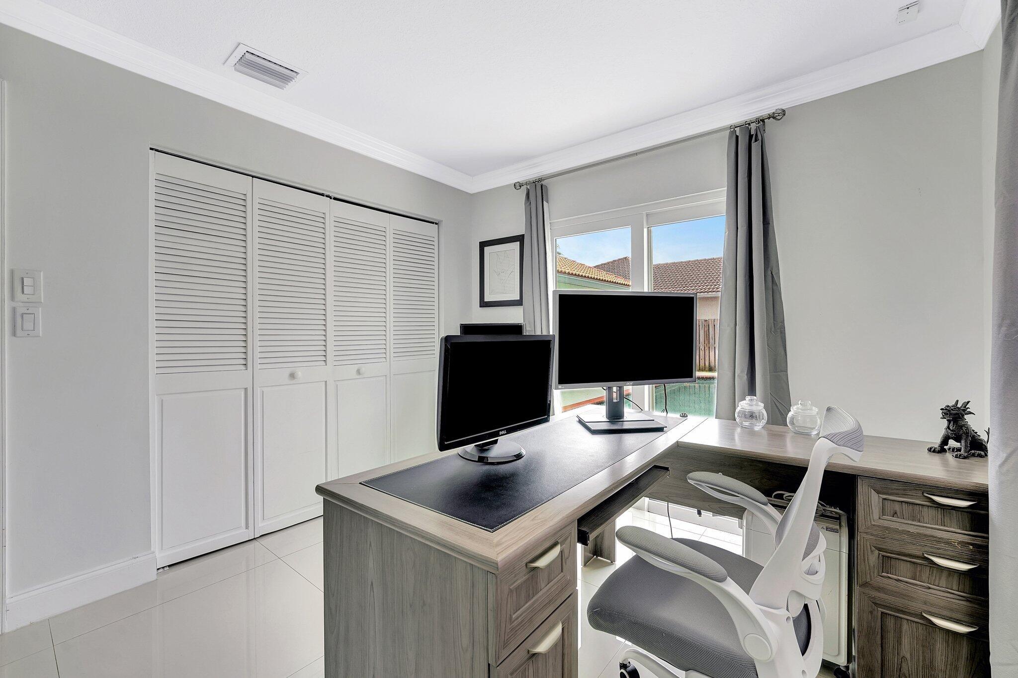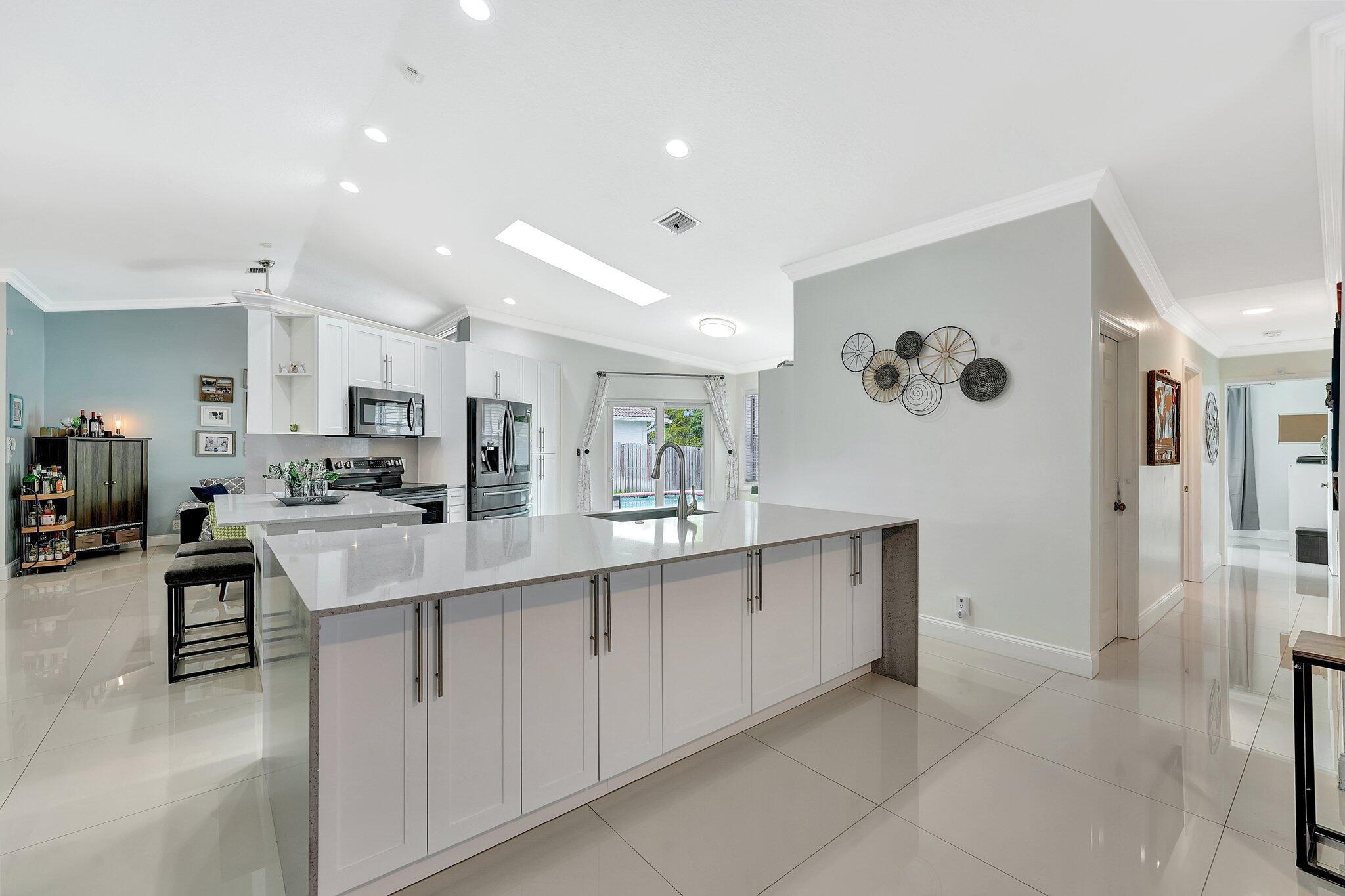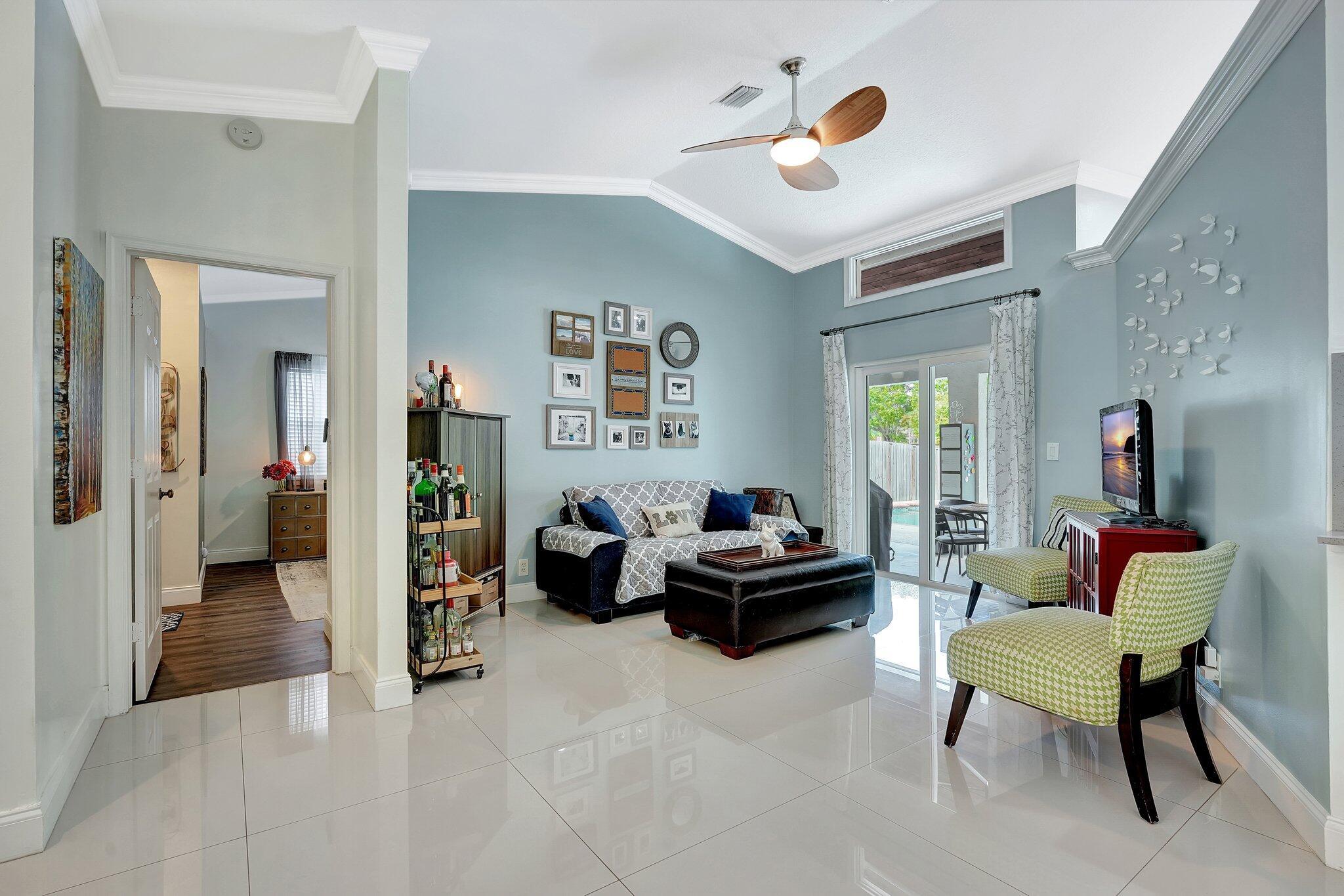 This move-in ready Coral Springs home balances practicality and style! Highlights include large double-island kitchen, spacious open layout, and hurricane-ready features that offer security and savings on insurance. The modern, updated kitchen has ample storage, counter, and prep space which is perfect for entertaining. The split-bedroom floor plan offers privacy and flexibility. Primary suite features high vaulted ceilings, 2 custom walk-in closets, sliding door to the covered patio, and a luxurious en-suite bath with soaking tub and stand-up shower. Guest bedrooms can function as home office or gym spaces. Cabana guest bath opens to pool and patio. All windows and doors are impact rated or have accordion shutters, and roof was replaced in 2018!
