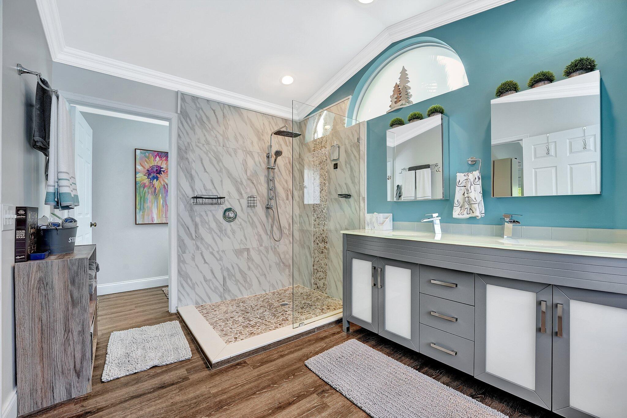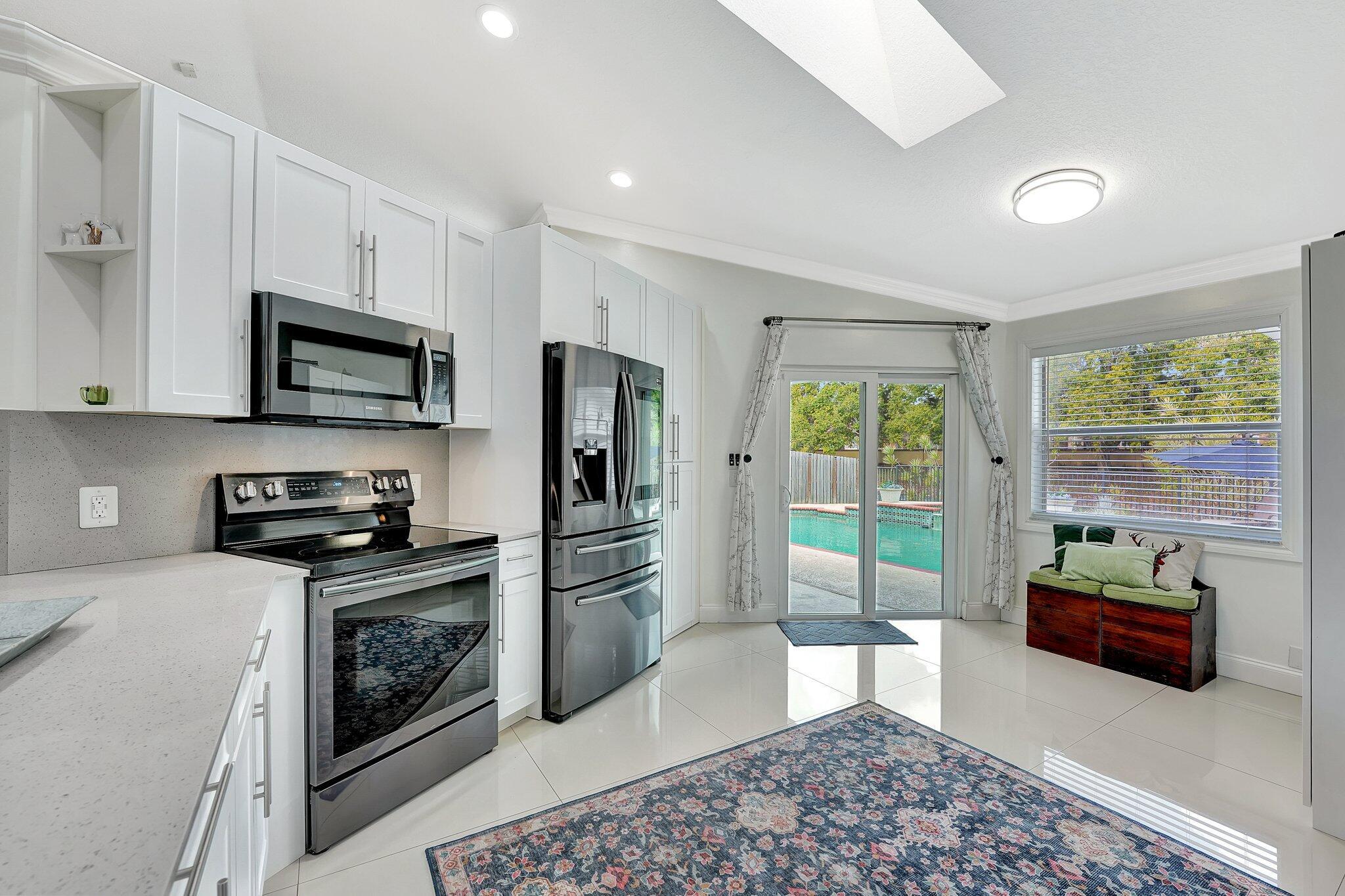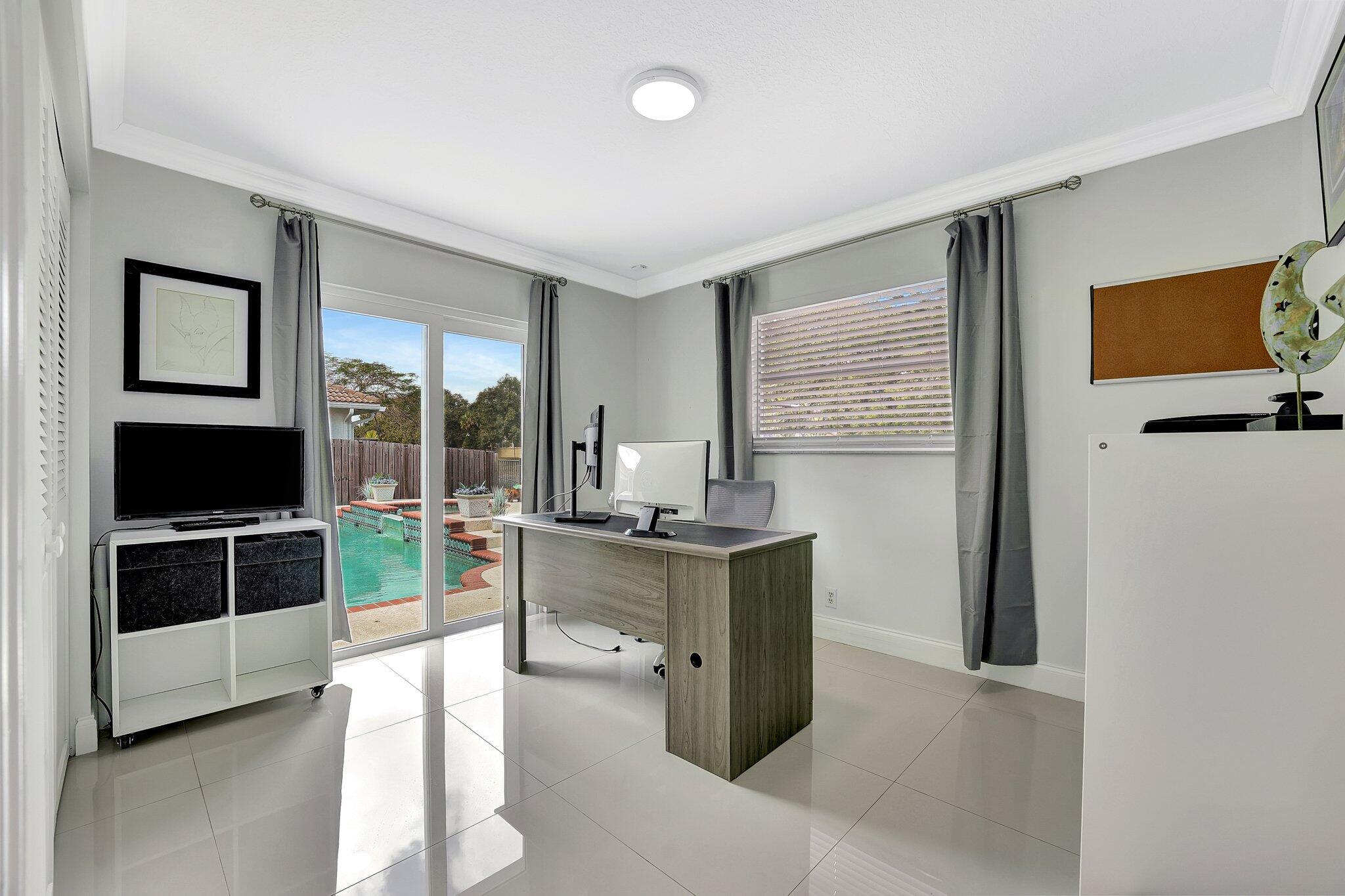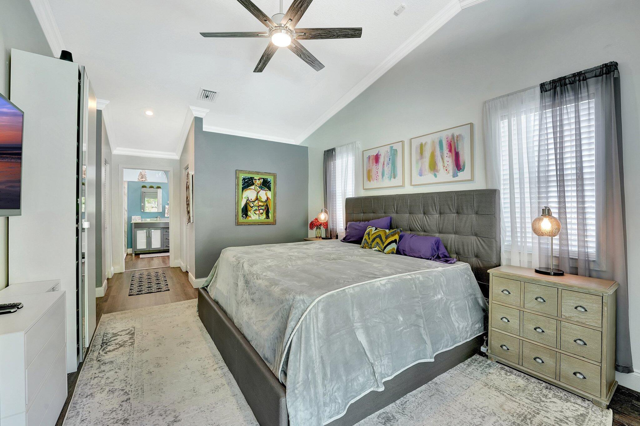 This move-in ready Coral Springs home balances practicality and style! Highlights include large double-island kitchen, spacious open layout, and hurricane-ready features that offer security and savings on insurance. The modern, updated kitchen has ample storage, counter, and prep space which is perfect for entertaining. The split-bedroom floor plan offers privacy and flexibility. Primary suite features high vaulted ceilings, 2 custom walk-in closets, sliding door to the covered patio, and a luxurious en-suite bath with soaking tub and stand-up shower. Guest bedrooms can function as home office or gym spaces. Cabana guest bath opens to pool and patio. All windows and doors are impact rated or have accordion shutters, and roof was replaced in 2018!