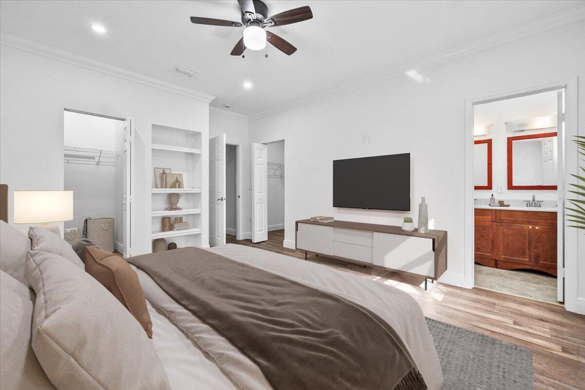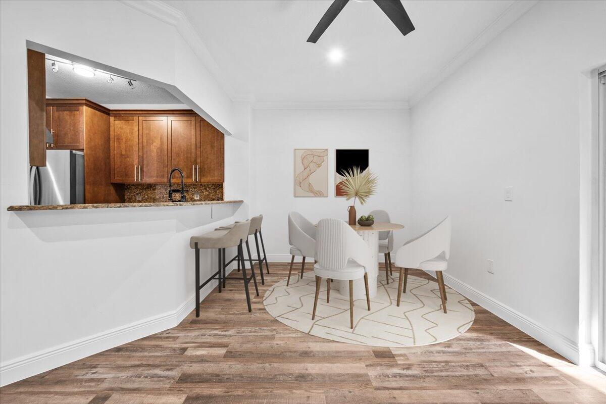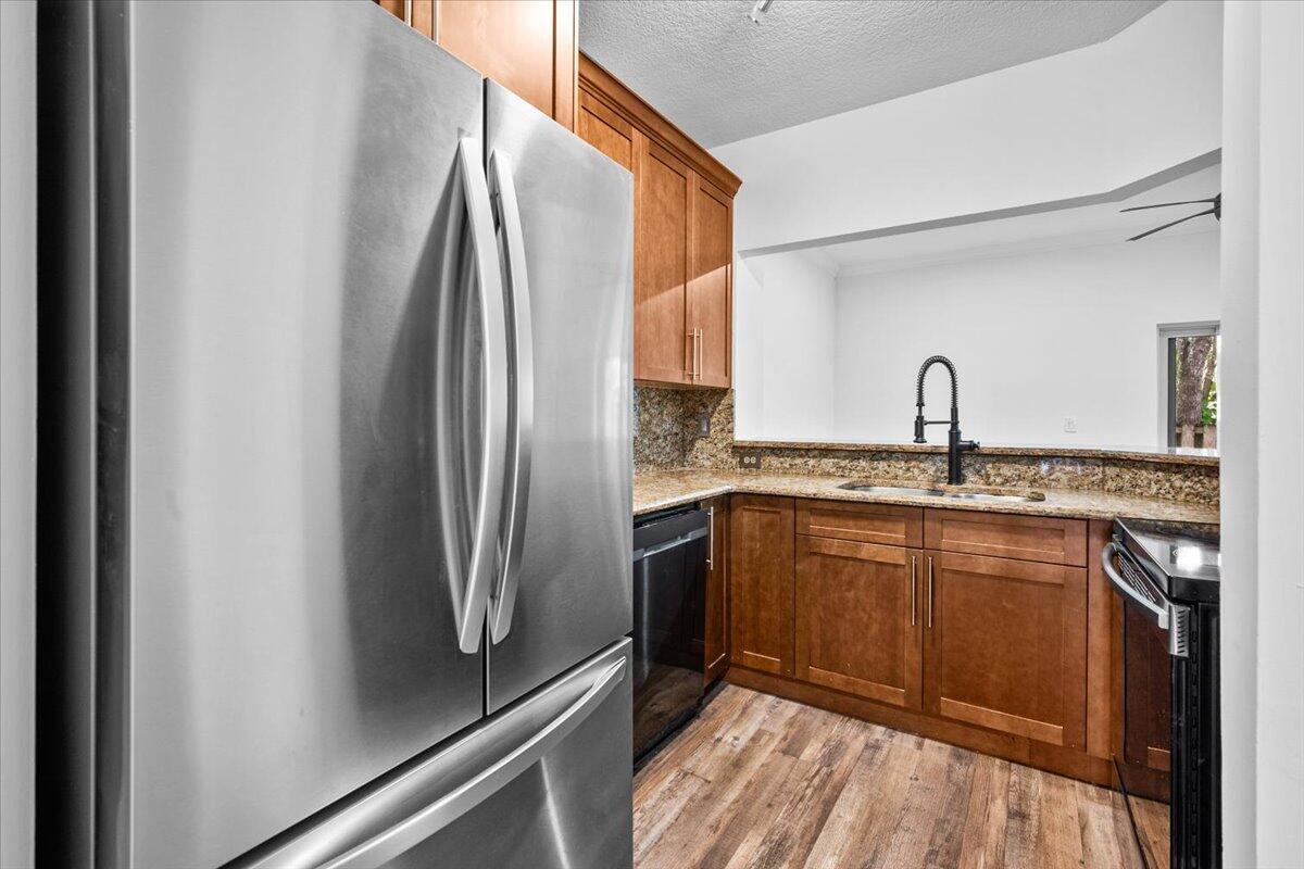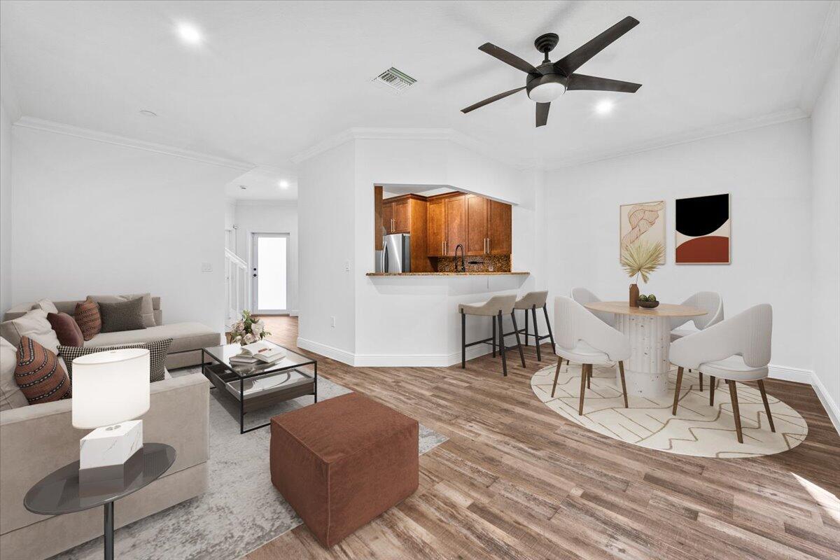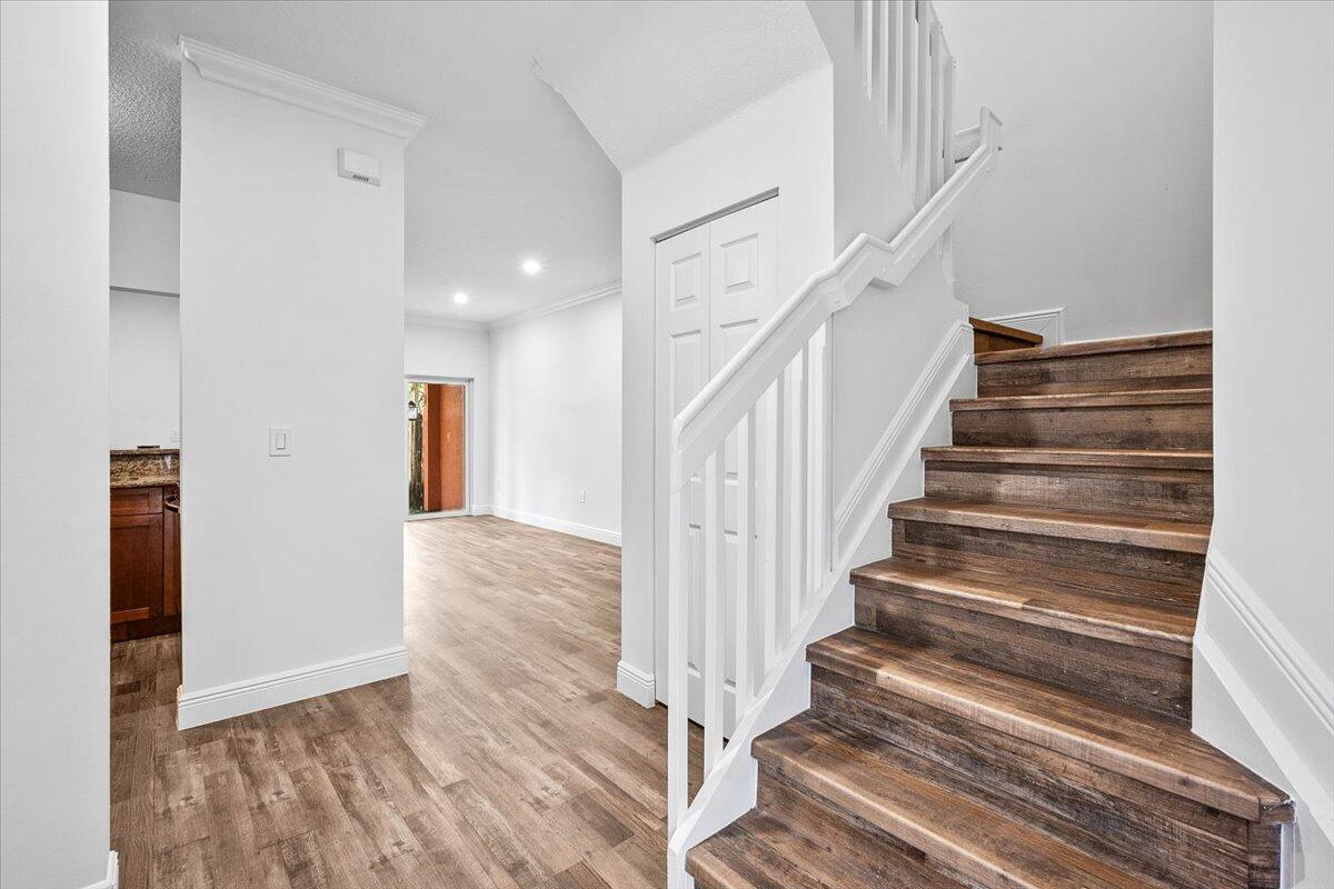 Updated and beautiful 2 bedroom, 2.5 bathroom townhome with a 1-car garage located in the lovely Monte Carlo community. Great location close to everything you need- Shopping centers, clinics, parks, A+ schools and easy access to roads and highways for a fast commute. Inside you'll find the perfect home with newer vinyl floors, new interior paint, impact sliding glass doors that open up to a charming private patio- perfect for lounging. The kitchen features granite countertops, stainless steel appliances and plenty of cabinet space. Upstairs you'll find two generously sized bedrooms- each with an attached bathroom and walk in closet. The primary suite features TWO walk-in closets and a double sink vanity. Chill out by the sparkling community pool after a long work week. This is the one!