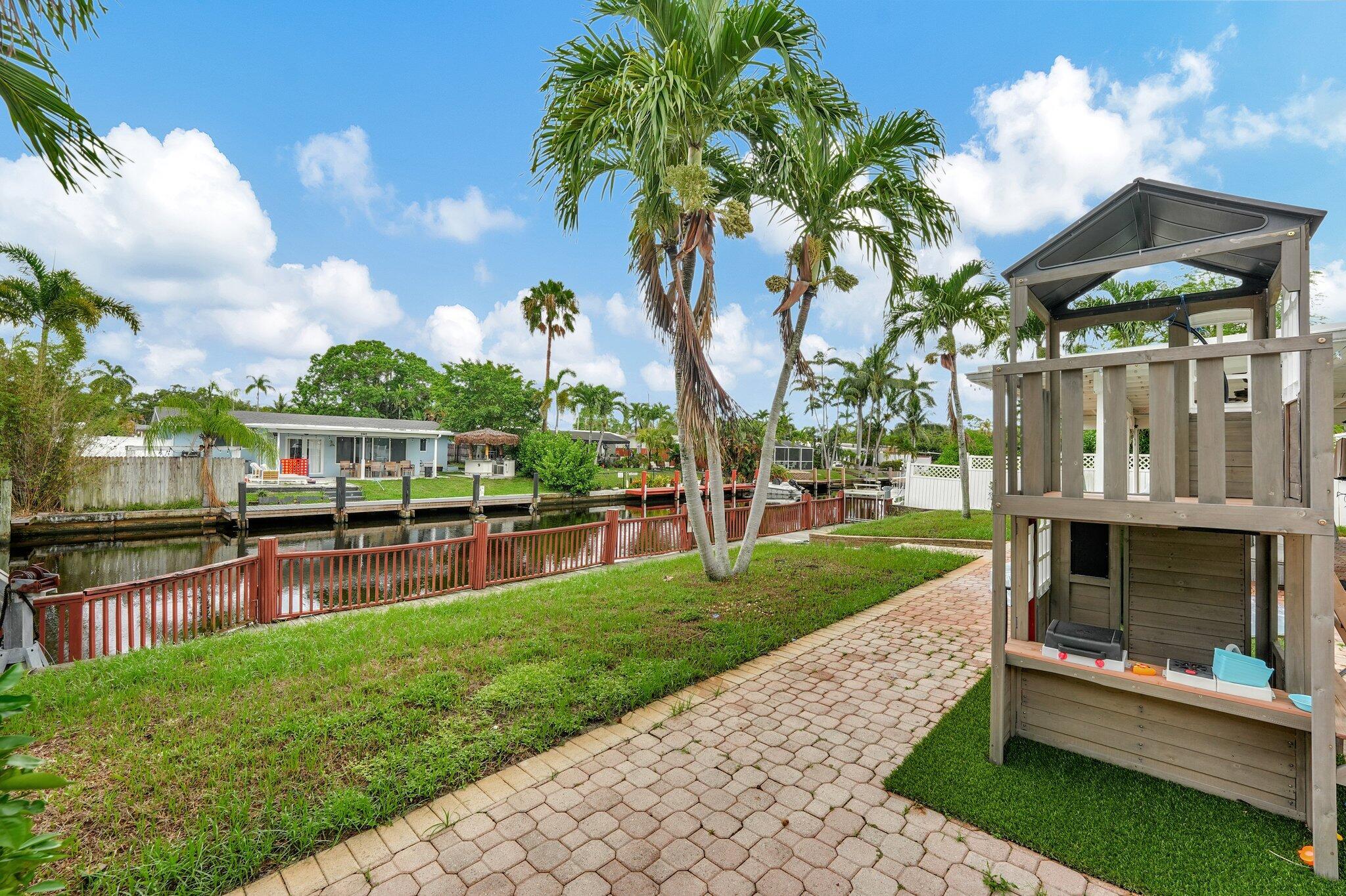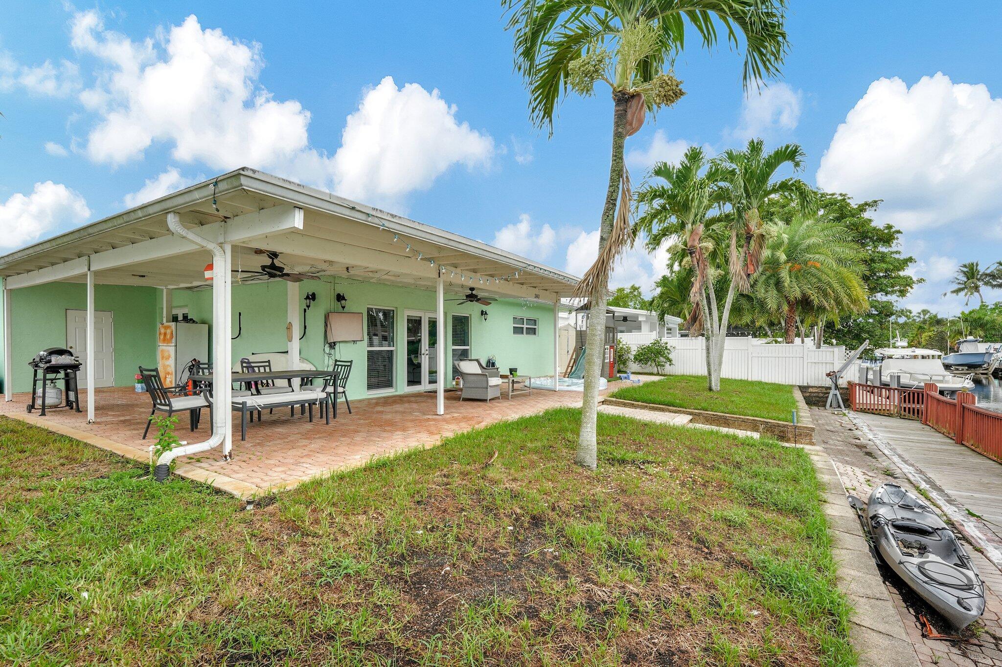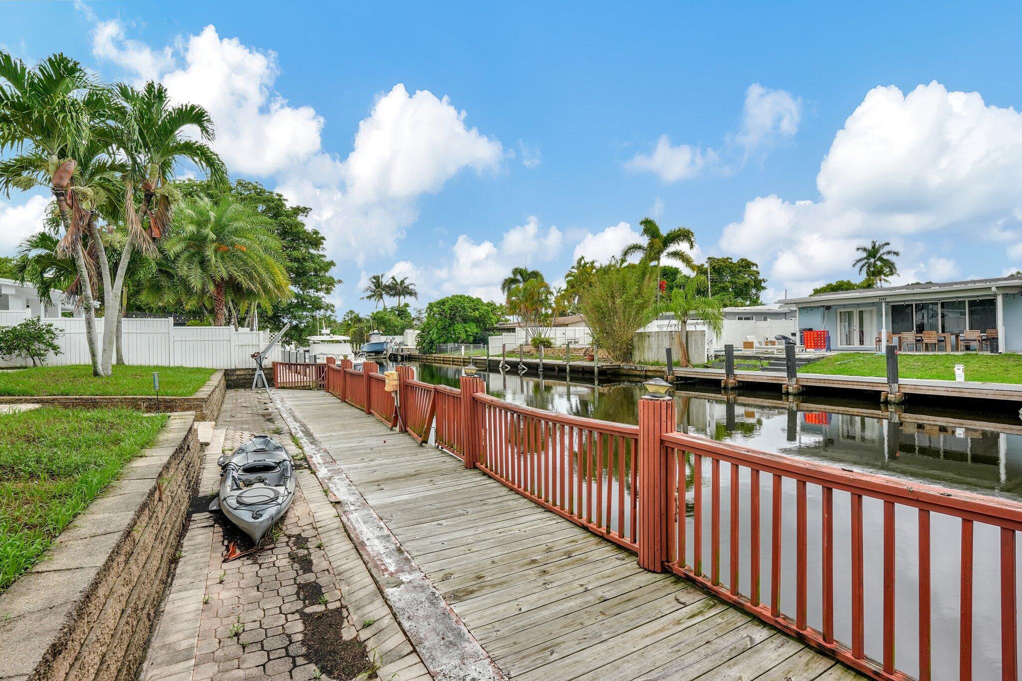 CALLING ALL BOATERS! Ready to move in! This stunning home offers ocean access with no fixed bridges. Hurricane windows and doors, a private dock, quartz countertops, ss appliances. The kitchen features an island with a JennAir countertop stove, pull-out drawers, and gourmet kitchen, 20' diagonal tile flooring throughout. The oversized primary en-suite includes granite counters and Kohler fixtures. Enjoy the covered wraparound patio with brick pavers, an extra-wide driveway, updated electric, and a 65-foot dock with 70ft of waterfront equipped with 50Amp, 30Amp, and 110V outlets. Other features include vinyl fencing, a vinyl shed, patio speakers, and a private boat ramp for the neighborhood. Perfect for boating, kayaking or paddle boarding right from your backyard. CLOSE to Downtown FTL.