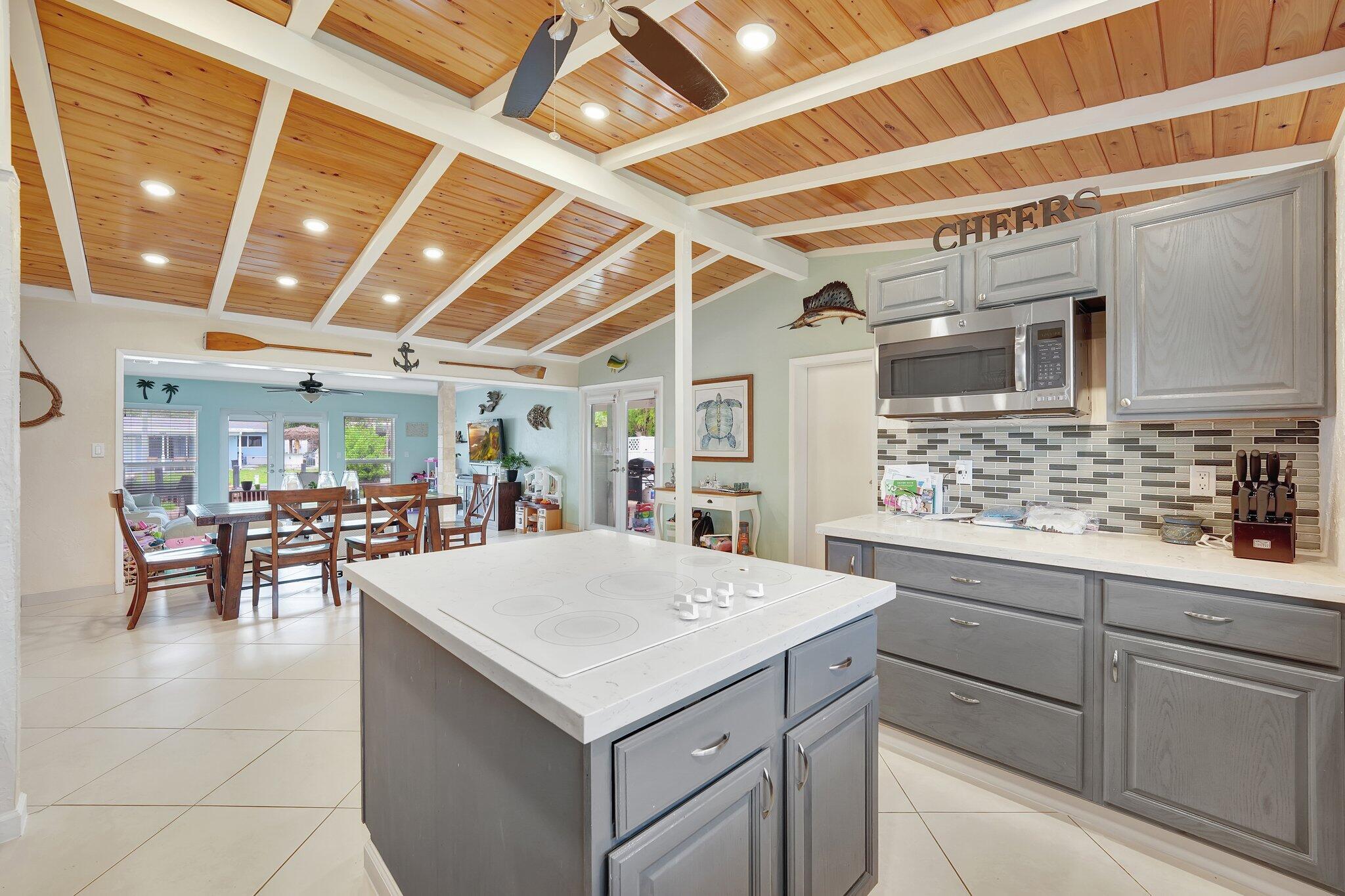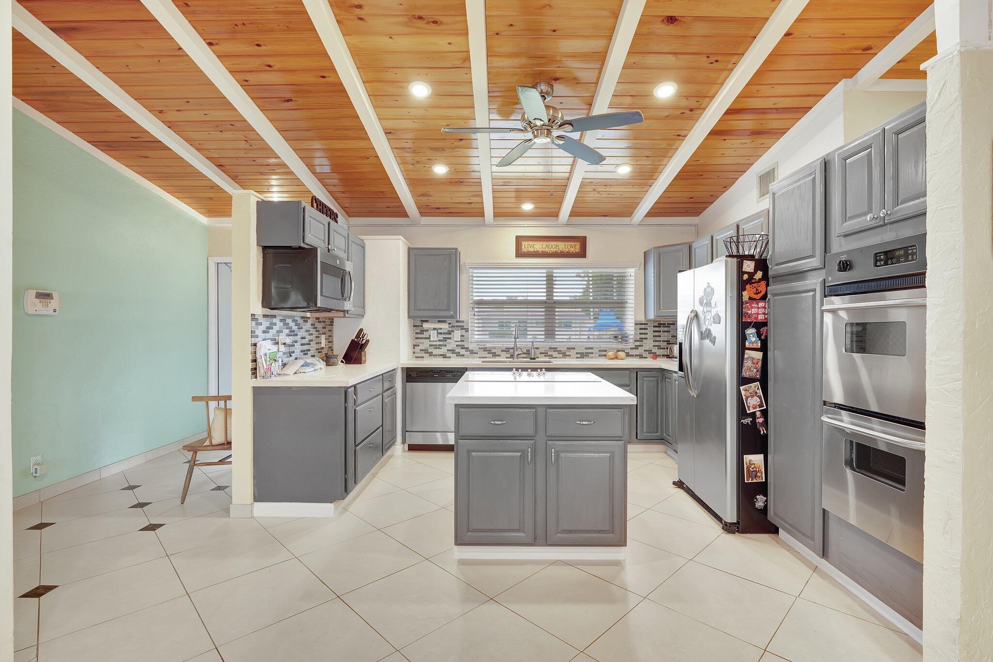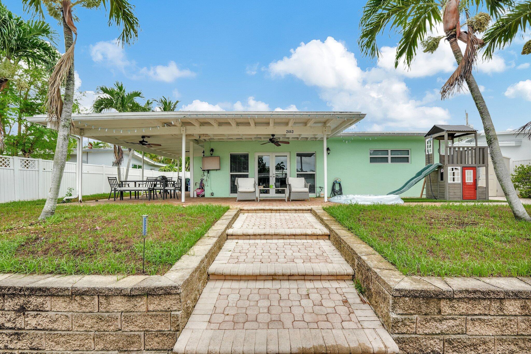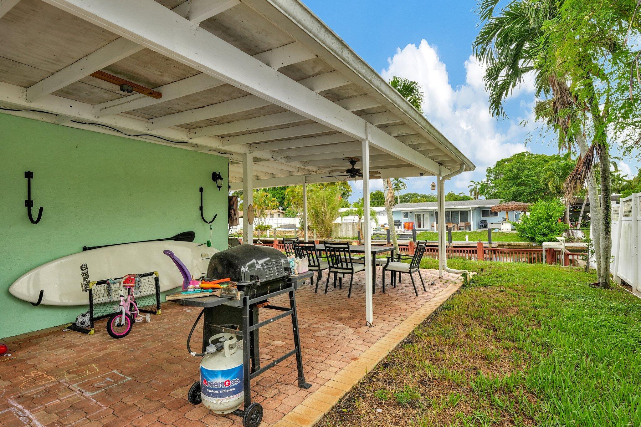 CALLING ALL BOATERS! Ready to move in! This stunning home offers ocean access with no fixed bridges. Hurricane windows and doors, a private dock, quartz countertops, ss appliances. The kitchen features an island with a JennAir countertop stove, pull-out drawers, and gourmet kitchen, 20' diagonal tile flooring throughout. The oversized primary en-suite includes granite counters and Kohler fixtures. Enjoy the covered wraparound patio with brick pavers, an extra-wide driveway, updated electric, and a 65-foot dock with 70ft of waterfront equipped with 50Amp, 30Amp, and 110V outlets. Other features include vinyl fencing, a vinyl shed, patio speakers, and a private boat ramp for the neighborhood. Perfect for boating, kayaking or paddle boarding right from your backyard. CLOSE to Downtown FTL.