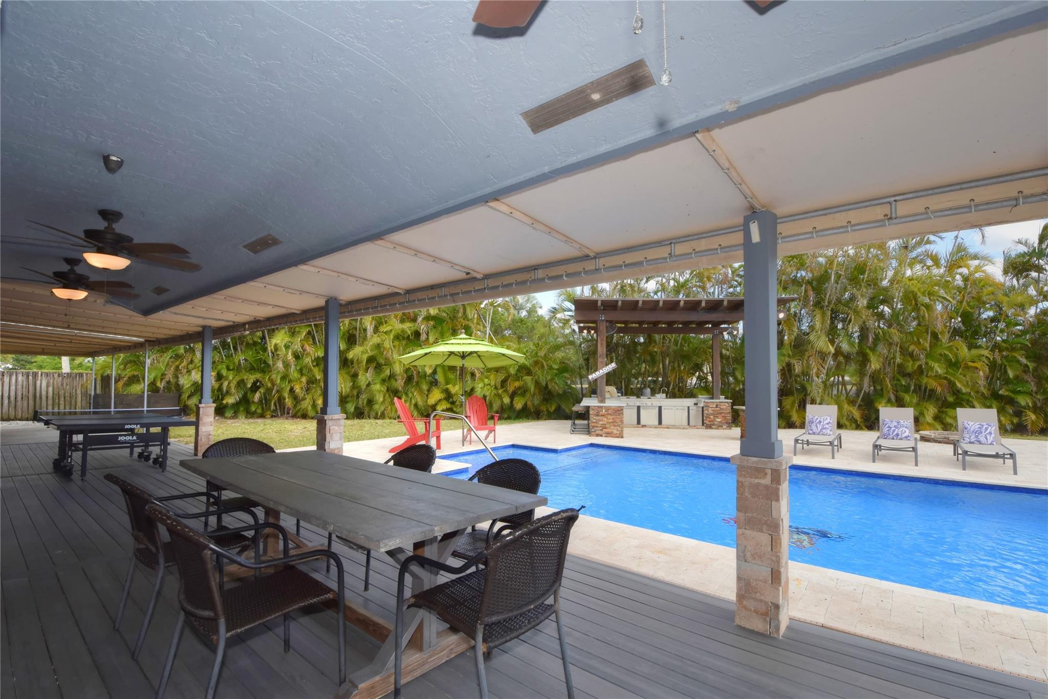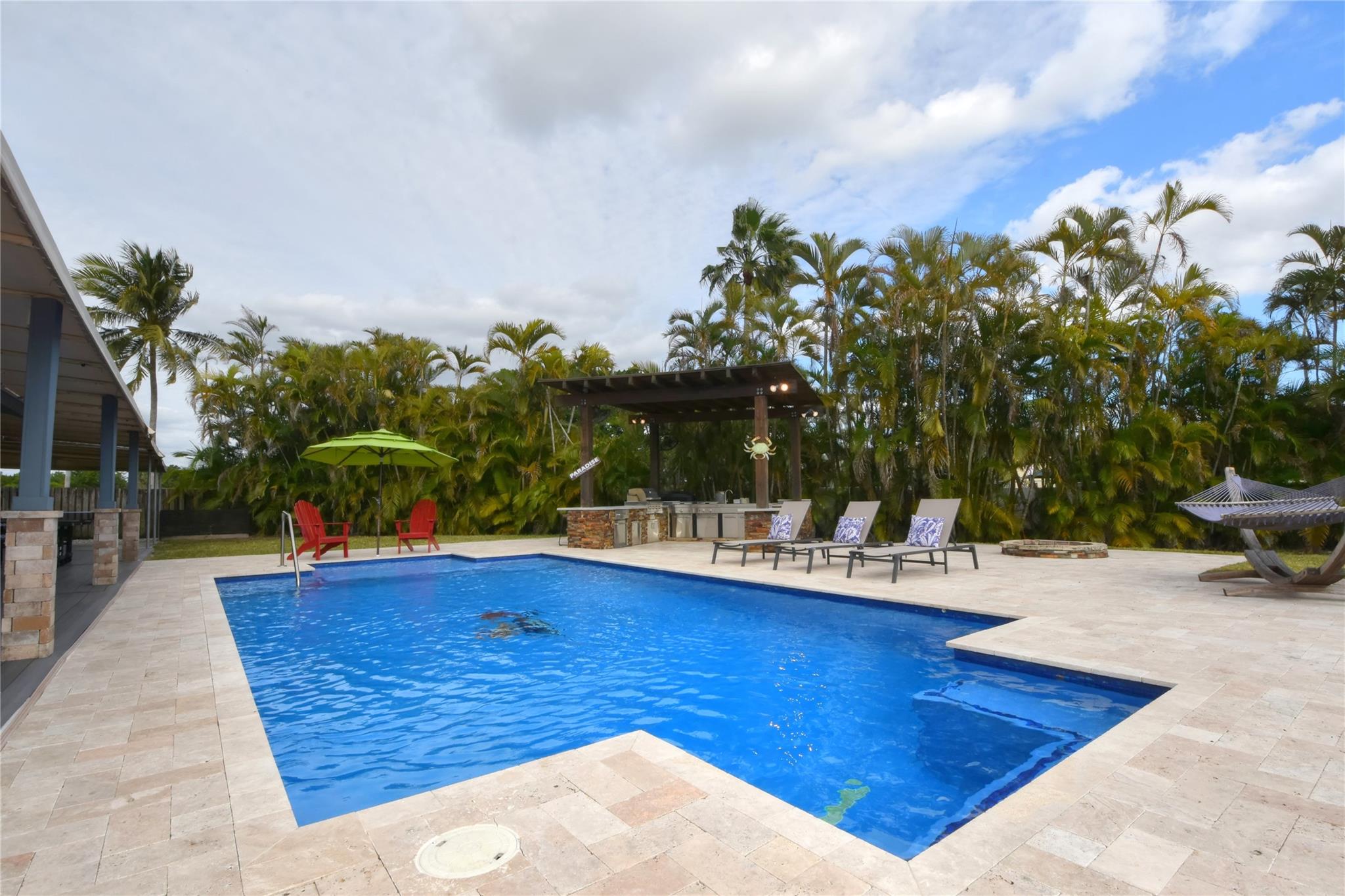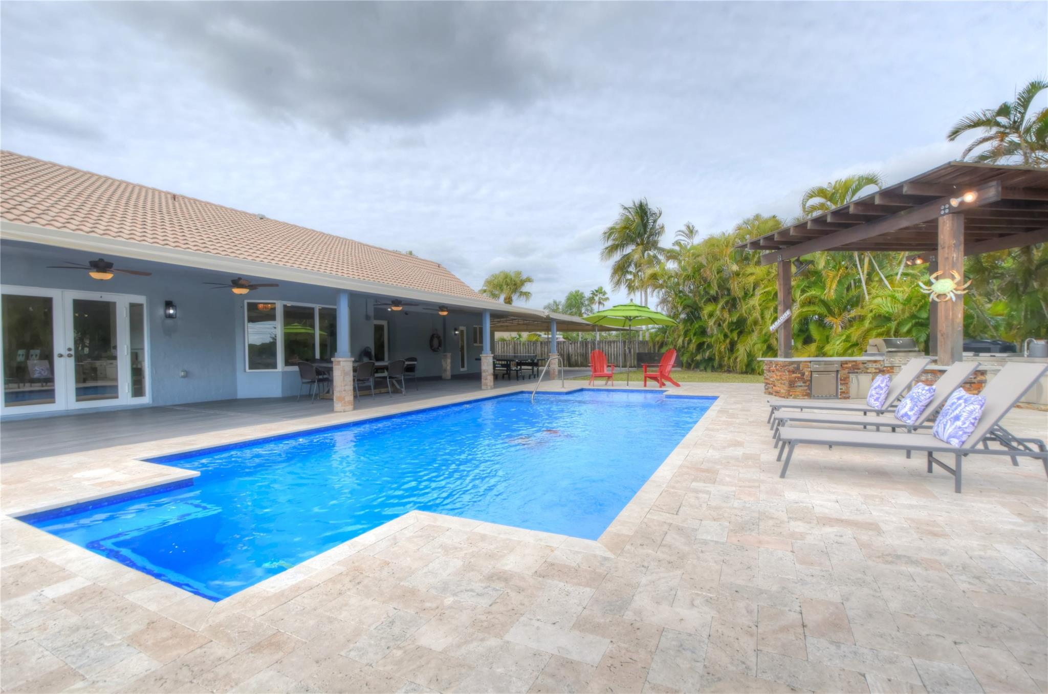 THE WAVERLY HUNDRED, A CUSTOM TROPICAL MASTERPIECE WITH ALMOST A HALF ACRE OF LAND. ONE OF THE LARGEST WATER FRONT LOTS IN THE DEVELOPMENT, A DRAMATIC LAKEFRONT ESTATE, 3-BEDROOMS WITH 2-FULL BATHS, OVER-SIZED PATIO AND HUGE OPEN POOL, A ONE-STORY HOME WITH A TWO-CAR SIDE LOAD GARAGE & SIDE CARPORT/STORAGE AREA, PERFECT FOR A BOAT OR TRUCK, OVERSIZED DRIVEWAY AT THE END OF THE CUL-DE-SAC. A GOURMET DESIGNED KITCHEN WITH QUARTZ COUNTERTOPS, STAINLESS STEEL APPLIANCES, A THREE-WAY SPLIT FLOOR PLAN, EXTRAS INCLUDE, BUILT-IN SUMMER KITCHEN, BUILT-IN FIRE PIT, ENGINEERED WOOD FLOORING, CROWN MOLDING, VOLUME CEILINGS, POOL HEATER, IMPACT WINDOWS & DOORS, REMODELED BATHS, LUSH FLORIDA LANDSCAPING, OVERSIZED FRONT AND BACK YARDS, THE VERY BEST DAVIE, FLORIDA HAS TO OFFER WITH A VERY LOW HOA FEE.