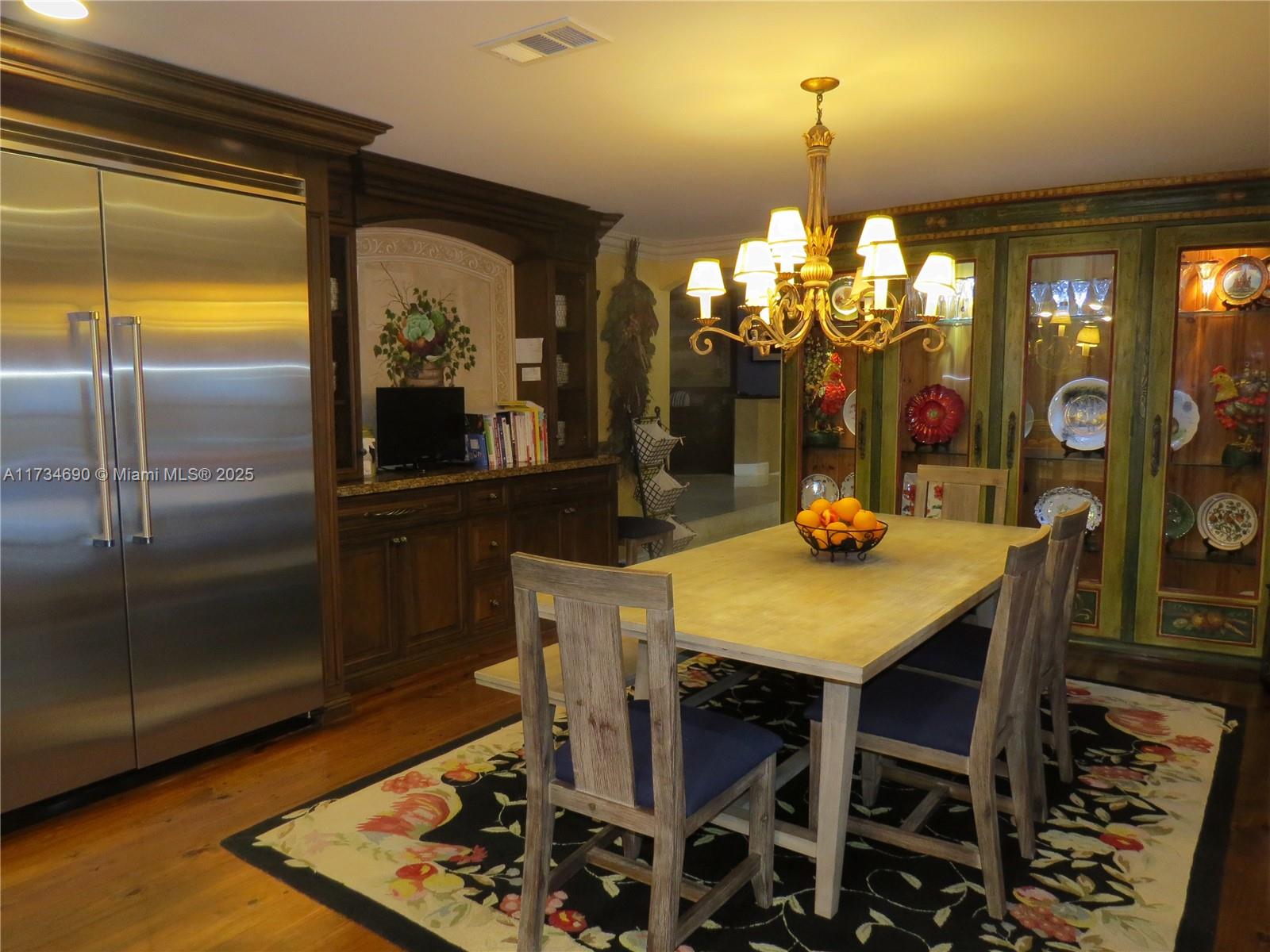 Breathtaking Mediterranean Style Mansion in Whispering Woods, 1 acre Cul De Sac Homesite. 7479 sqf living area. Magnificent gardens, stile resort pool with heater, gazebo and catio. Professionally decorated 2 stories, 7 bedrooms with walking closets and designed cabinets, 7 complete bath and 1 half bath, living room, dinning room, 2 family room, fire place, 2 offices spaces, laundry area, and extra space room used as playroom but can be used as Gym or cinema room, exceptional kitchen with huge eat in area, granite counters, SS Viking appliances ,Stove, double ovens, large center cooking island. Also Wiener room, Huge Garage with cabinets and space for 3 vehicles plus parking area. Marbel, wood fand laminated floors. The roof is just 10 years old, impact windows, new A/C, water heather.
